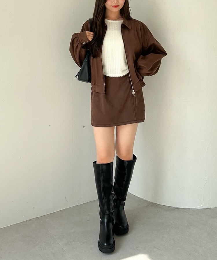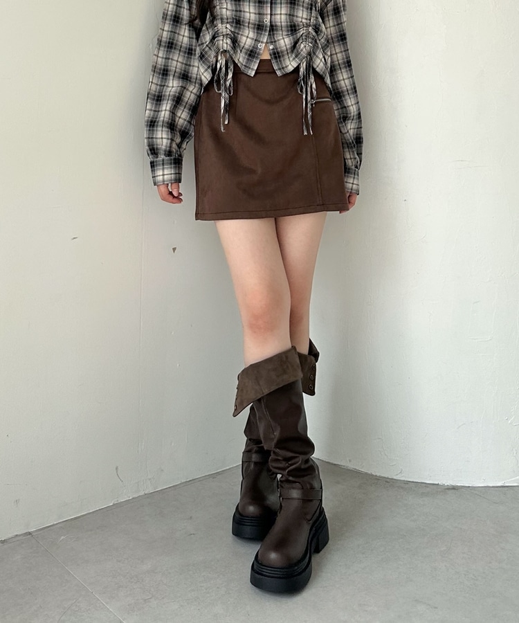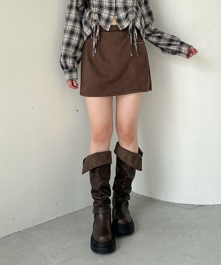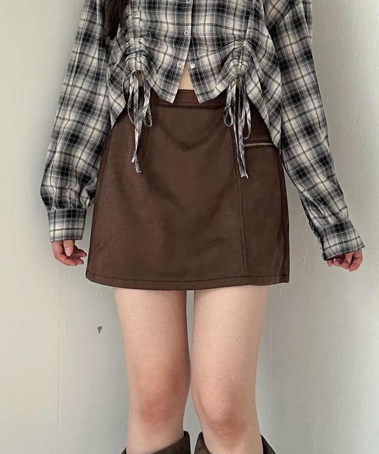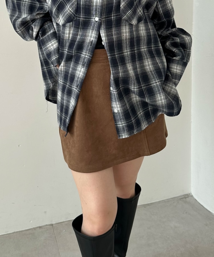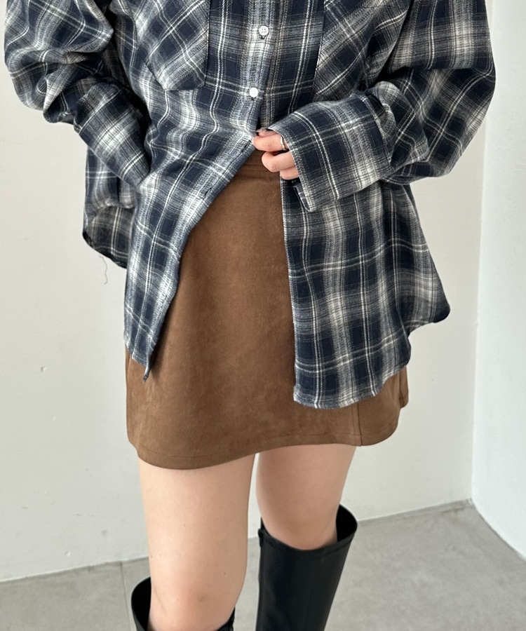 【SET UP対応】スウェード台形ミニスカート BROWN