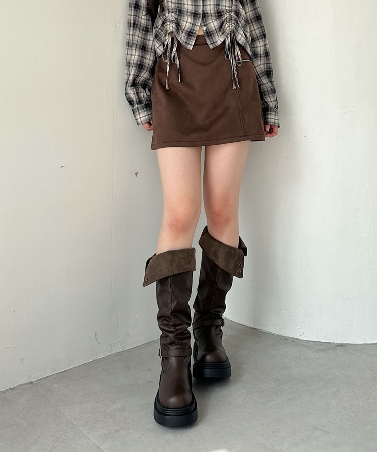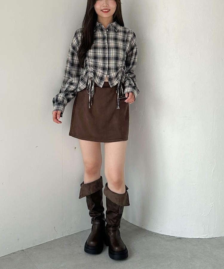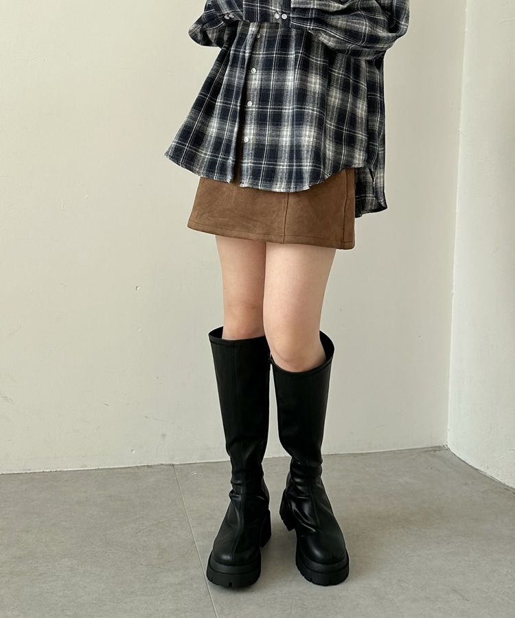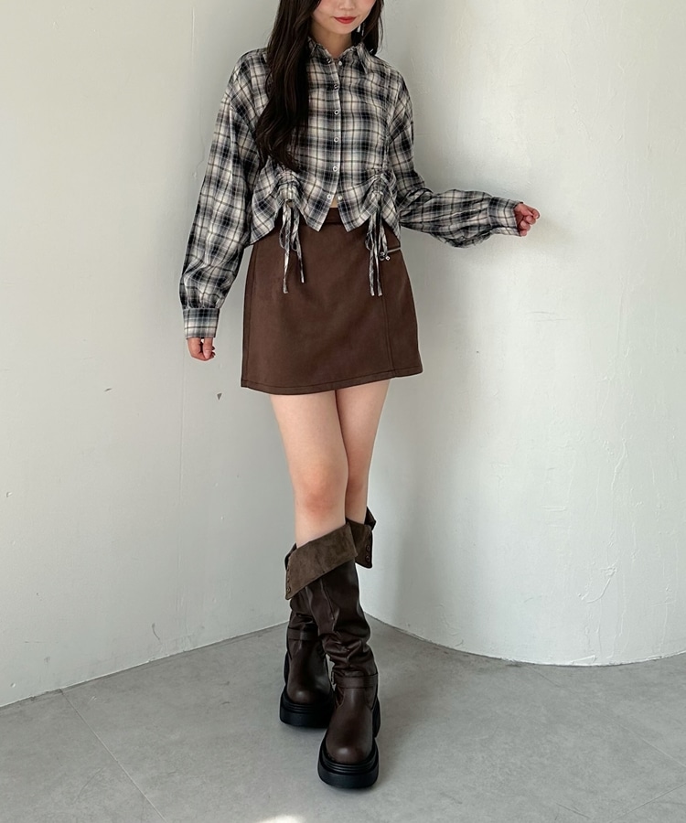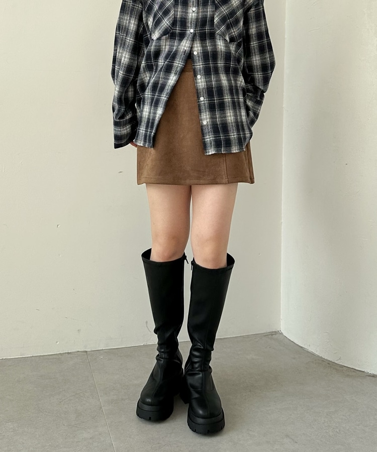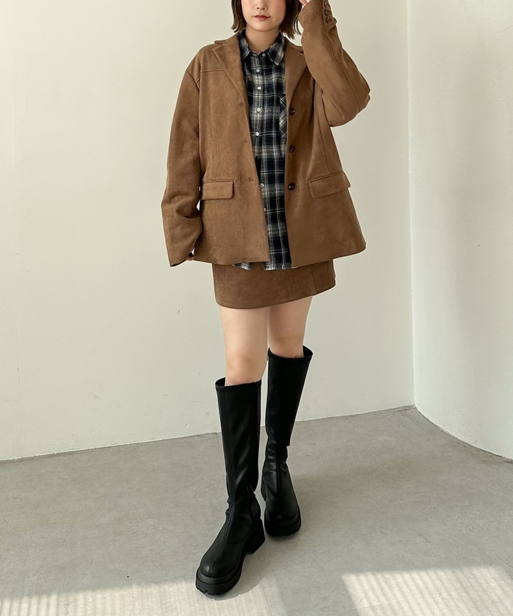 【SET UP対応】スウェード台形ミニスカート BROWN