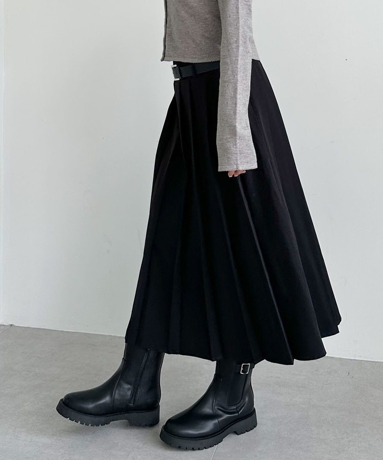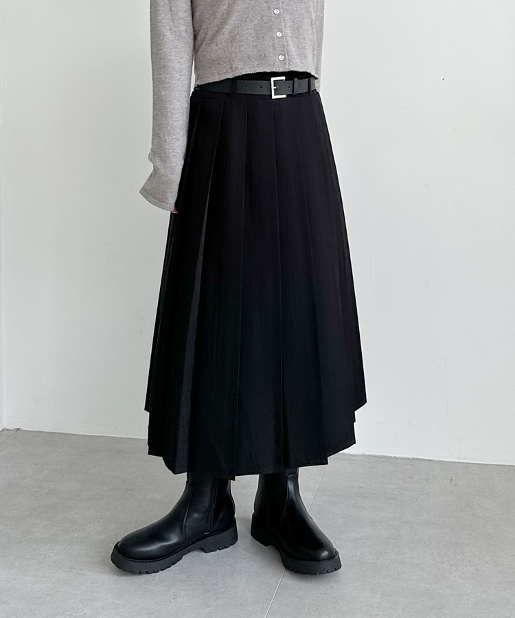 ベルトプリーツスカート BLACK