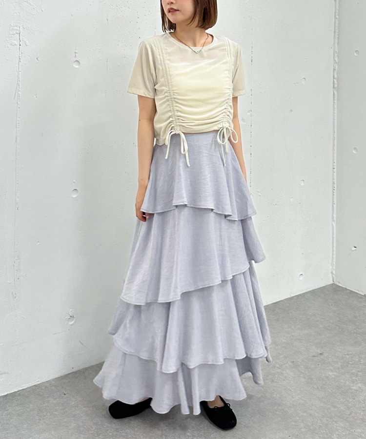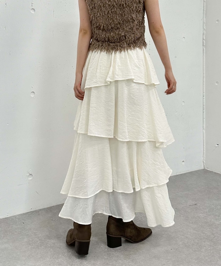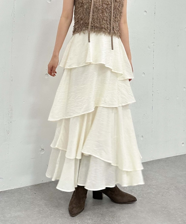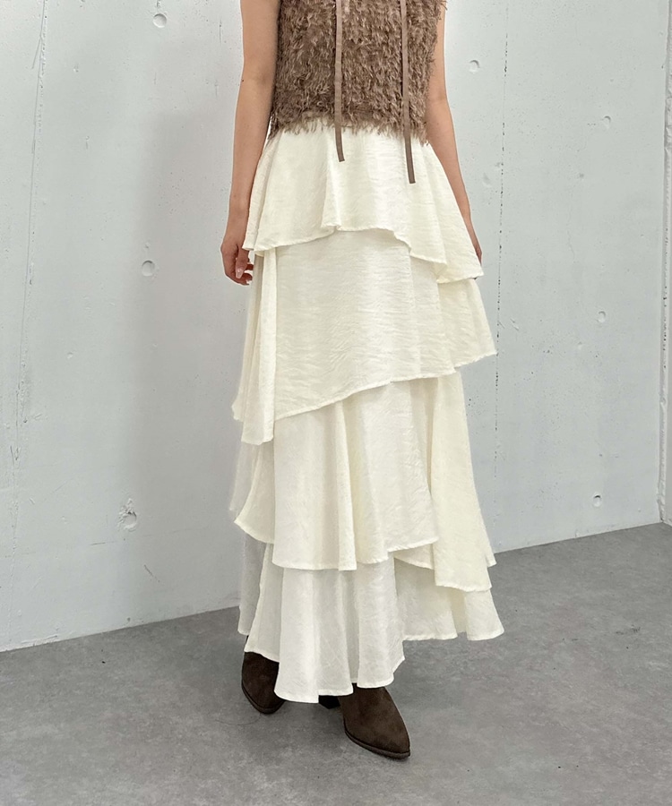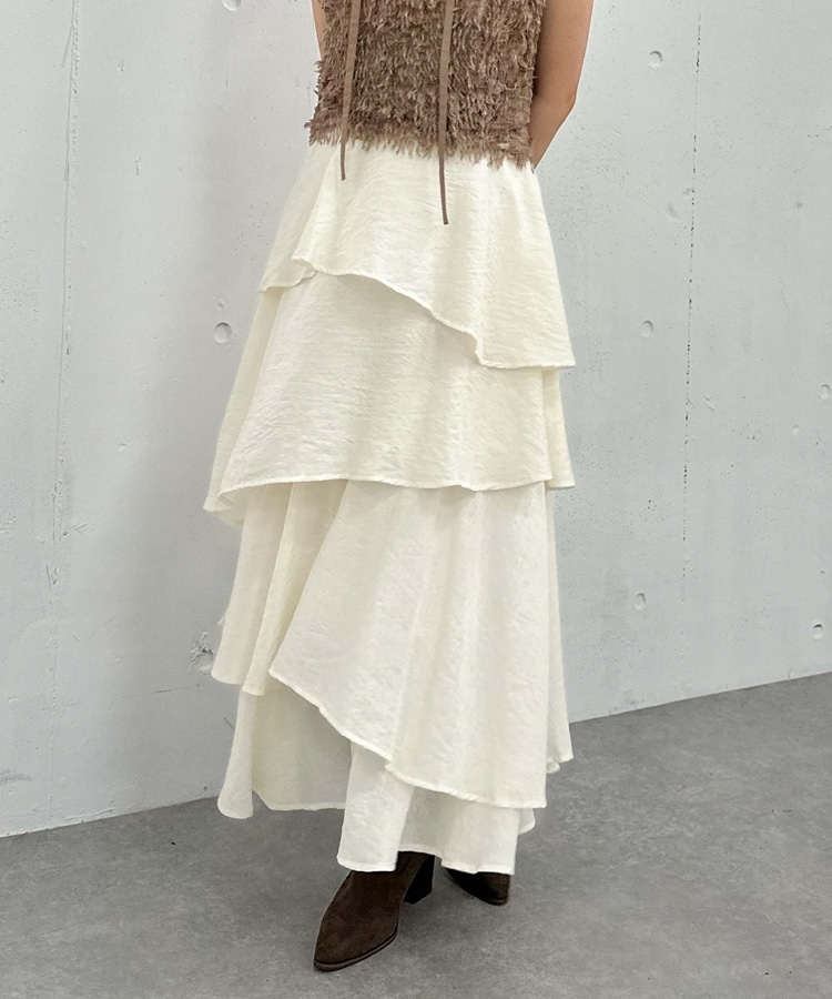 アシメ楊柳シャイニーティアードスカート IVORY