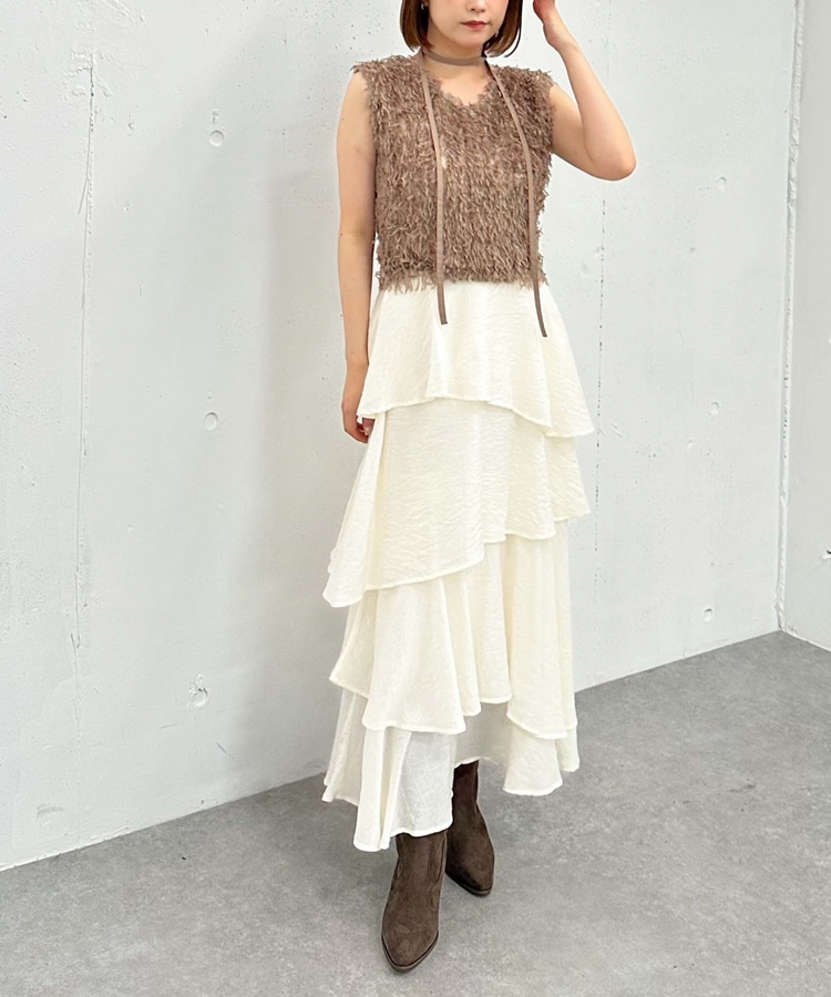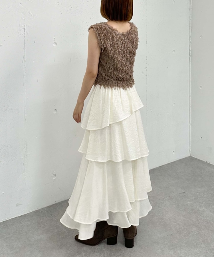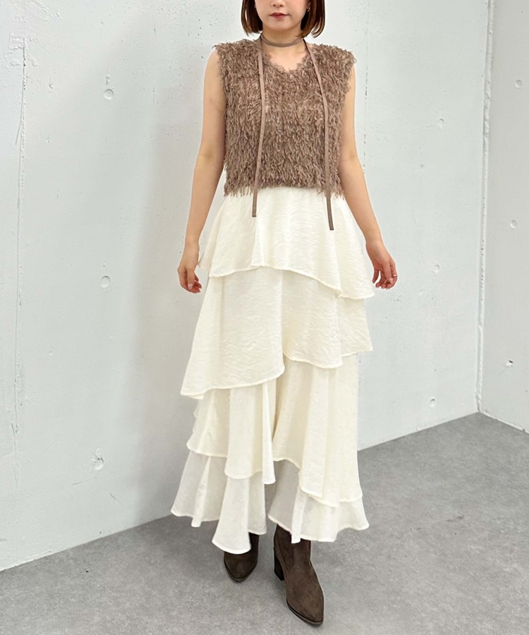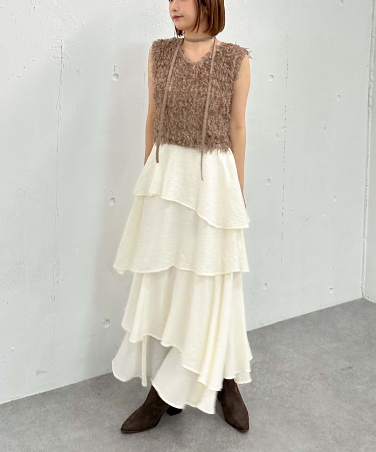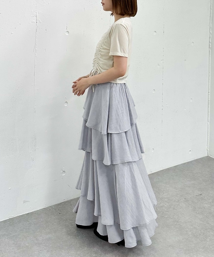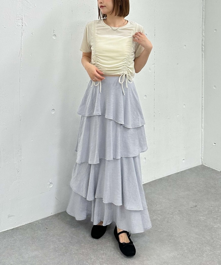アシメ楊柳シャイニーティアードスカート IVORY