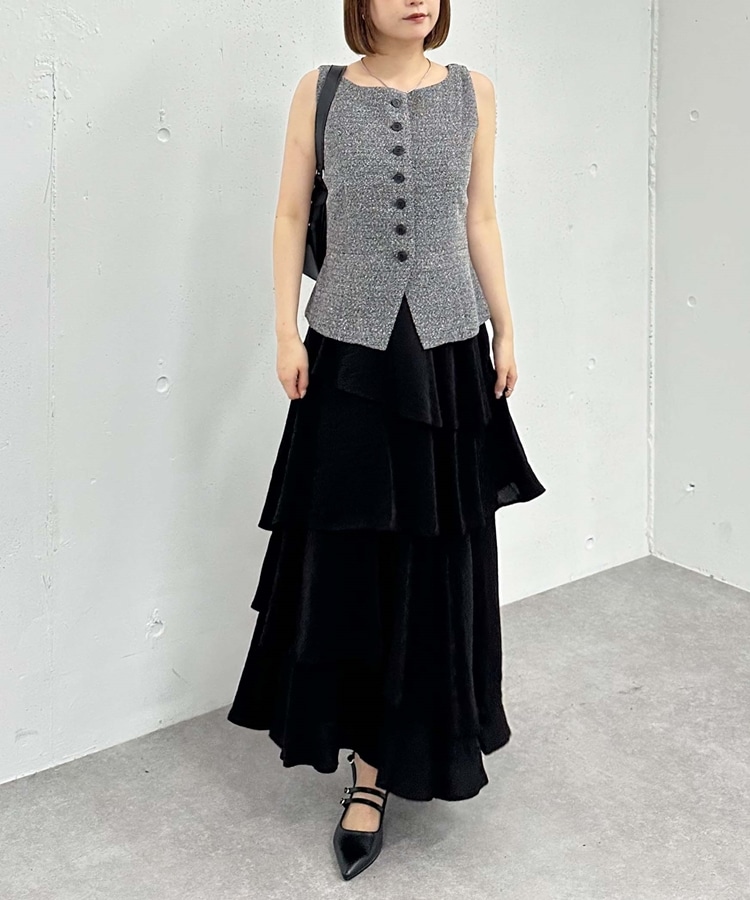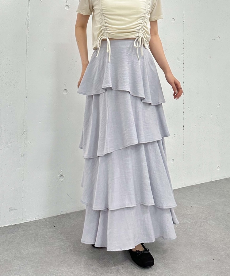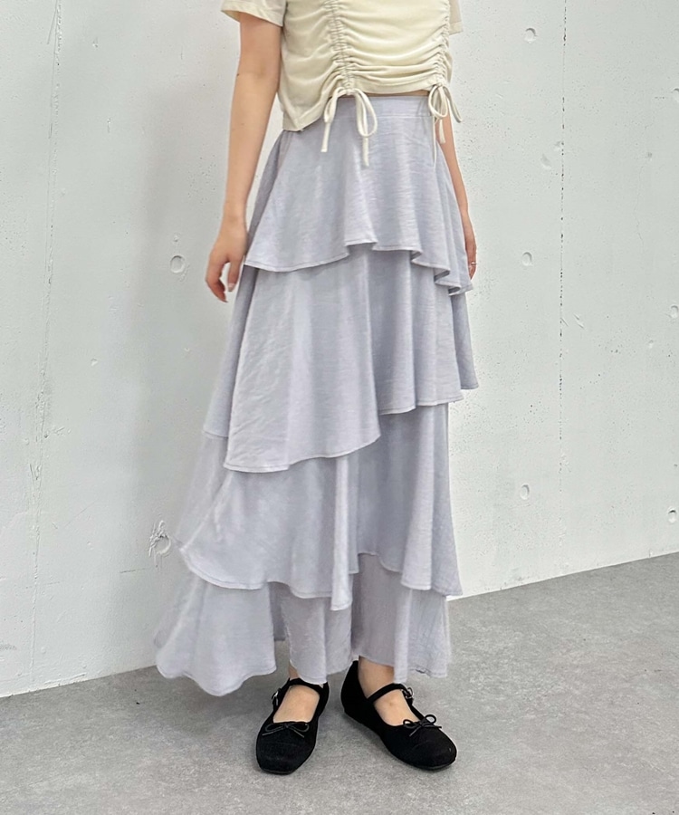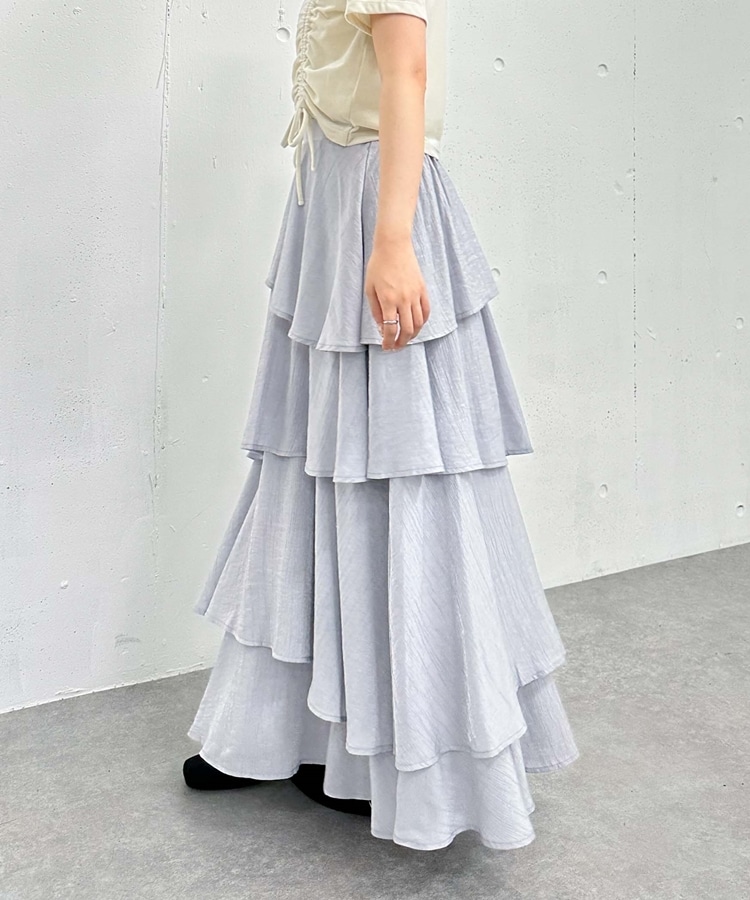 アシメ楊柳シャイニーティアードスカート