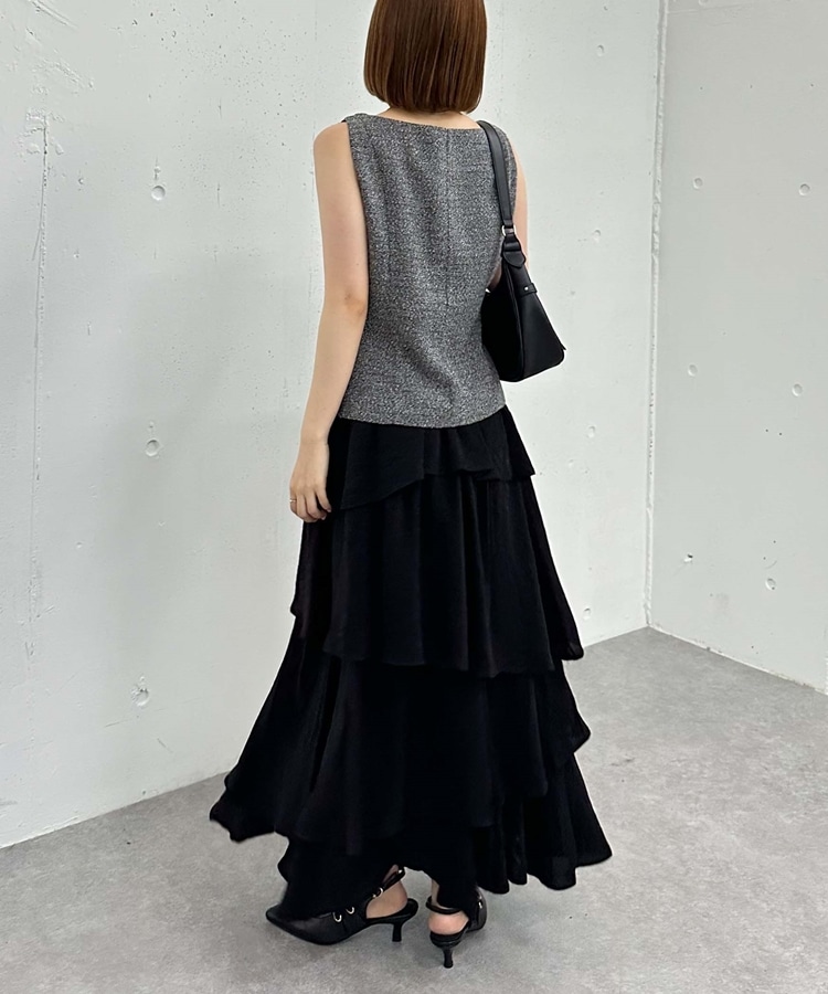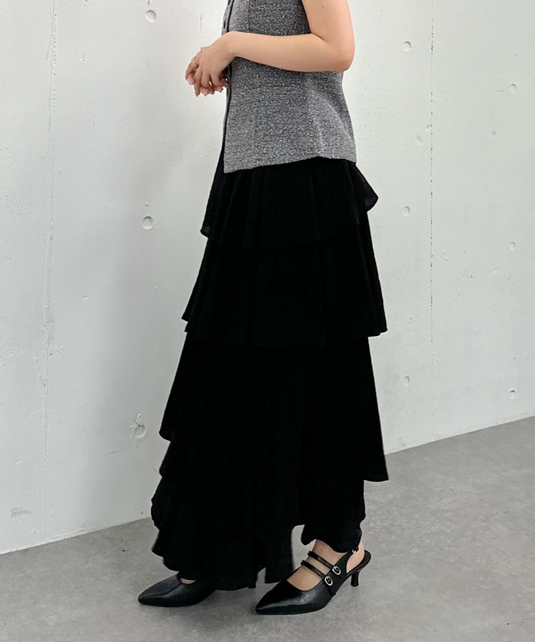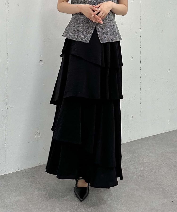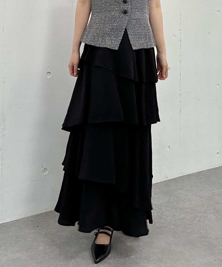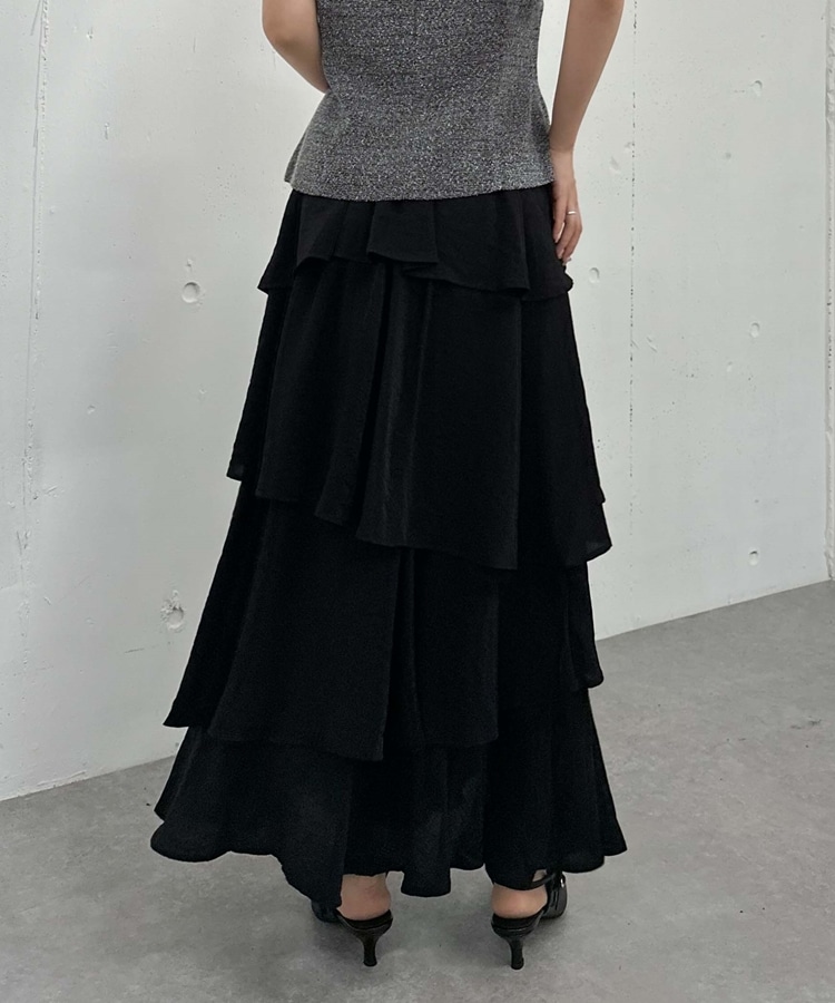 アシメ楊柳シャイニーティアードスカート BLACK