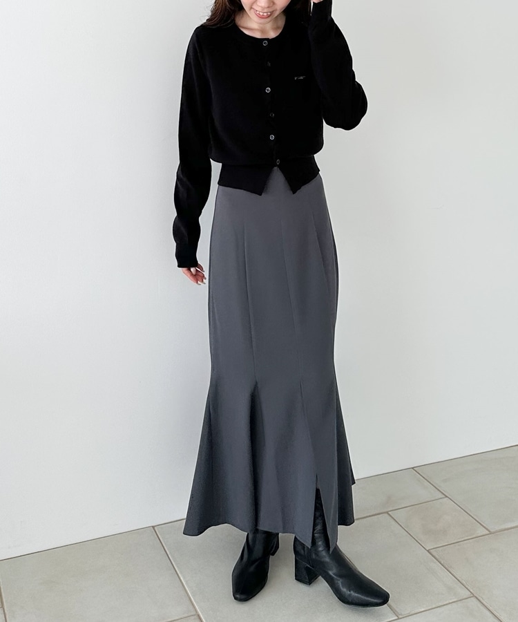 ■スタイルアップを叶える大人気マーメイドスカート■毎年ご好評をいただいているマーメイドスカートが今年も登場!シンプルなデザインで、カジュアルにもフェミニンにも幅広く着回せる万能アイテムです。腰まわりはすっきりとしたシルエットながら、ほどよいゆとりを持たせているのでラインを拾いすぎず安心感のある着心地。裾にはマチを入れることで動きのあるフレア感を演出し、歩くたびに揺れる美しいシルエットを楽しめます。フロントにはスリットが入っているため足さばきも良く、デイリーからオフィスまで活躍。さらりとした素材感でシーズンを問わず着用いただけるのも嬉しいポイントです。ーーーーーーーーーーーーーーー透け感:なし裏地:あり伸縮性:背面ゴム光沢感:なし生地厚さ:普通洗濯方法:洗濯可能※詳しいお手入れ方法は商品についているタグをご覧くださいーーーーーーーーーーーーーーー※ご利用のモニター環境により、実際の色味と多少異なる場合がございます。