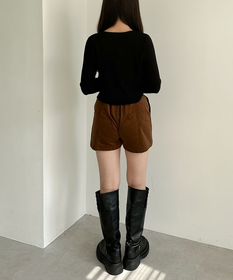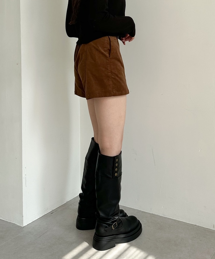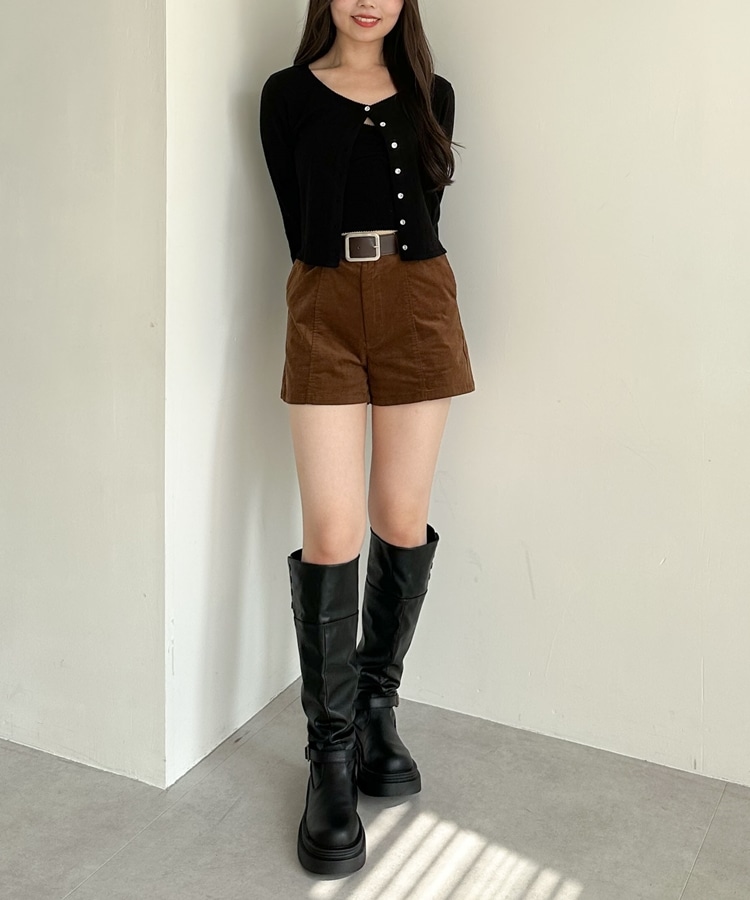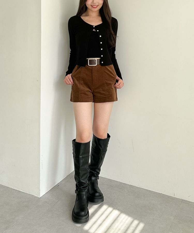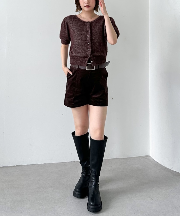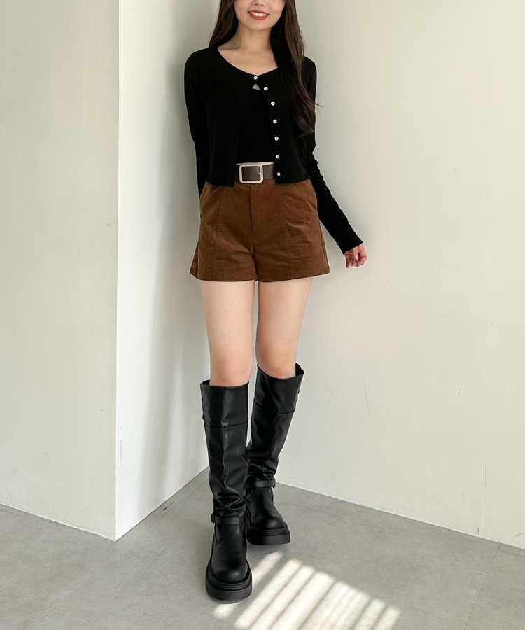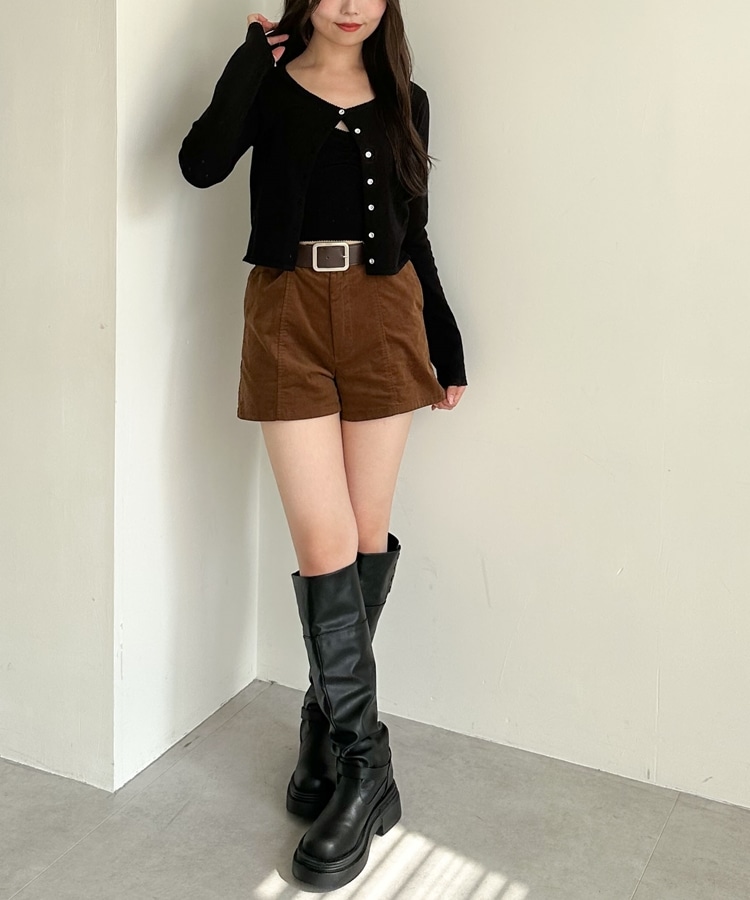 ■柔らかコーデュロイで旬顔ショートパンツ■秋冬の着こなしにぴったりなコーデュロイのショートパンツ。一気にシーズンムードを高めてくれるアイテムです。脚まわりは程よくゆとりのあるデザイン。ポケット付きで利便性があるのも嬉しいポイント。ウエスト位置が少し低めなので、短めトップスともバランスが取りやすく脚長効果も◎ニットやロングブーツと合わせた、秋らしいコーディネートがおすすめ!ーーーーーーーーーーーーーーー透け感:なし裏地:なし伸縮性:なし光沢感:なし生地厚さ:普通洗濯方法:洗濯可※詳しいお手入れ方法は商品についているタグをご覧くださいーーーーーーーーーーーーーーー※ご利用のモニター環境により、実際の色味と多少異なる場合がございます。