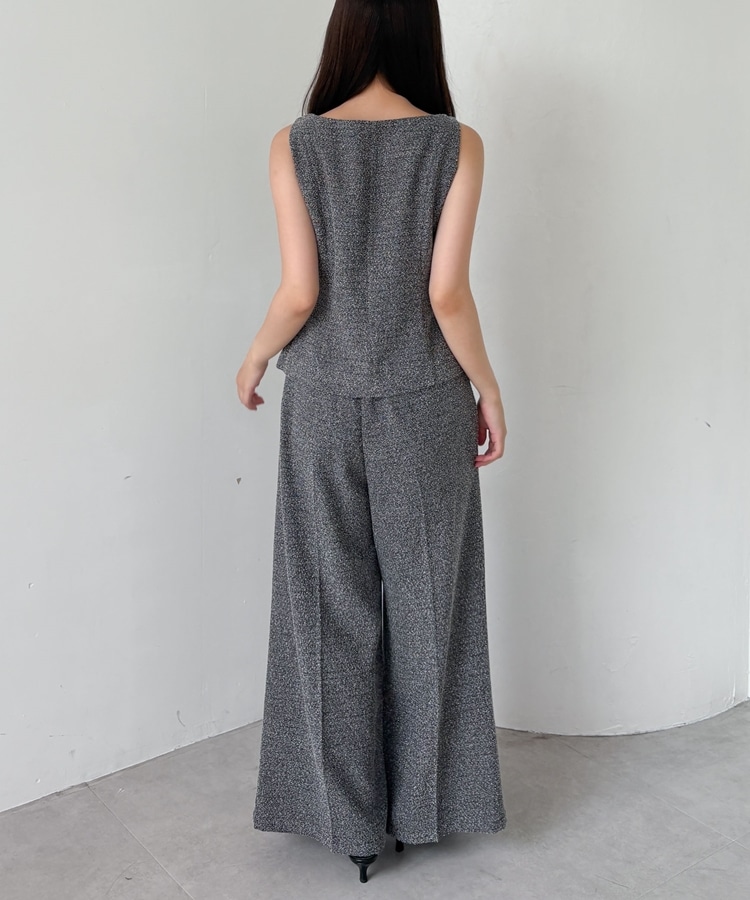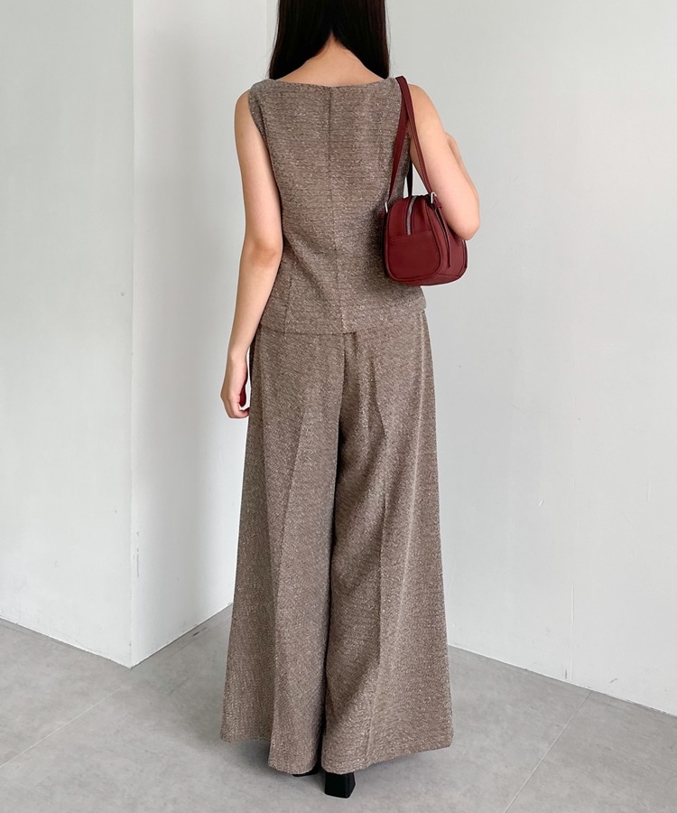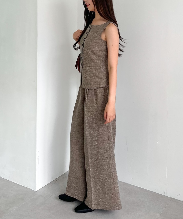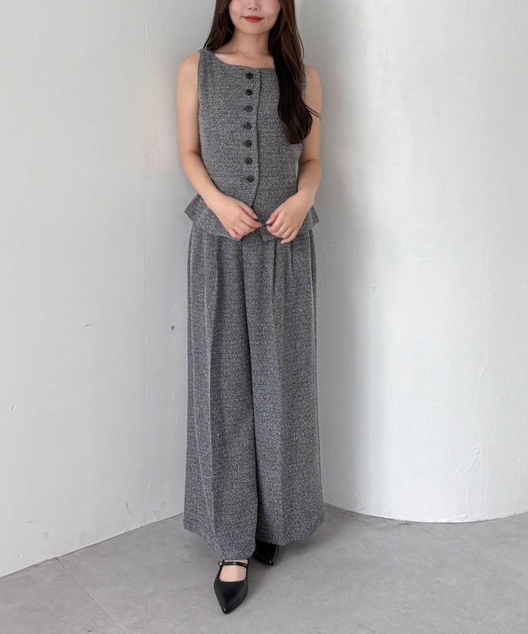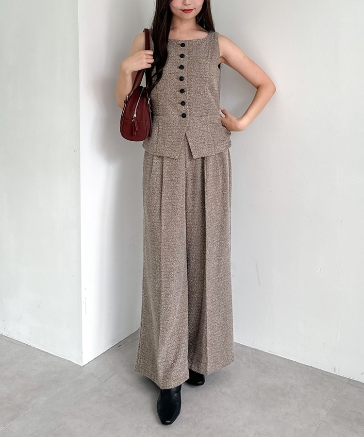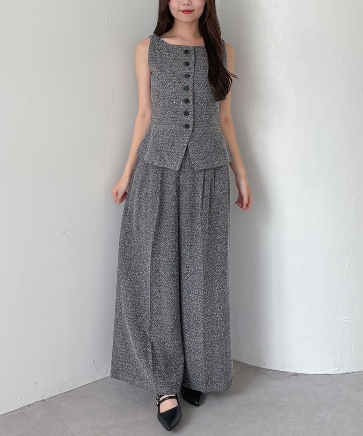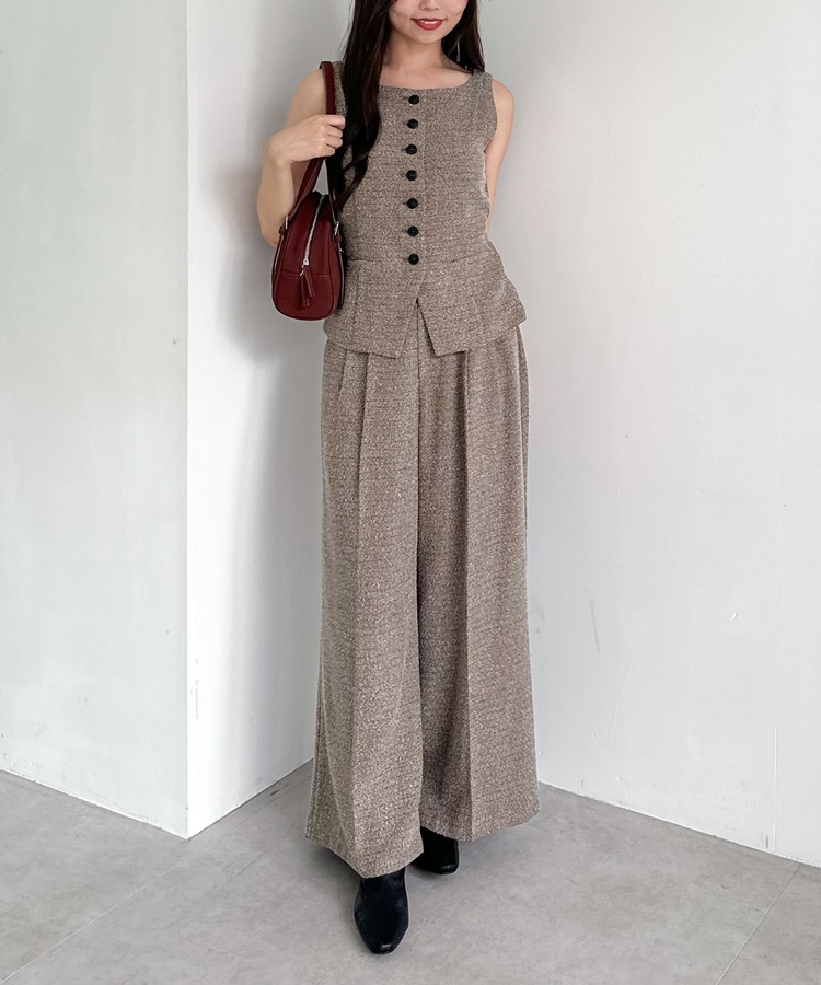 ■秋に穿きたくなるツイード■秋らしいツイードパンツ。穿くだけで一気に秋らしくスタイリングしてくれます。柔らかい生地感のツイード。きっちりと見えがちなツイードもカジュアルに穿きこなせます。シルエットはゆとりのあるワイドシルエット。脚の形を拾わずに穿いて頂けます。同素材のトップスとセットアップとしても可愛く着こなせます。ーーーーーーーーーーーーーーー透け感:なし裏地:あり伸縮性:あり光沢感:なし生地厚さ:普通洗濯方法:洗濯可※詳しいお手入れ方法は商品についているタグをご覧くださいーーーーーーーーーーーーーーー※ご利用のモニター環境により、実際の色味と多少異なる場合がございます。