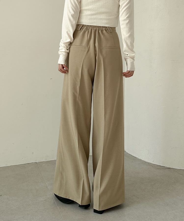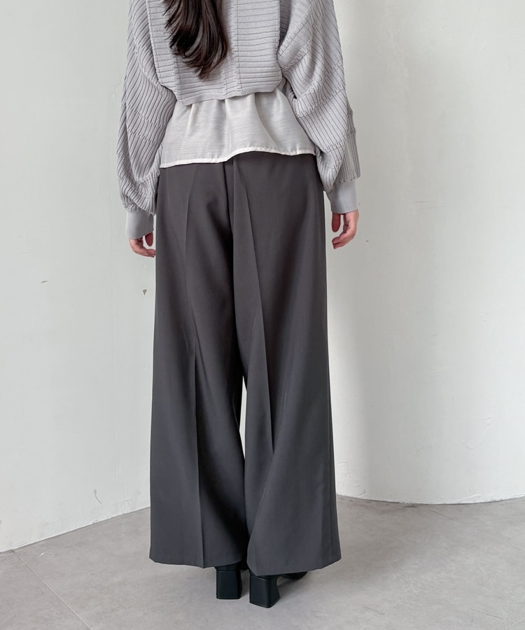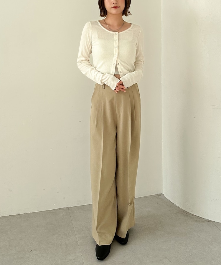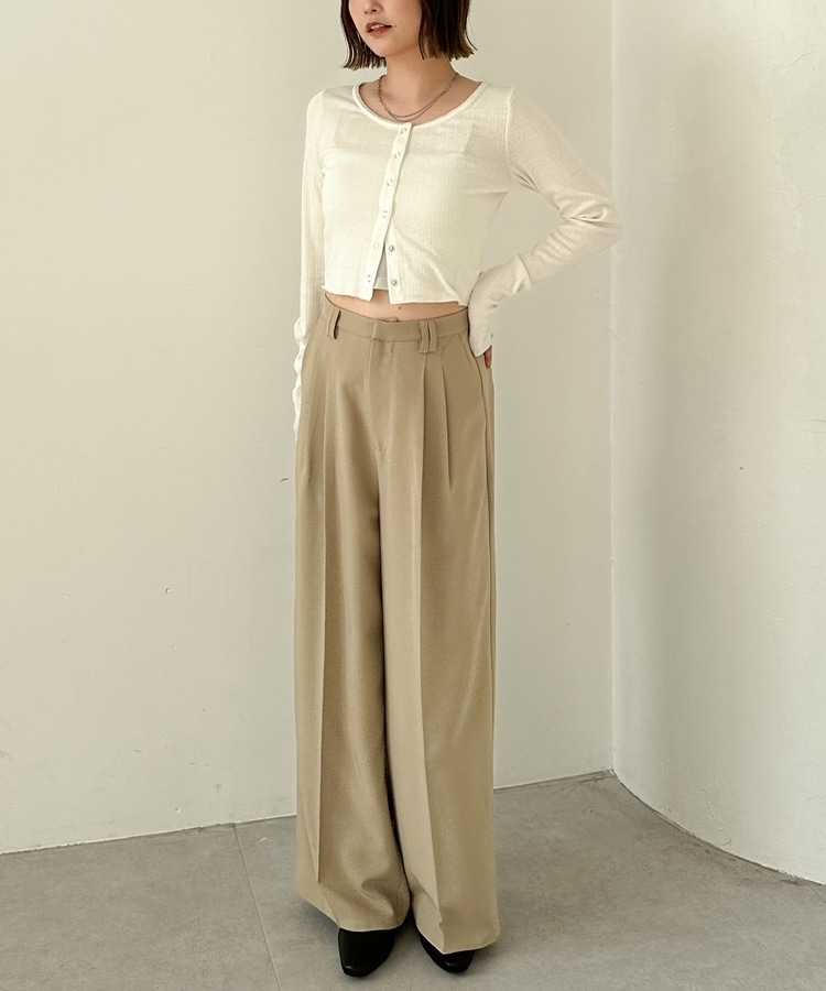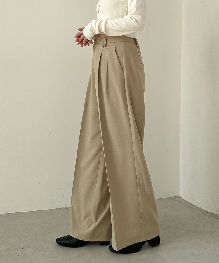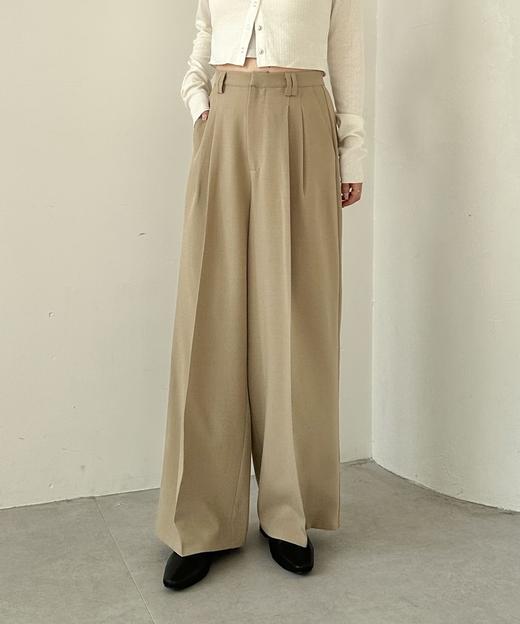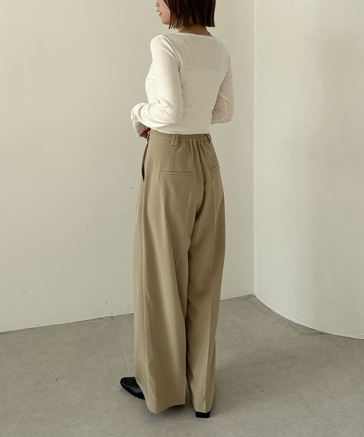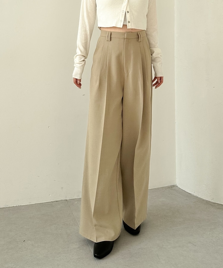 フロントの2タックが縦ラインを強調&ハイウエストで脚長効果抜群。