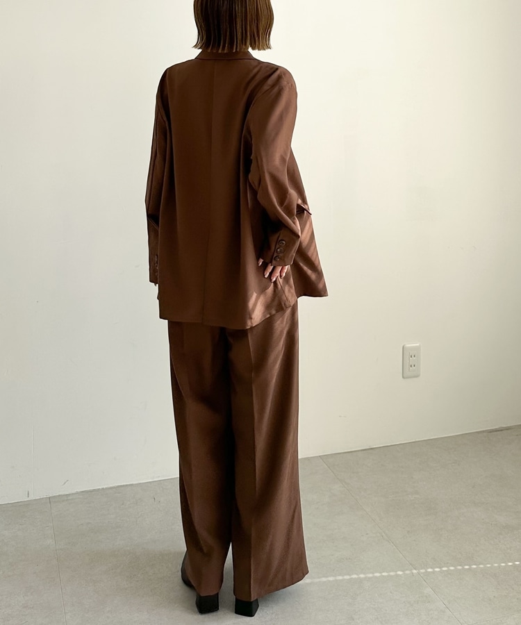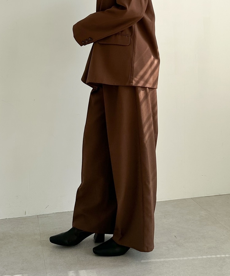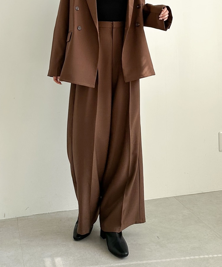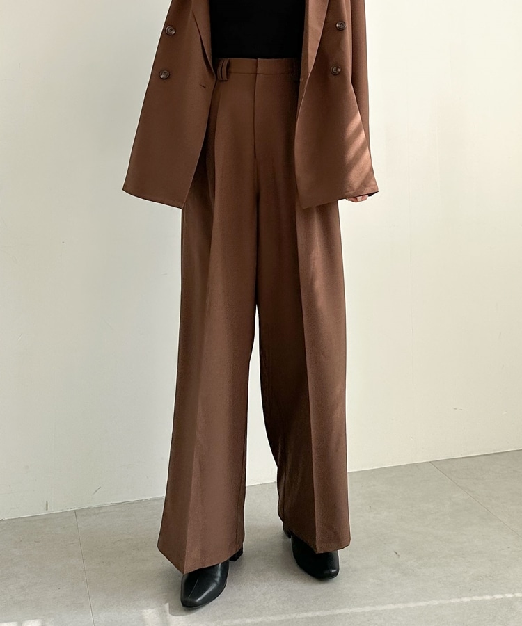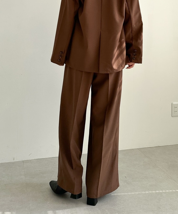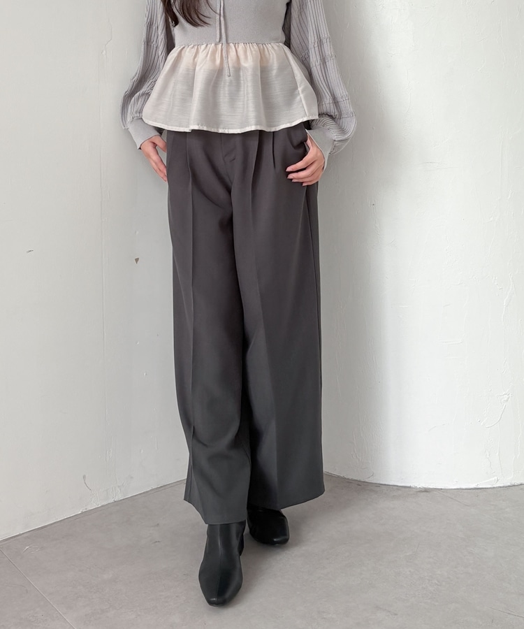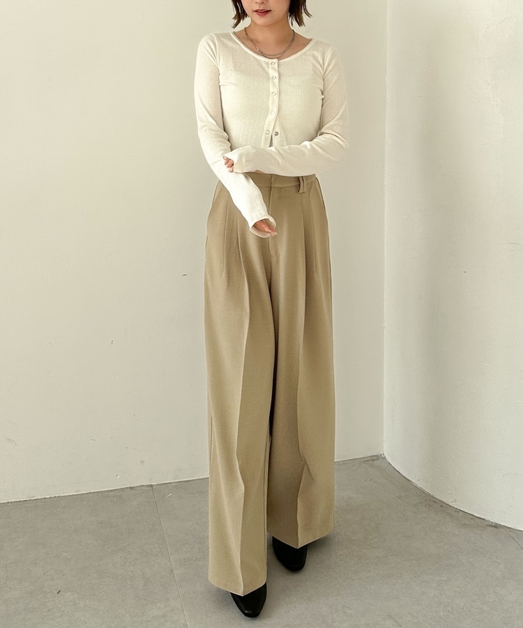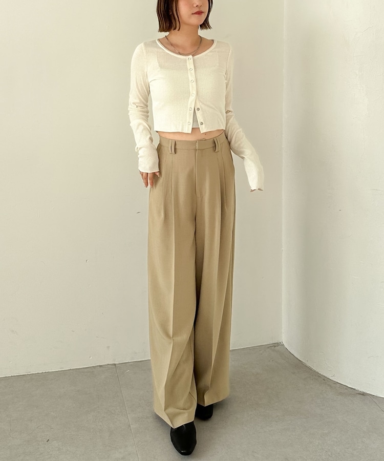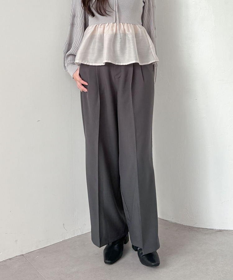 フロントの2タックが縦ラインを強調&ハイウエストで脚長効果抜群。