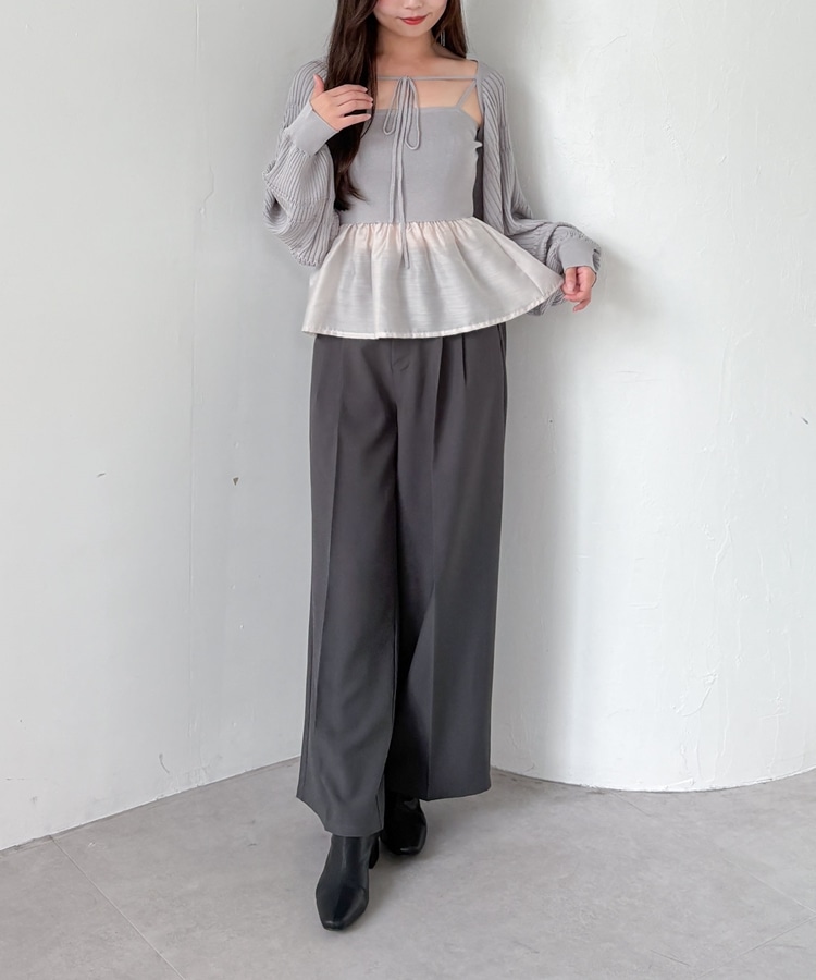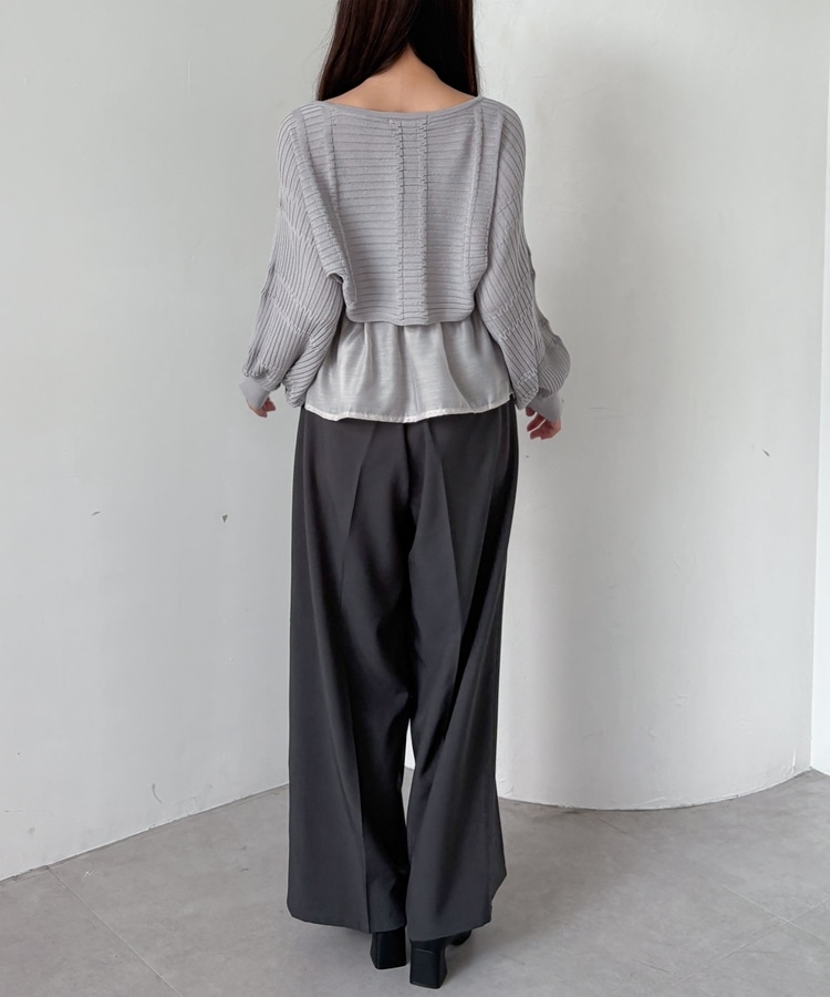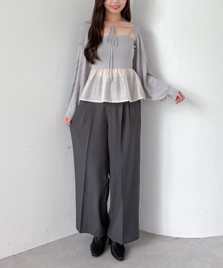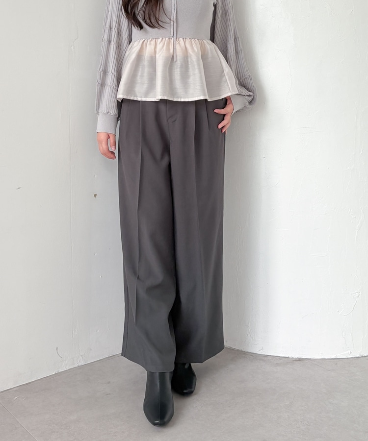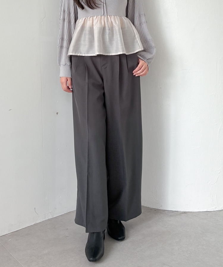 ストンと落ち感があり、センタープレスとワイドシルエットがトレンド感を演出します。
