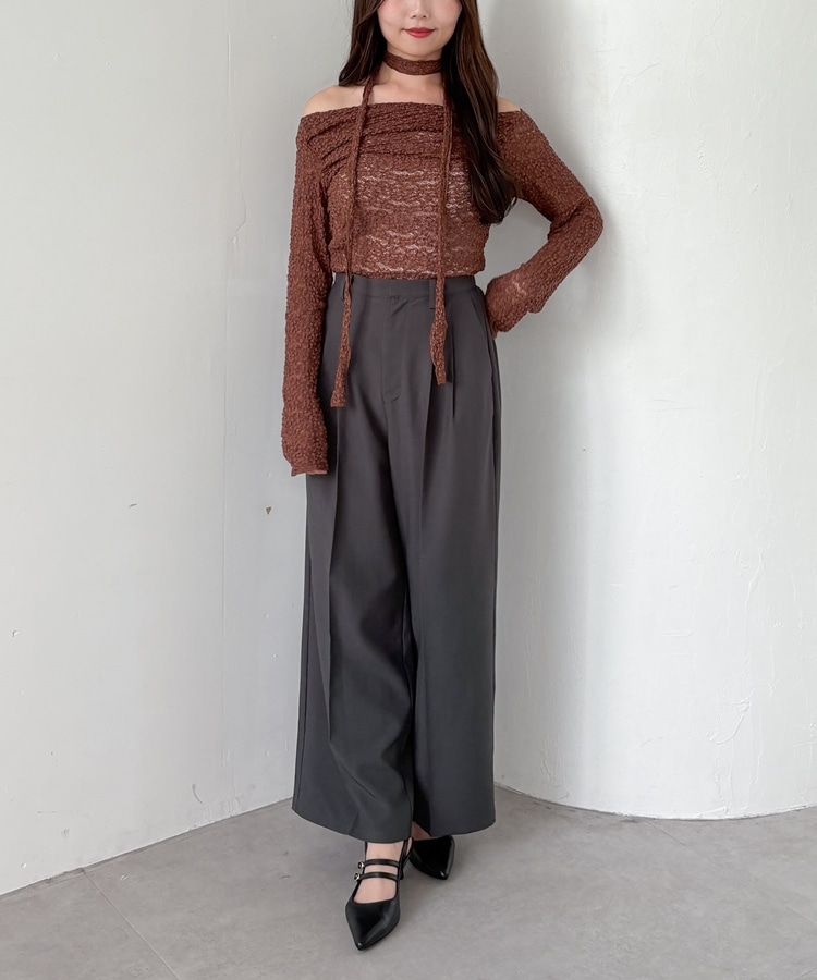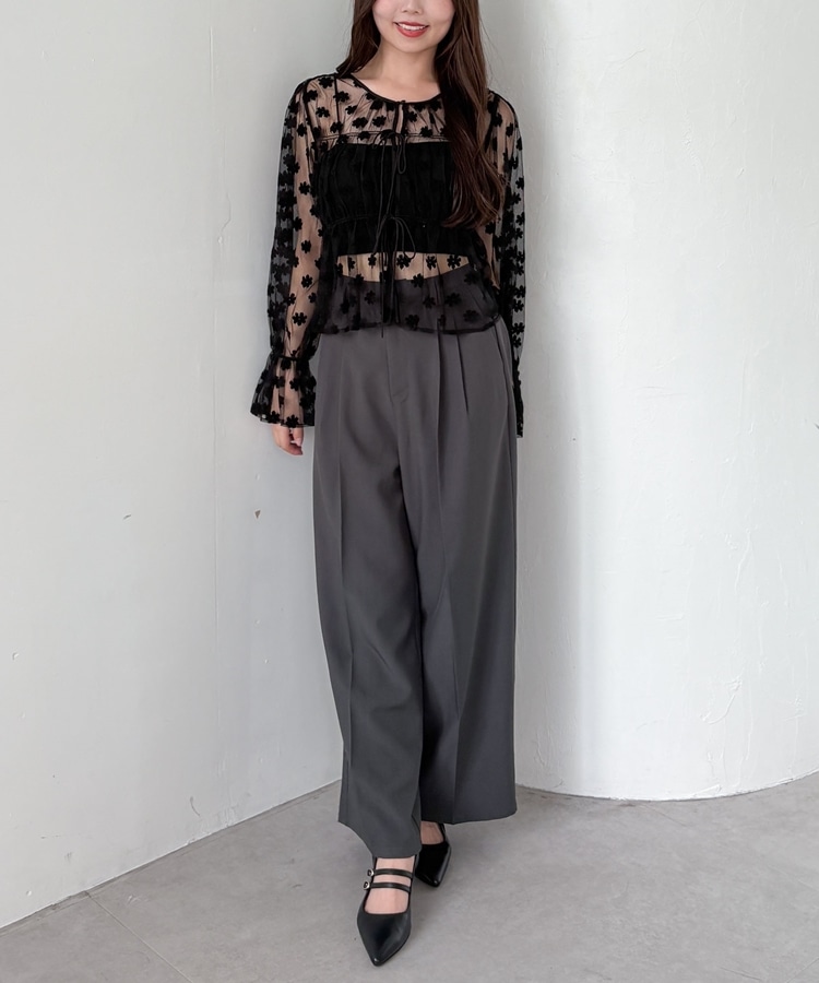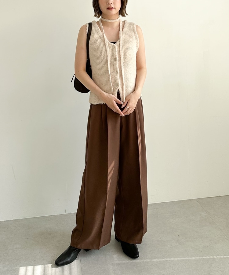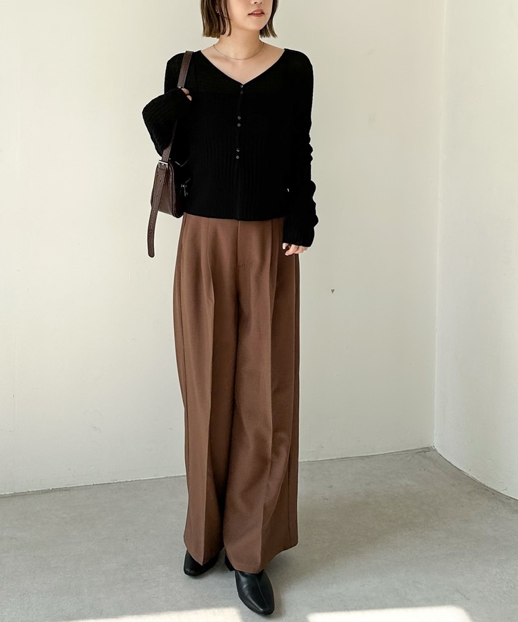 ゆったりとした履き心地ながら美脚見えが叶うワイドスラックス。