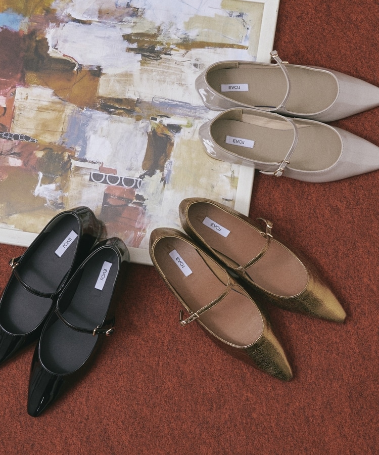 大人レディなメリージェーンデザインは、あえて華奢な細めのベルトと合わせることで上品で女性らしい印象に。