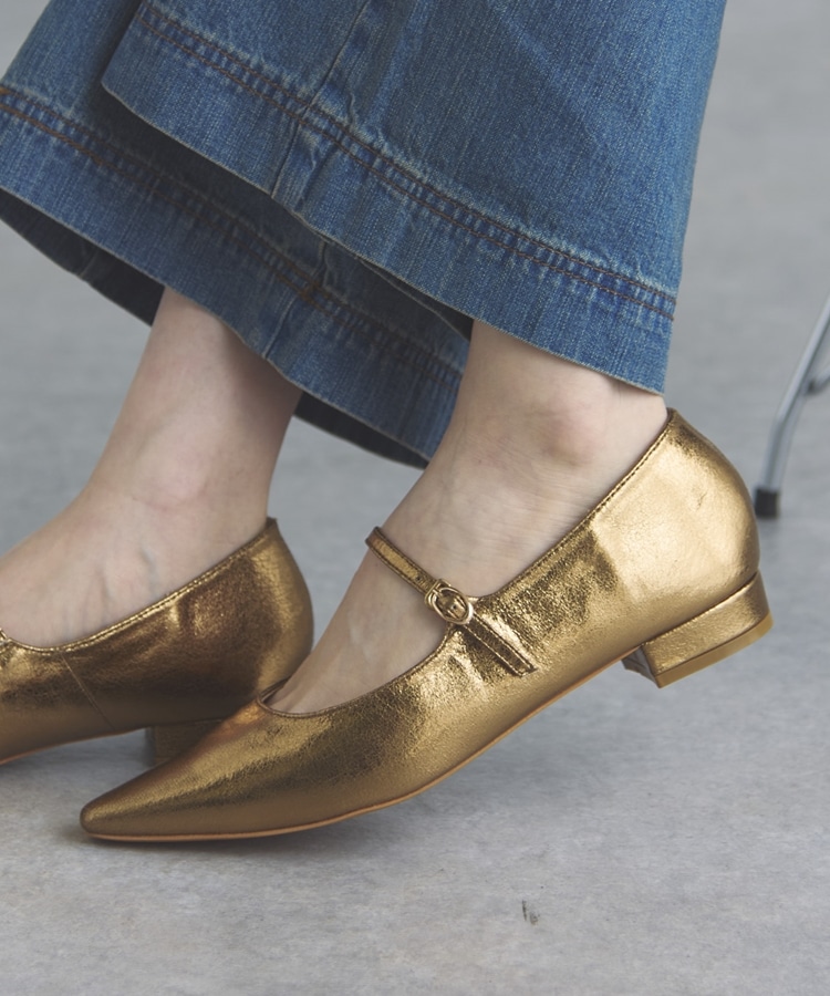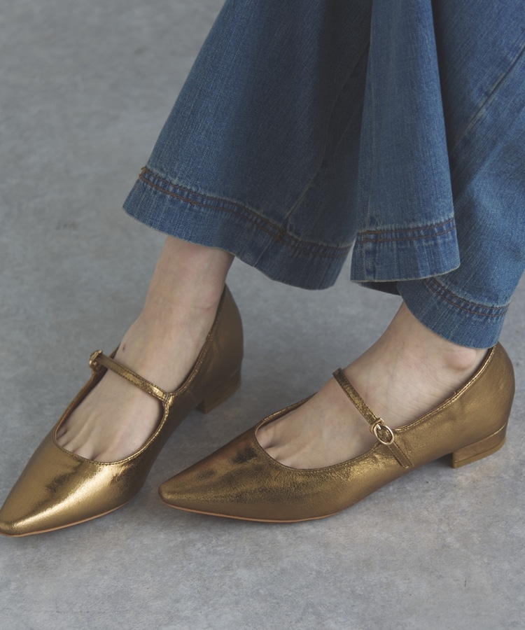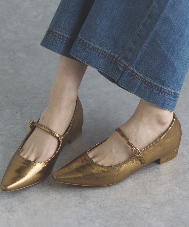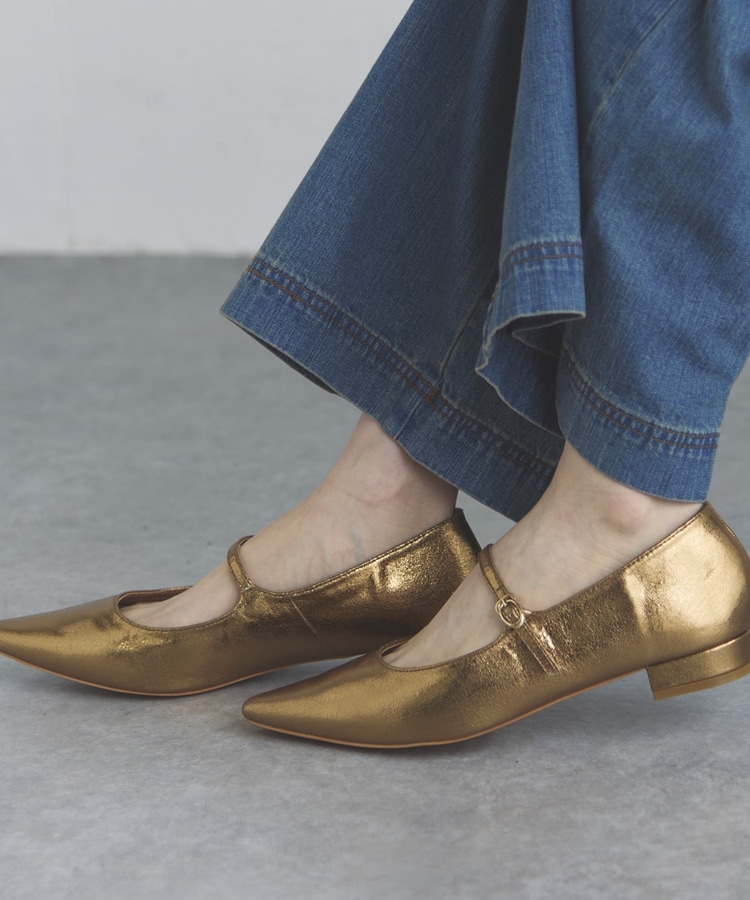 ストラップフラットパンプス GOLD