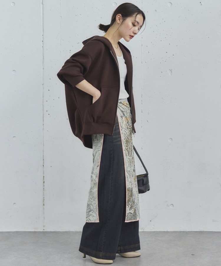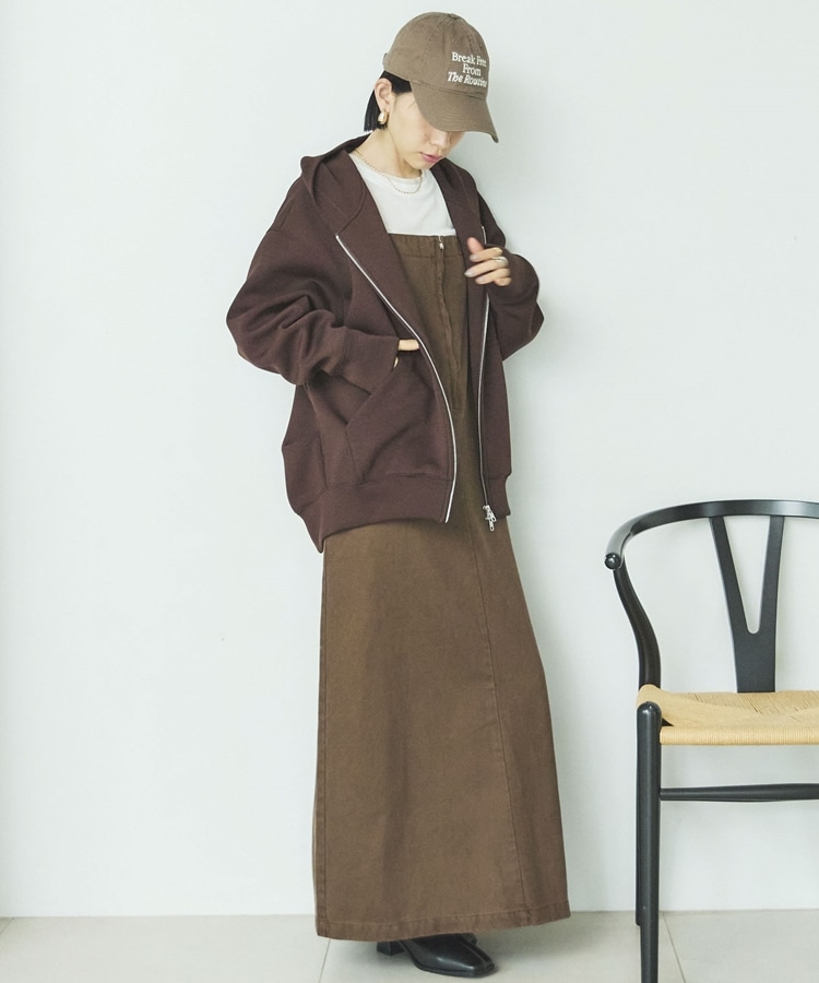 【もちもち/新色追加】W ZIP ボンディングBIGパーカー BROWN