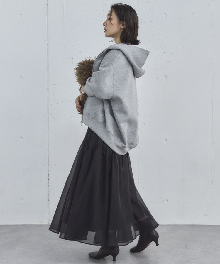 【もちもち/新色追加】W ZIP ボンディングBIGパーカー GRAY