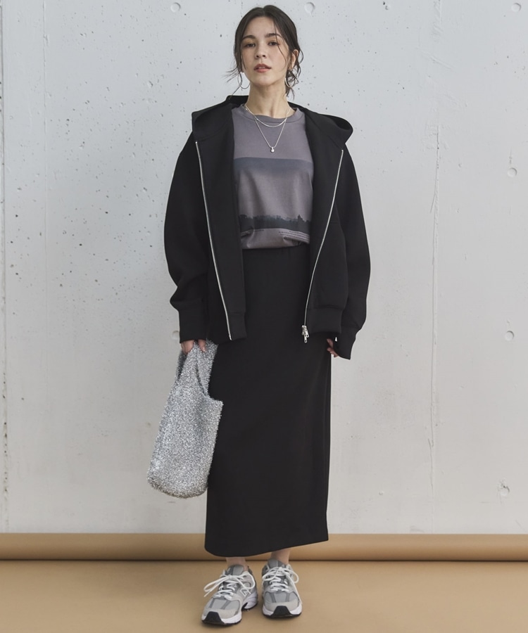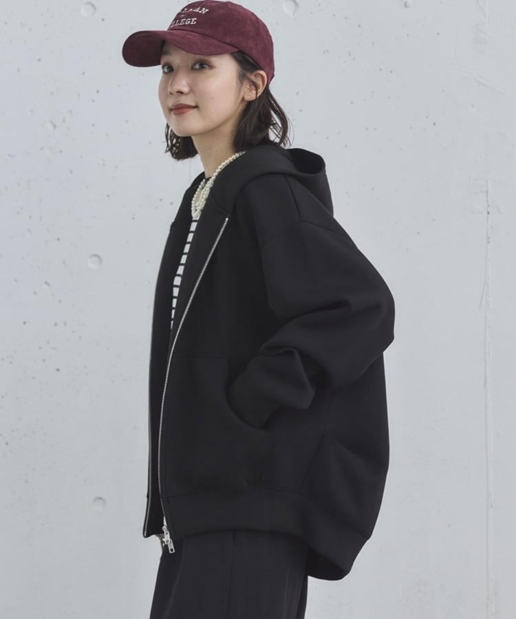 【もちもち/新色追加】W ZIP ボンディングBIGパーカー BLACK