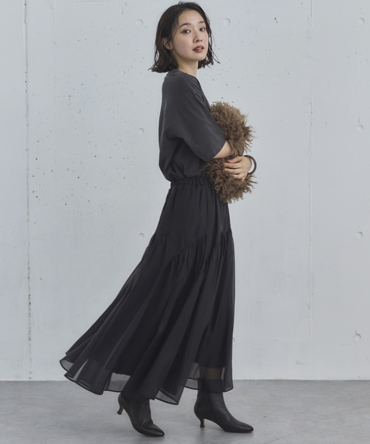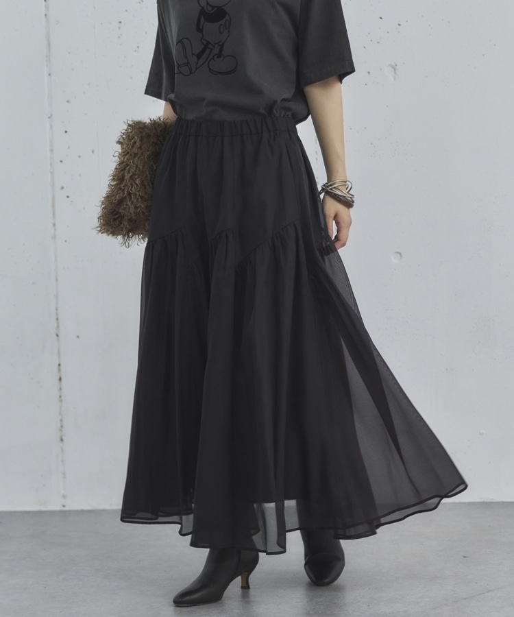 切替ギャザースカート BLACK