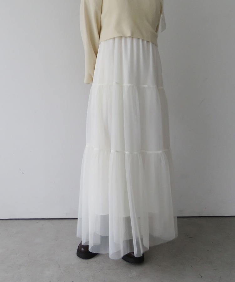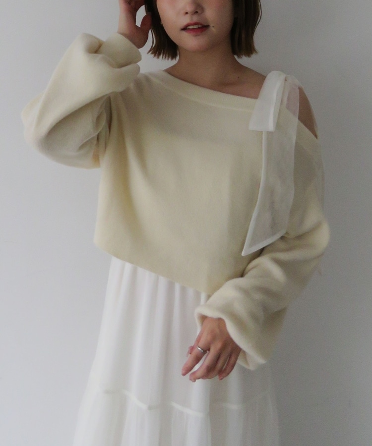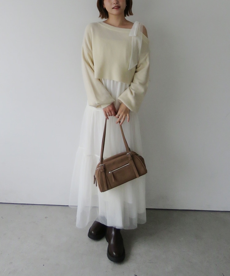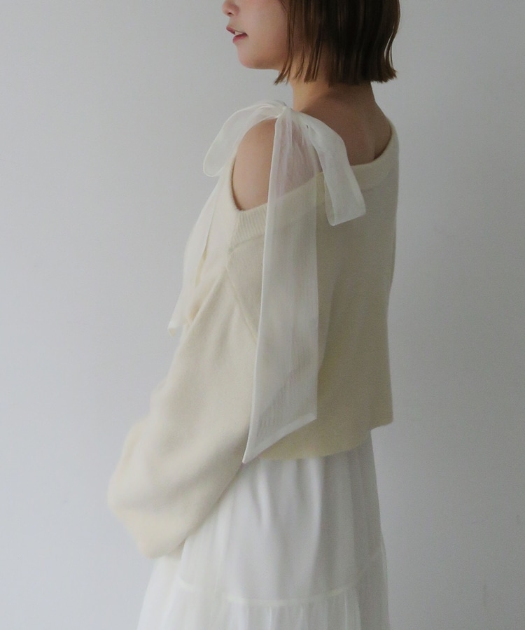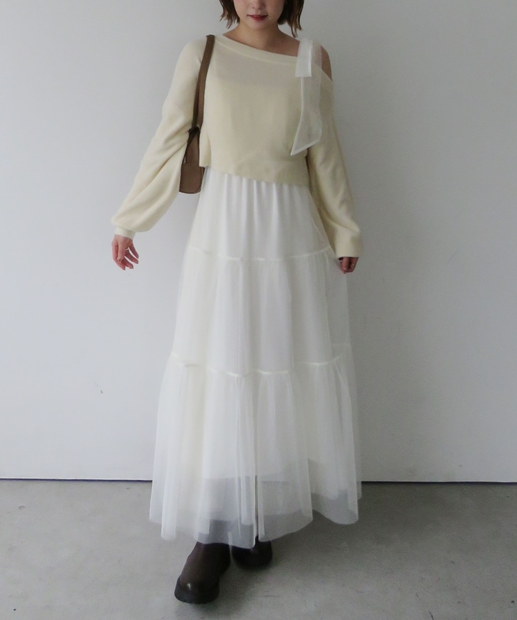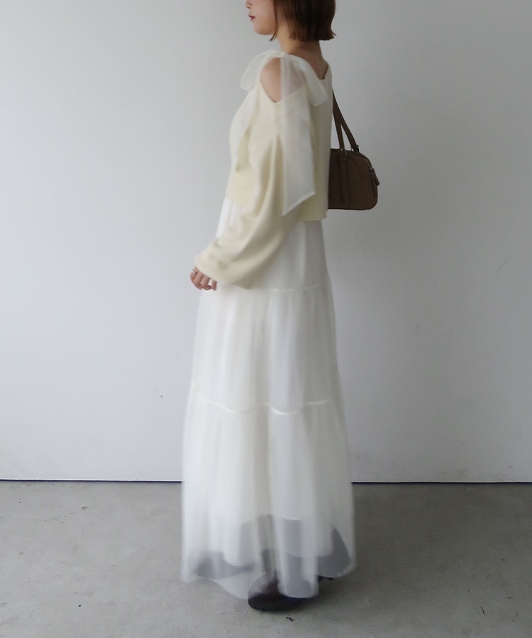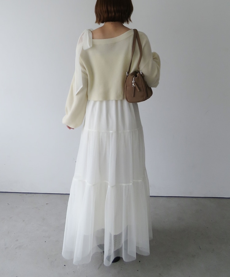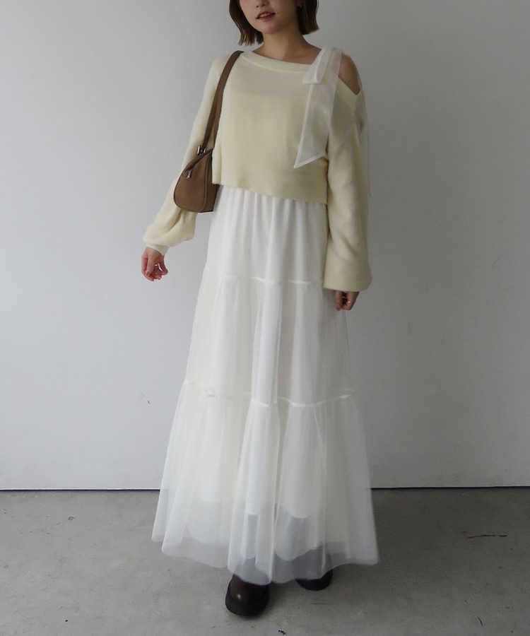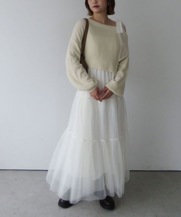 肩リボンニットプルオーバー×チュールキャミワンピースSET IVORY