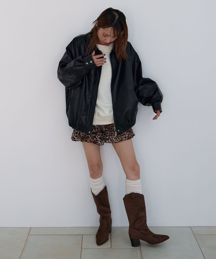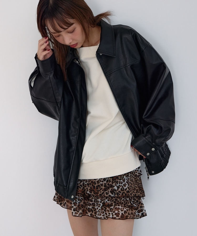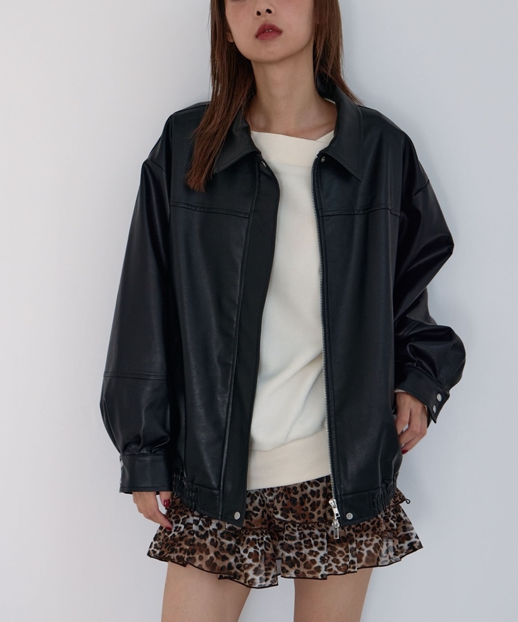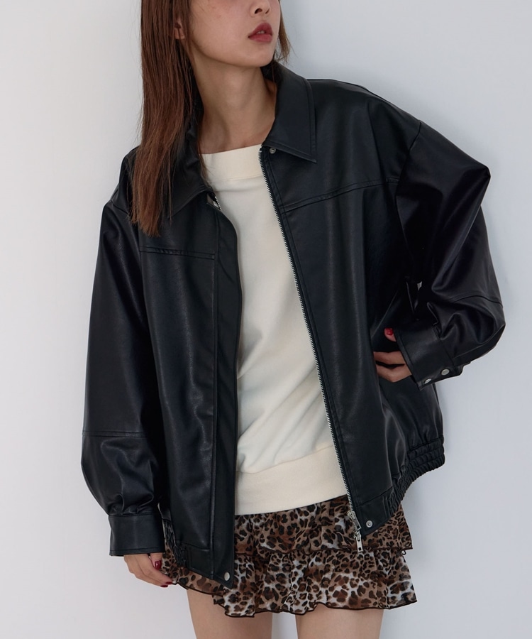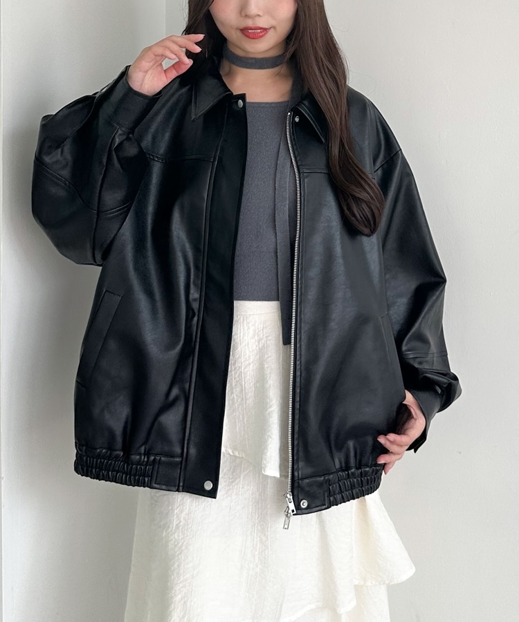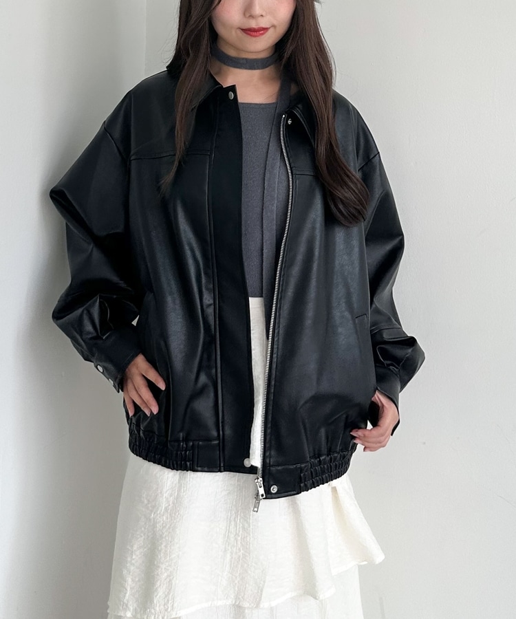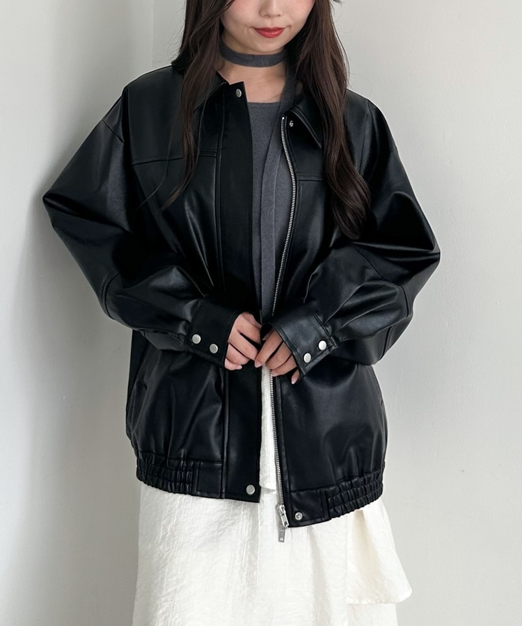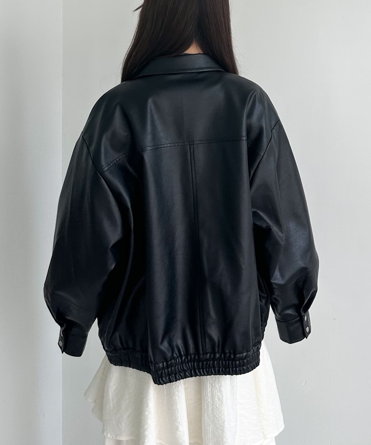 フェイクレザーミドルブルゾン BLACK