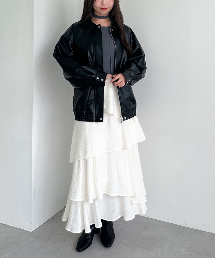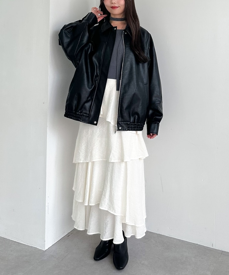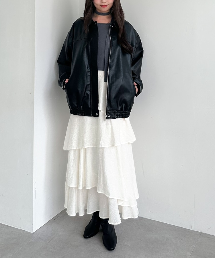 防寒性の高いフェイクレザーは秋から冬まで着て頂けます。