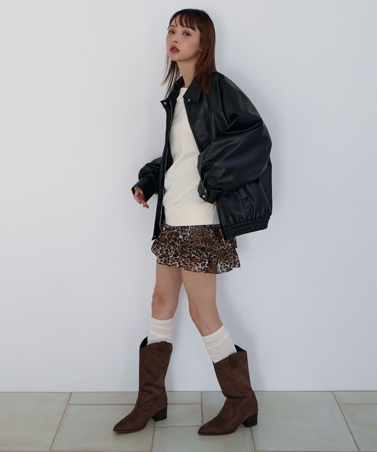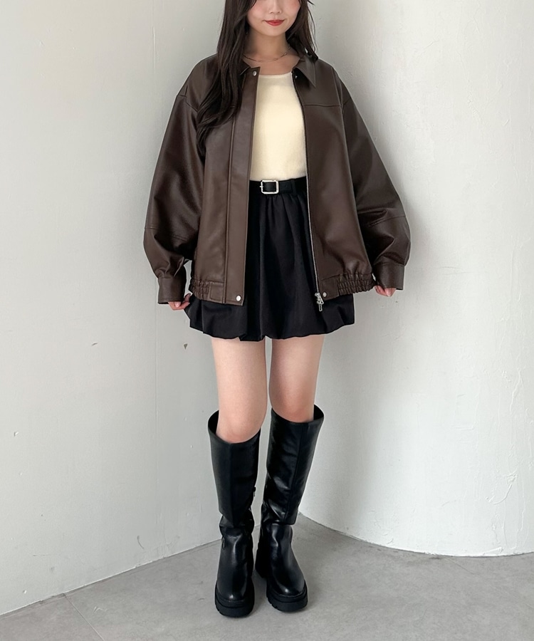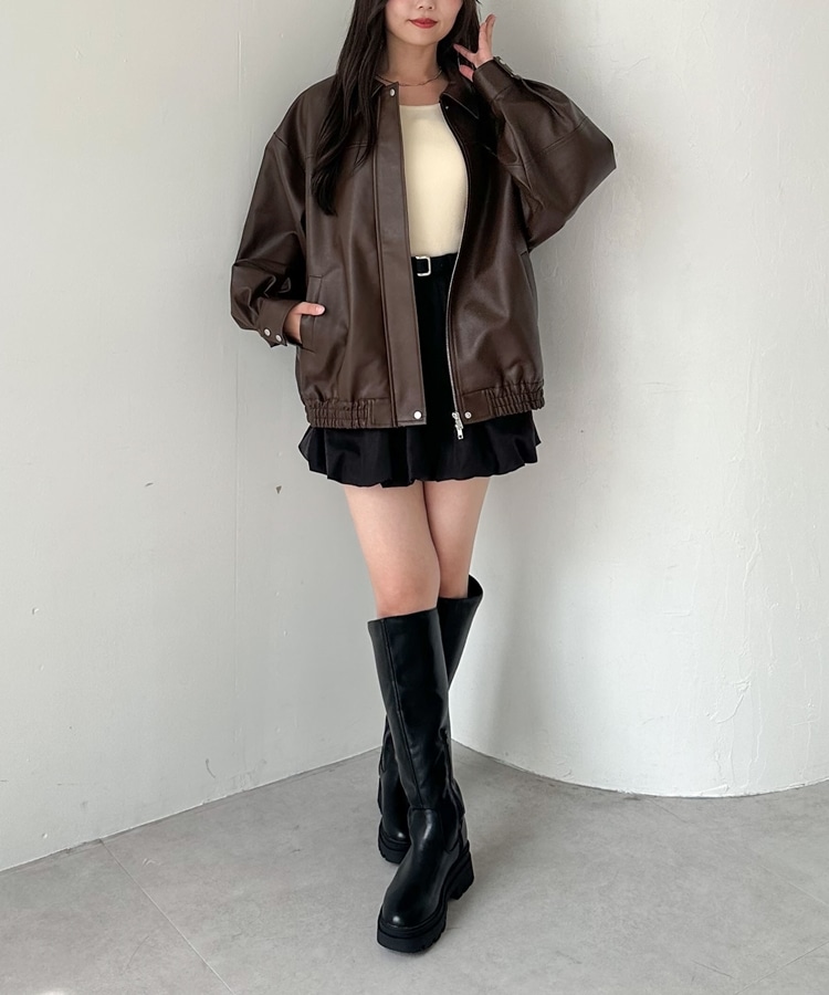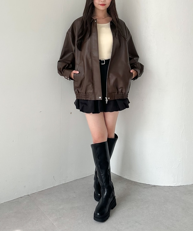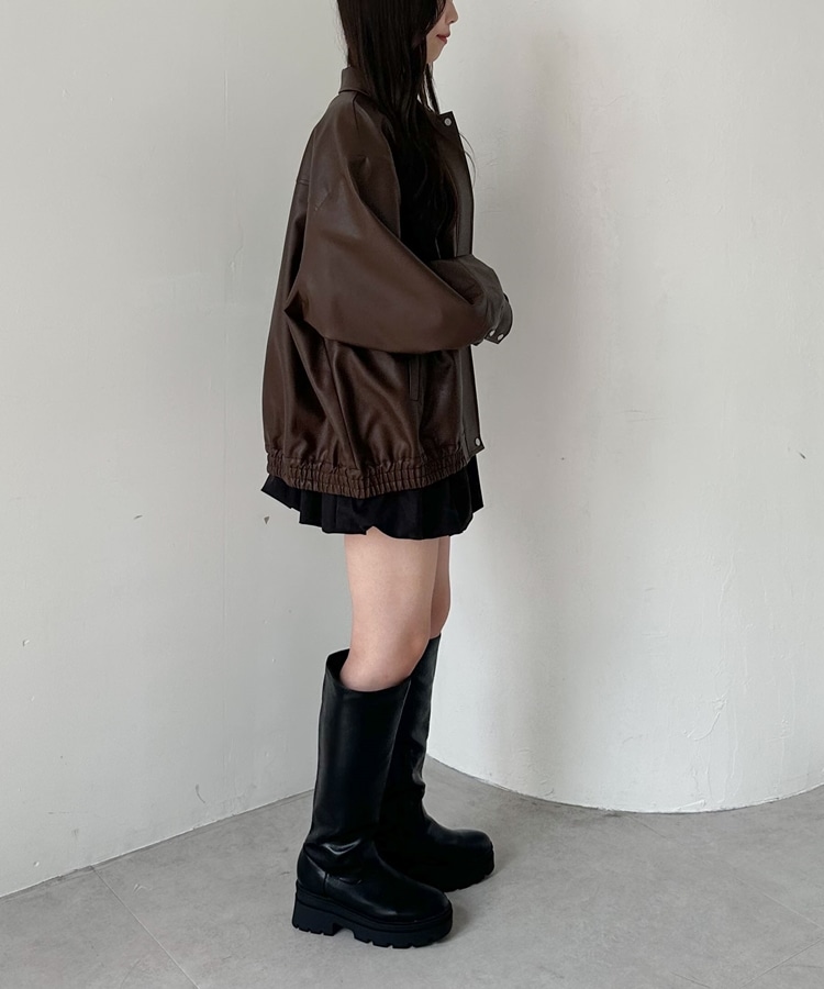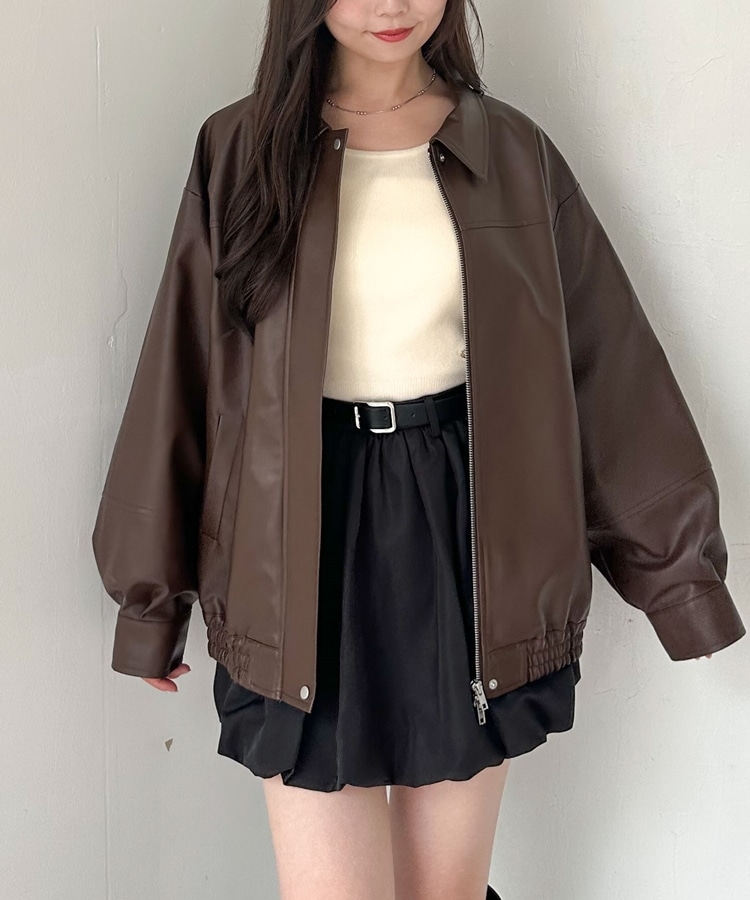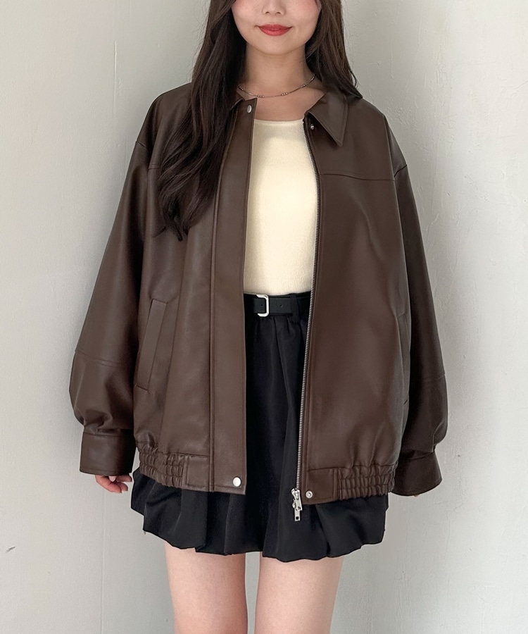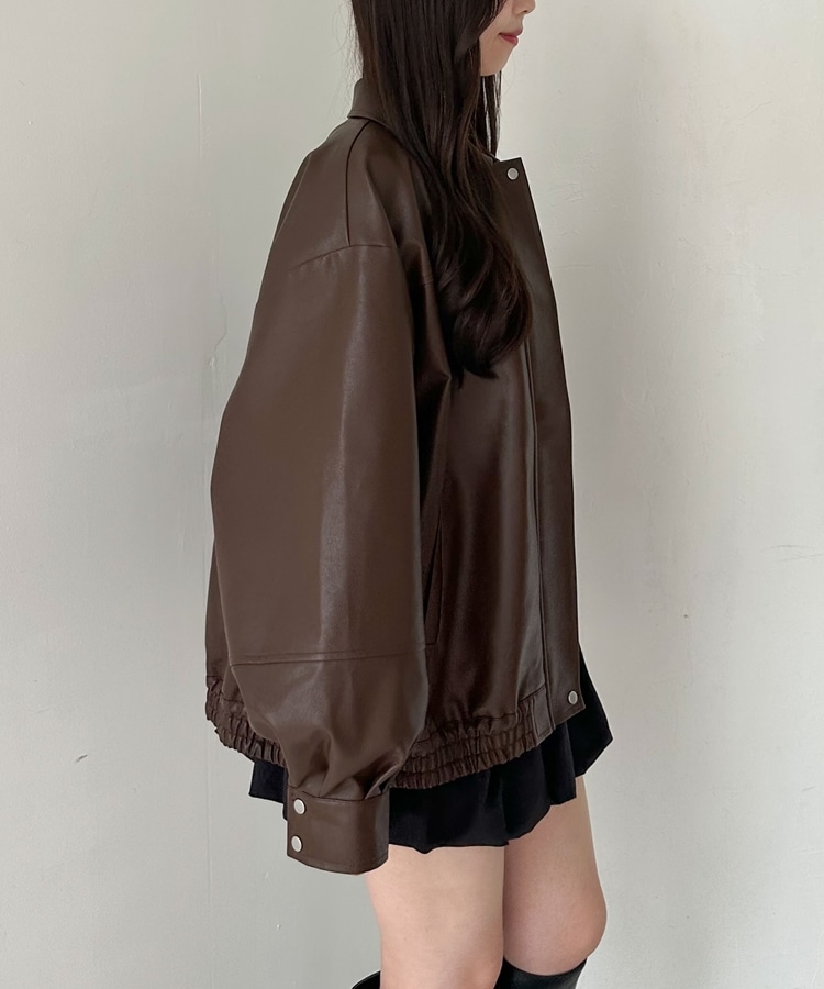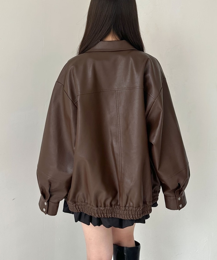 フェイクレザーミドルブルゾン BROWN