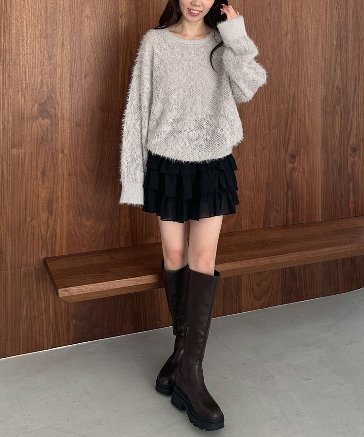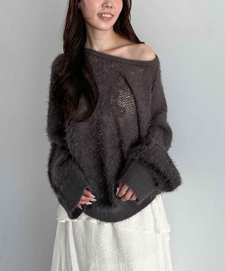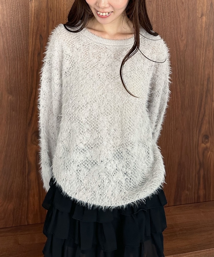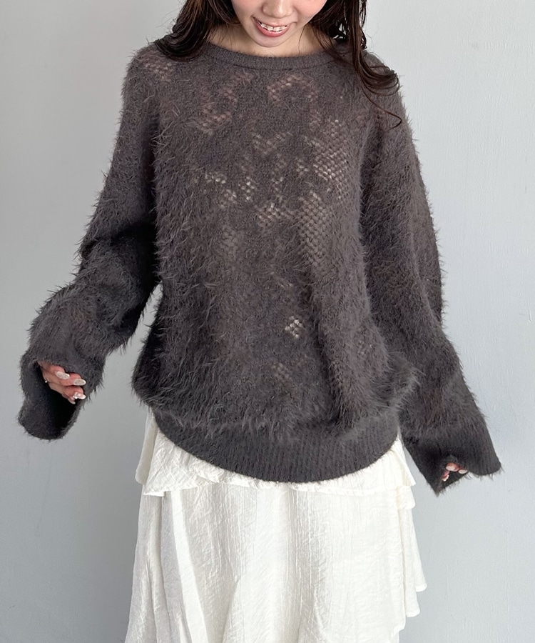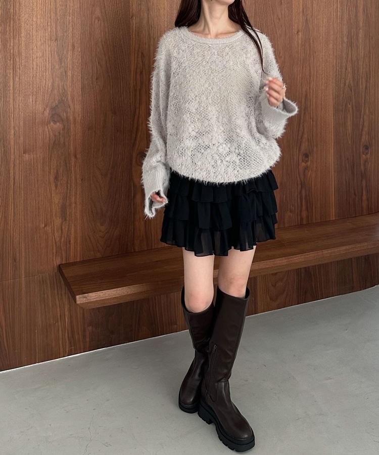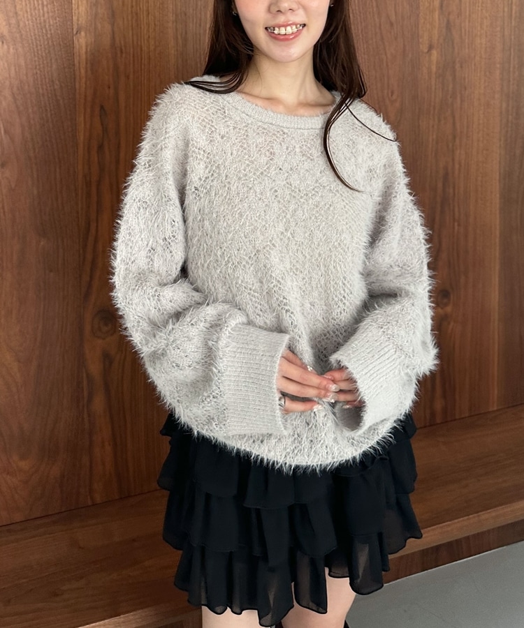 シャギーフラワーJQミドルニットプルオーバー GRAY