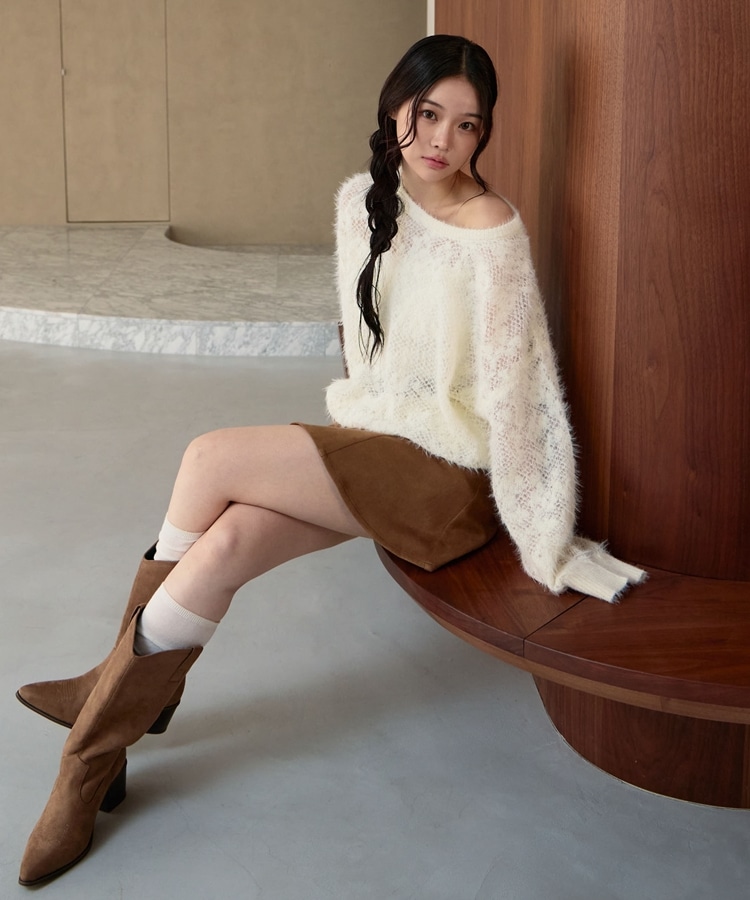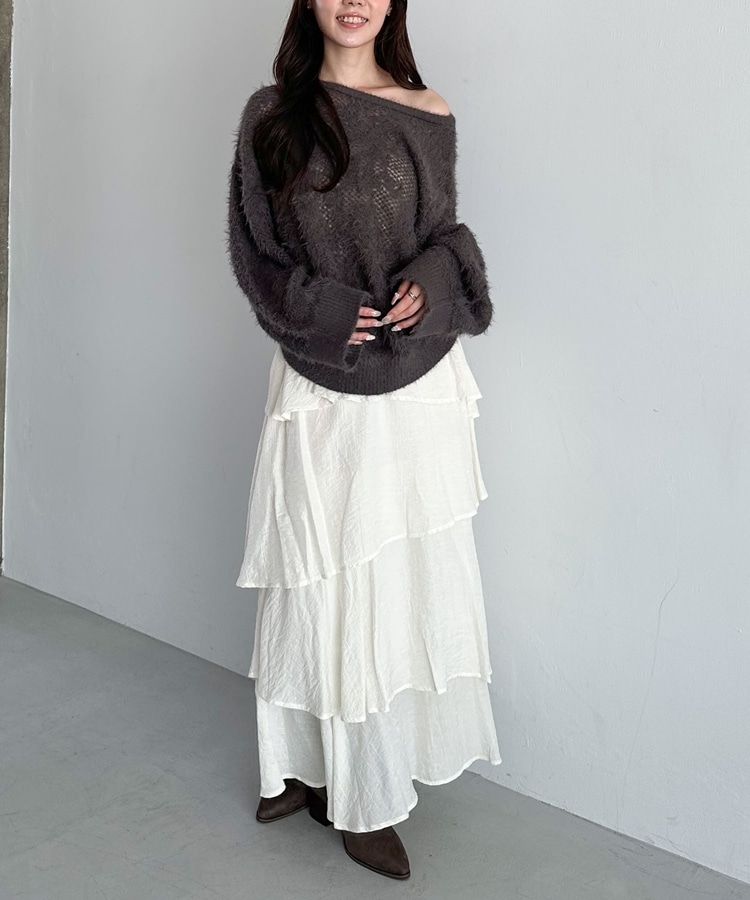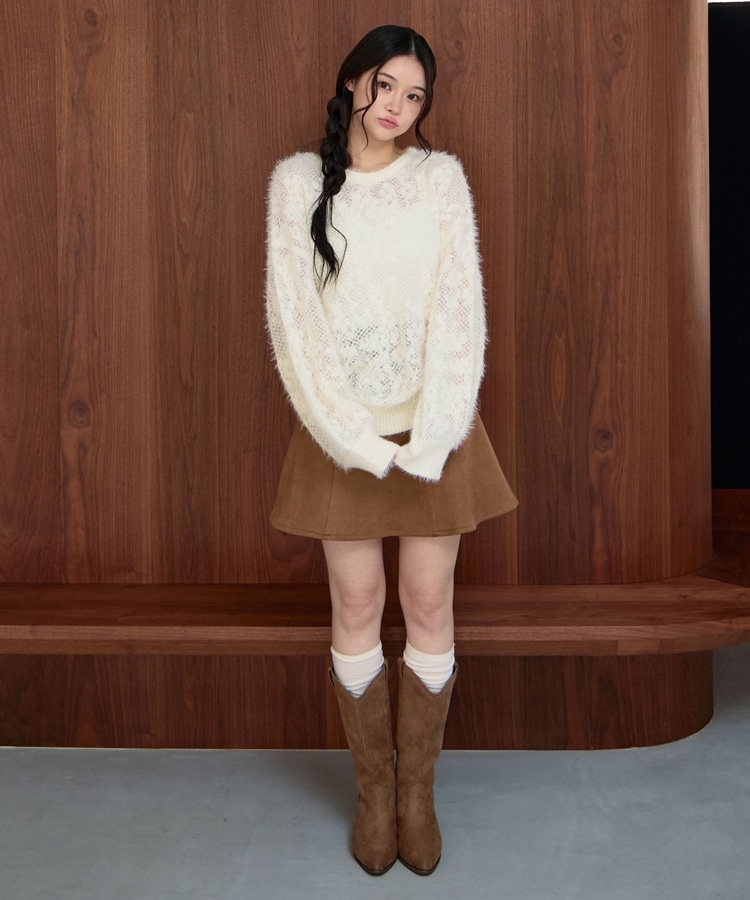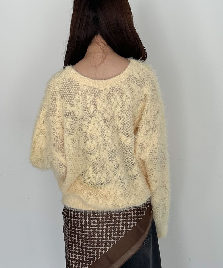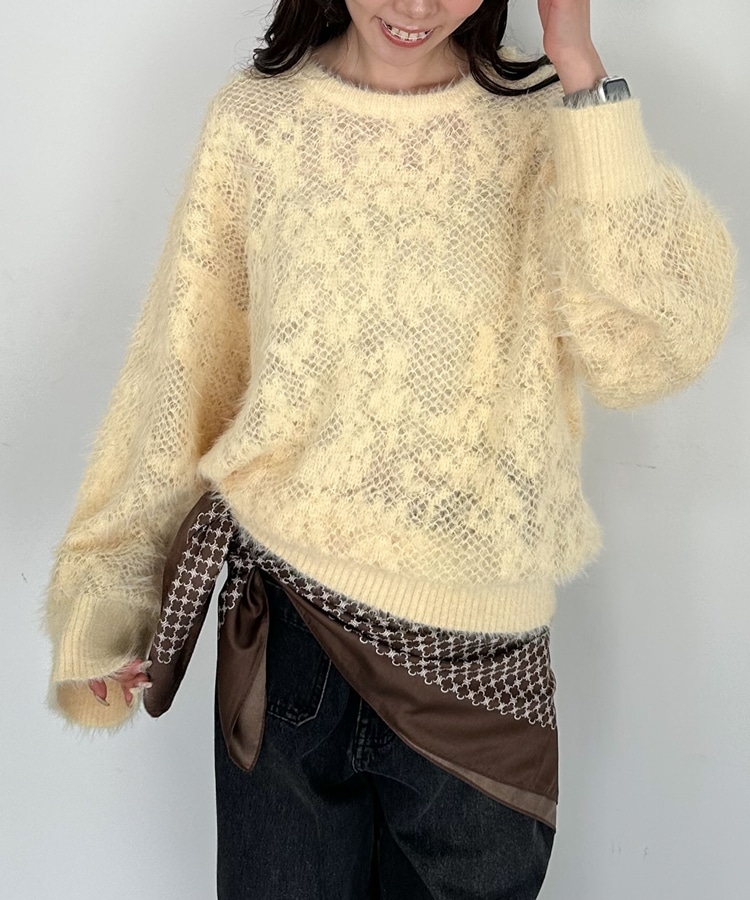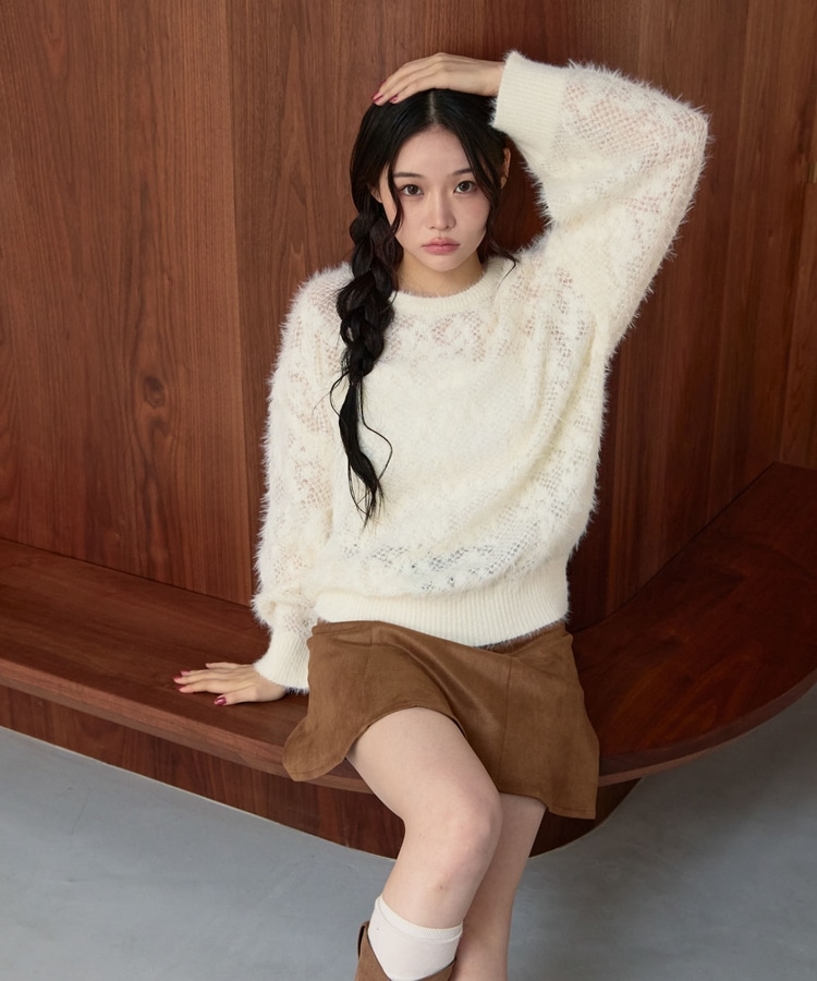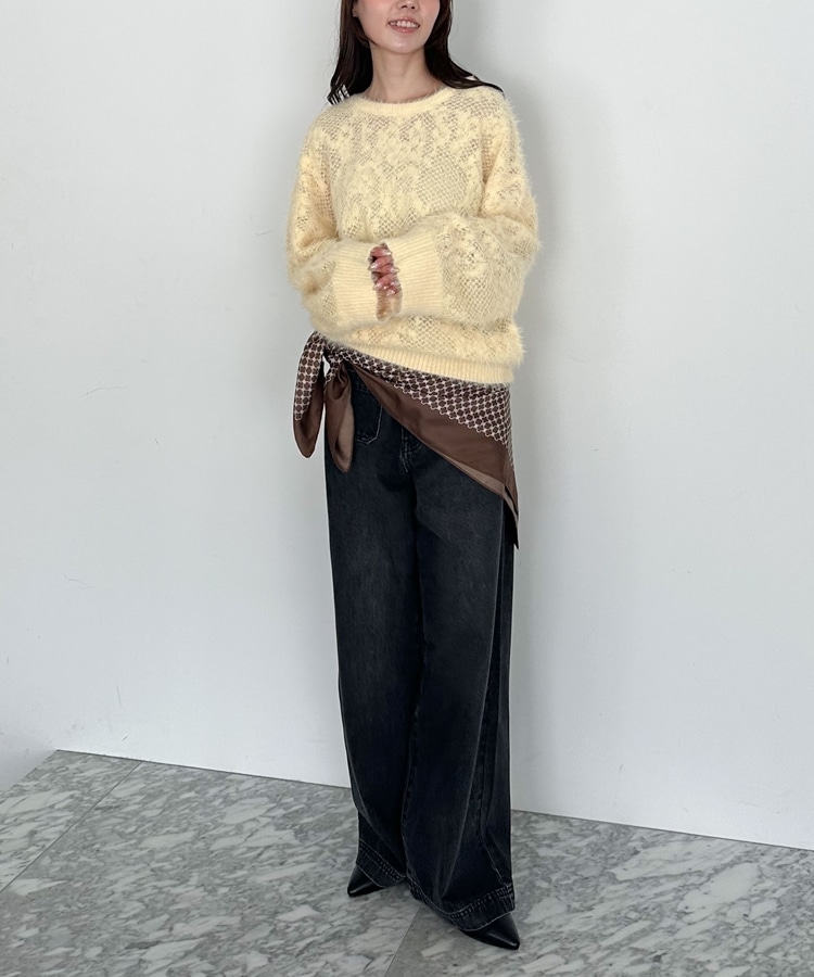 シャギーフラワーJQミドルニットプルオーバー IVORY