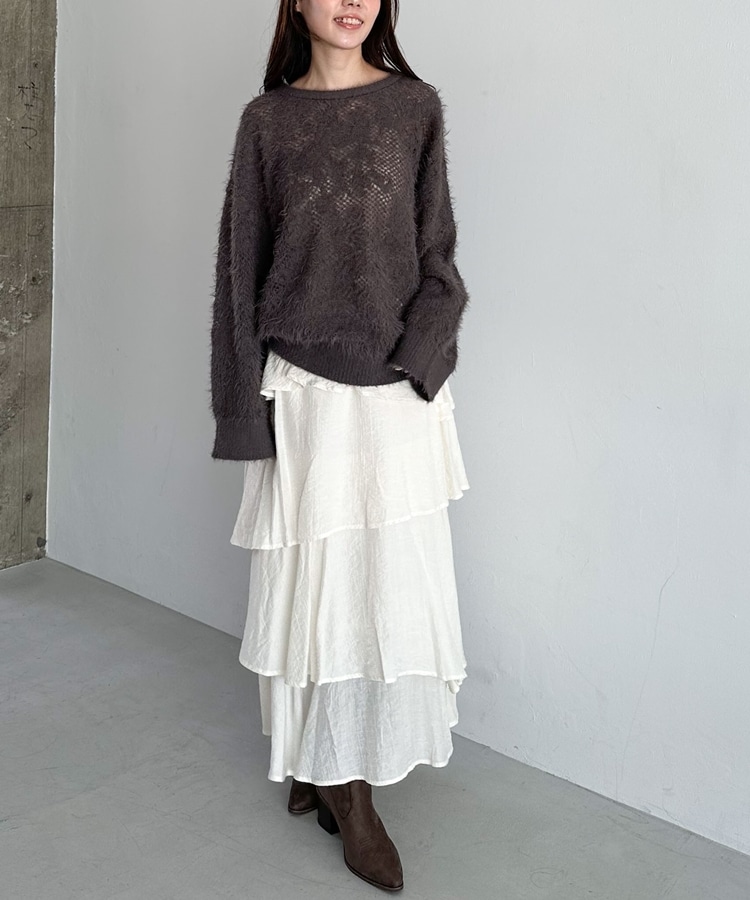 シャギーフラワーJQミドルニットプルオーバー BROWN