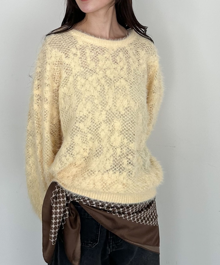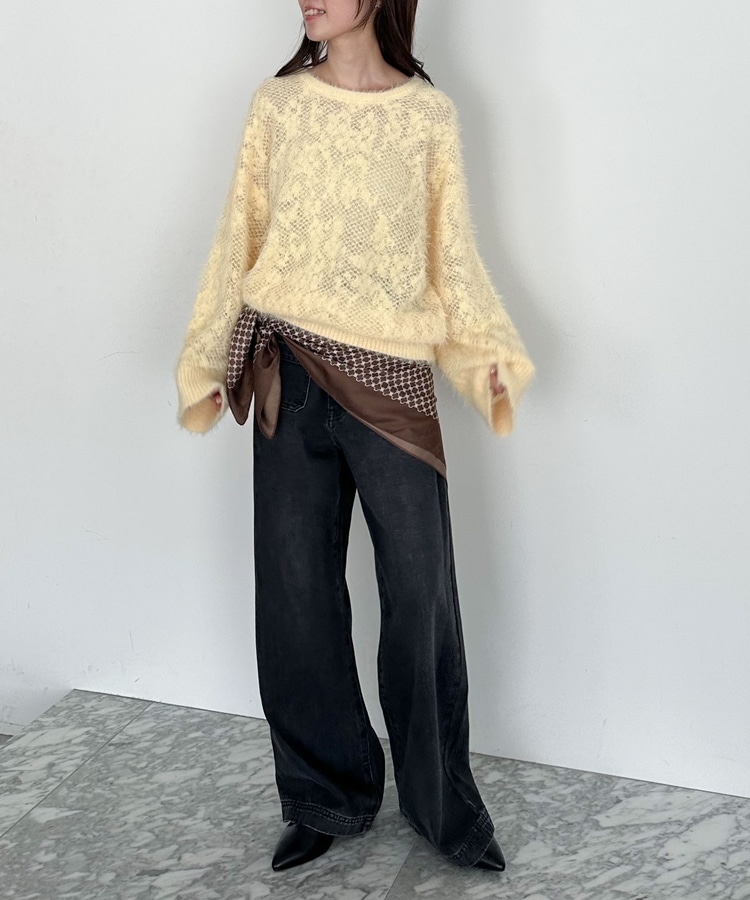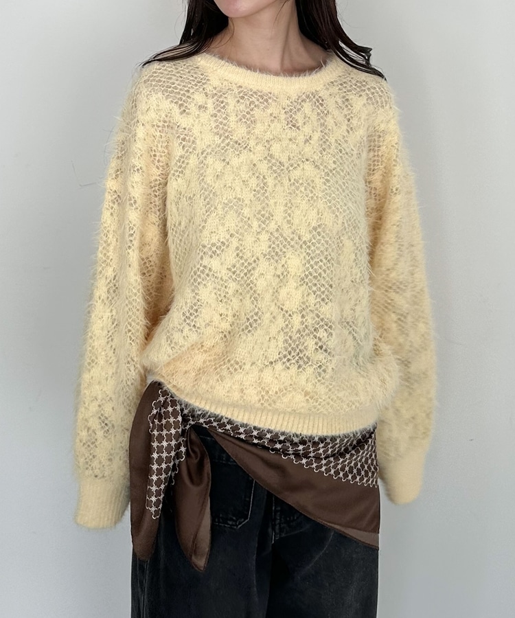 シャギーフラワーJQミドルニットプルオーバー YELLOW