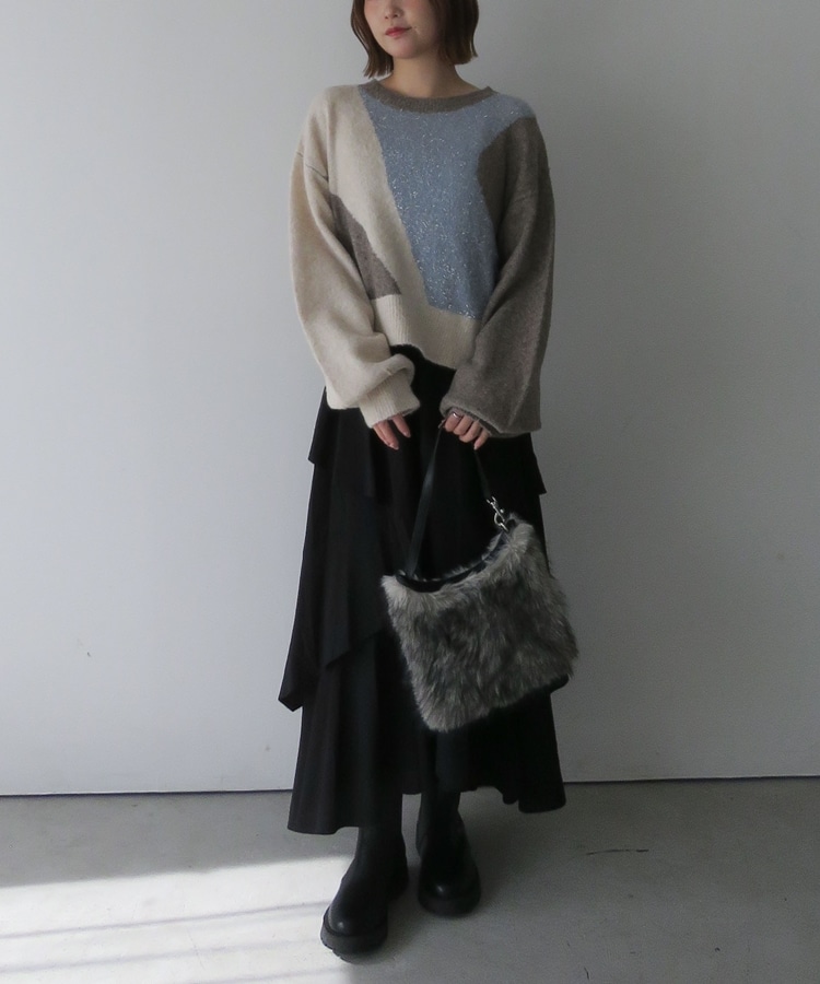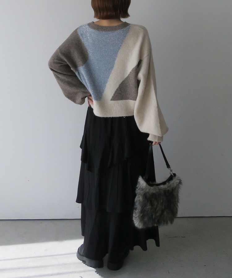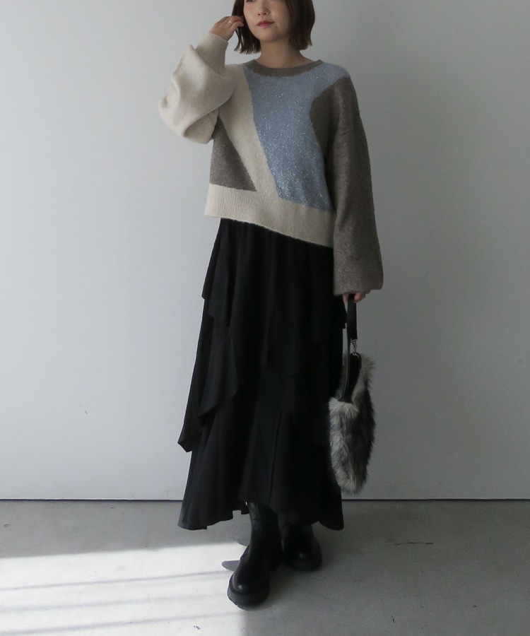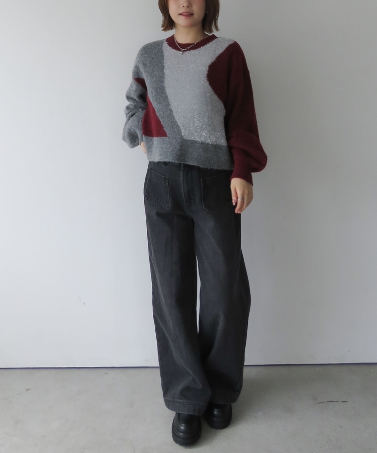 ■オシャレ見えする一枚■ニュアンス柄がオシャレ見えする一枚。違う生地で編まれた柄は一枚で主役に。目を引くカラーリングなのもワンポイント。モチっとした柔らかいさわり心地で着心地◎身幅が広く、肩もドロップショルダーになっているのでゆったりと着こなせます。これだけで主役になるのでどんなボトムスでもスタイリングを楽しめます。ーーーーーーーーーーーーーーー透け感:なし裏地:なし伸縮性:あり光沢感:なし生地厚さ:普通洗濯方法:手洗い推奨※詳しいお手入れ方法は商品についているタグをご覧くださいーーーーーーーーーーーーーーー※ご利用のモニター環境により、実際の色味と多少異なる場合がございます。