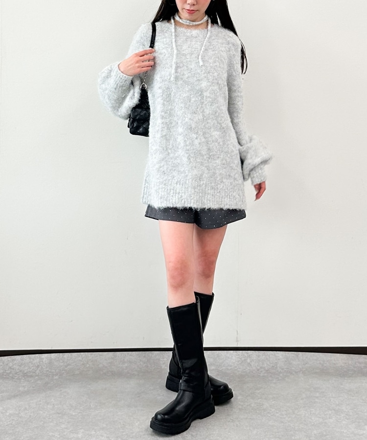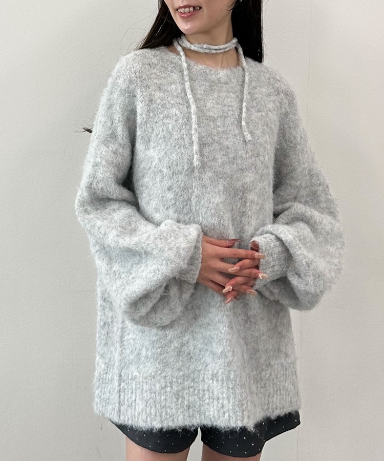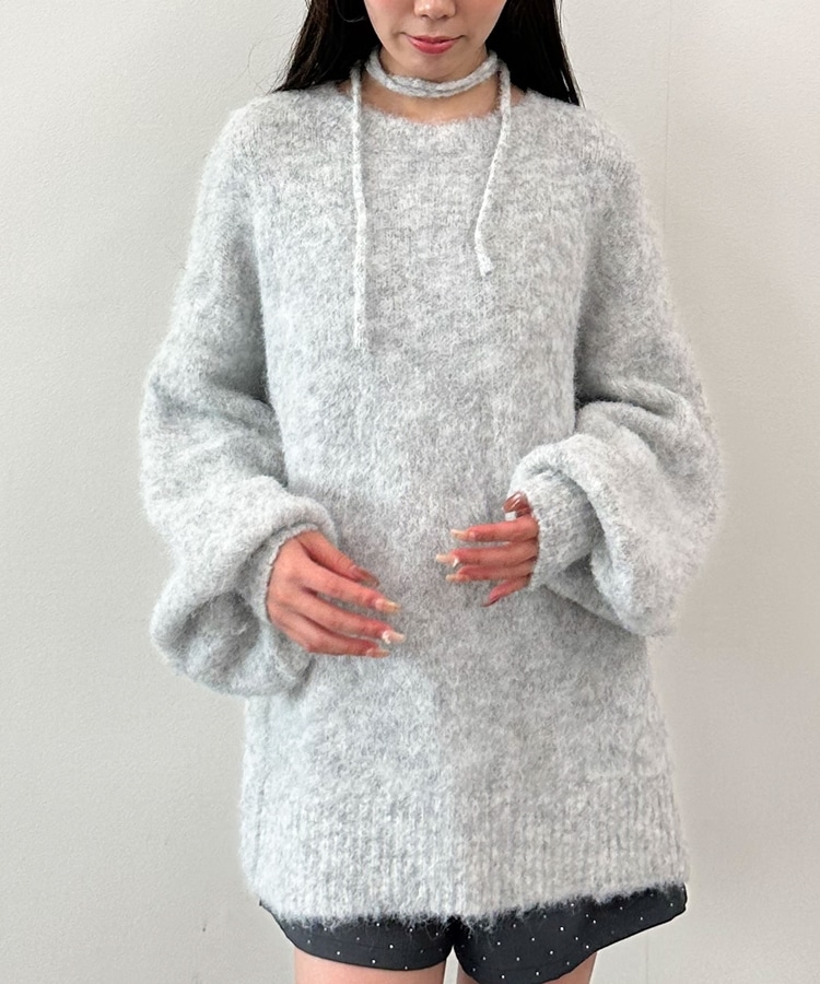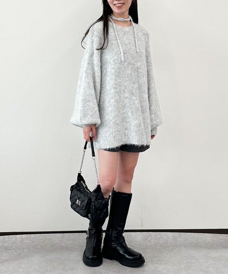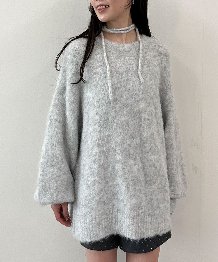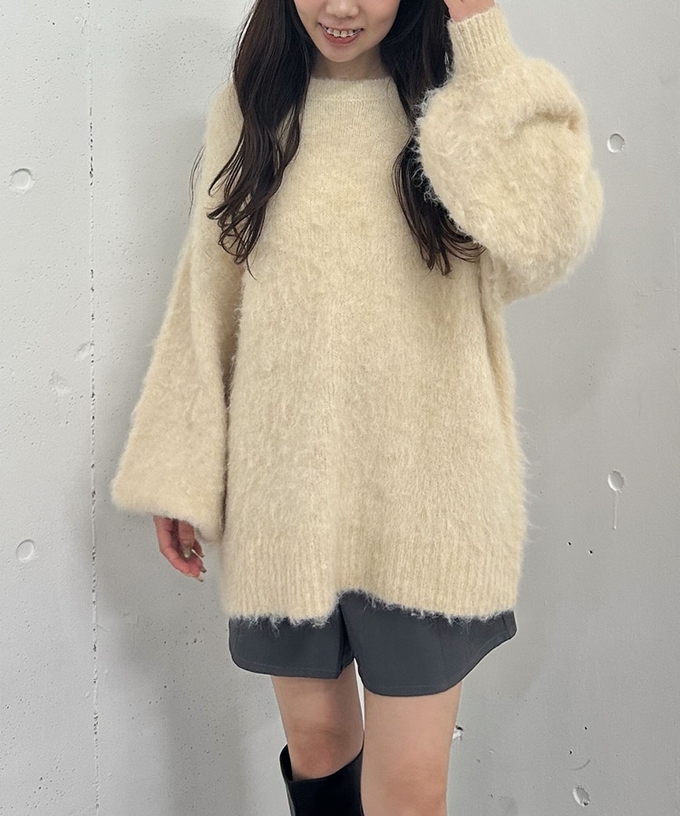 ■360度可愛いふわふわニット■人気のニットが今年も登場!ふわふわの生地が冬っぽさUP。毛足長めの生地は肌当たりも柔らかく着心地◎ニットが苦手な方でも着やすい仕様。ドロップショルダーのゆるっとしたシルエット。たっぷりたまる袖がワンポイント。バックスタイルは着映えするレースアップデザイン。360度どこから見ても可愛く着こなせます。腰が隠れるほどの長さなのでショートパンツを合わせてワンピース風に着こなすのもおすすめです。ーーーーーーーーーーーーーーー透け感:若干あり裏地:なし伸縮性:あり光沢感:なし生地厚さ:普通洗濯方法:手洗い推奨※詳しいお手入れ方法は商品についているタグをご覧くださいーーーーーーーーーーーーーーー※ご利用のモニター環境により、実際の色味と多少異なる場合がございます。