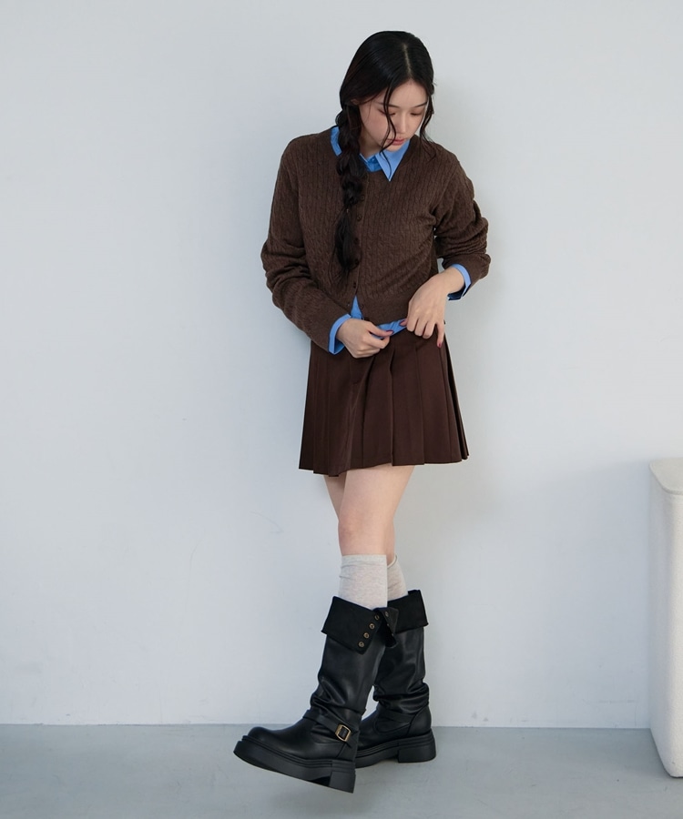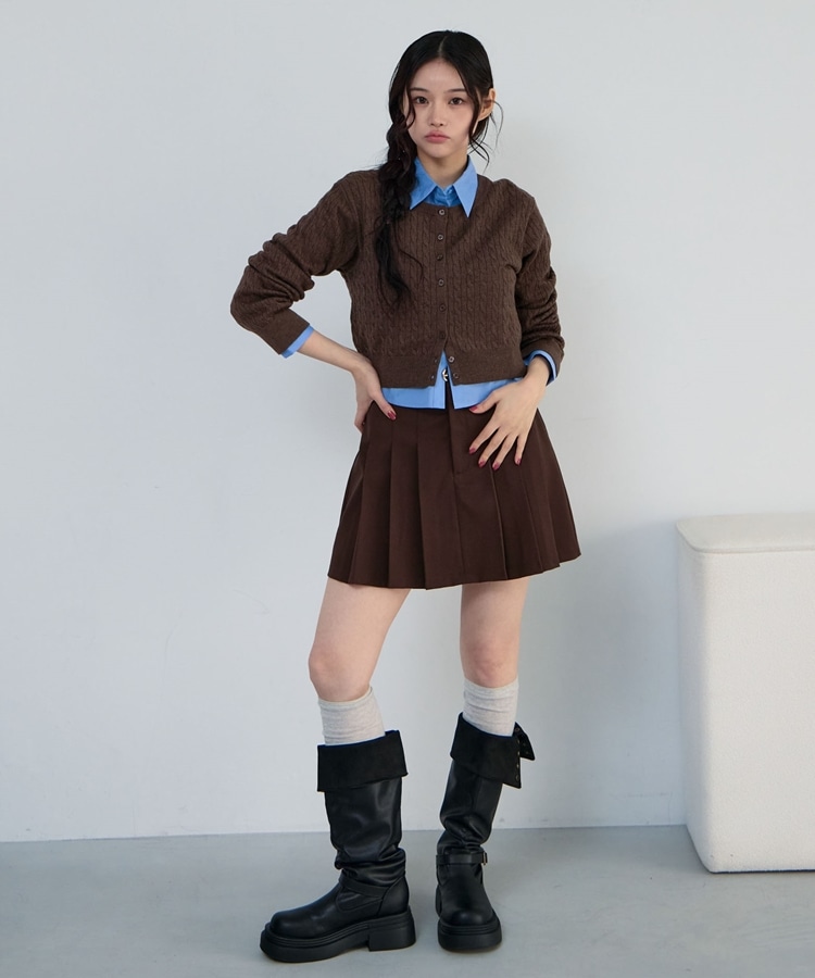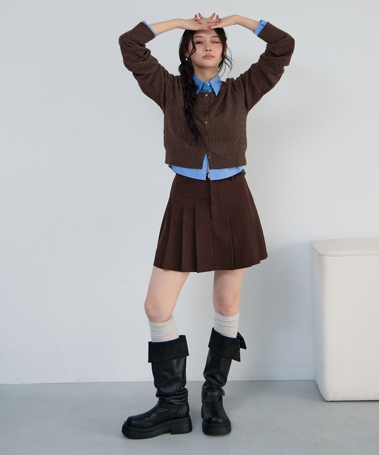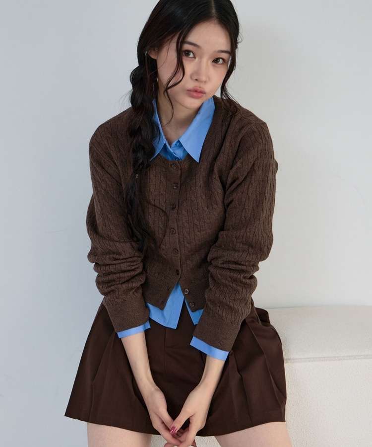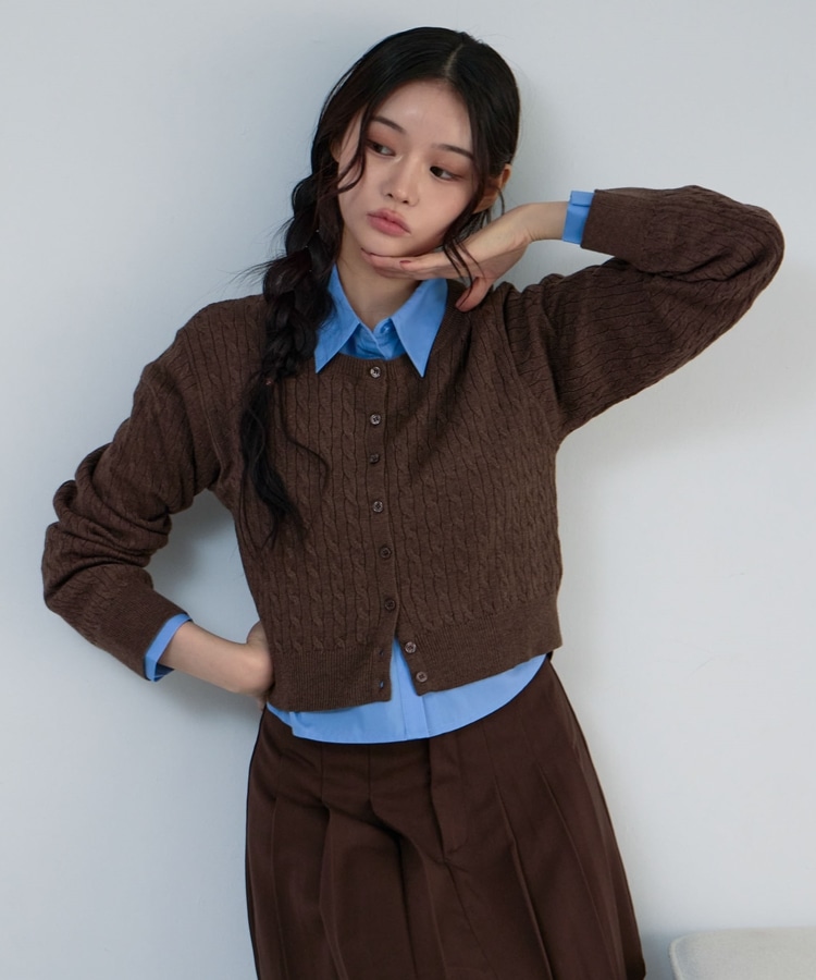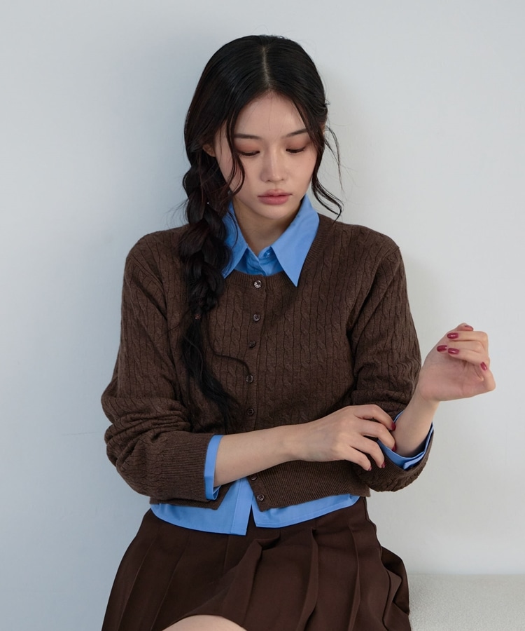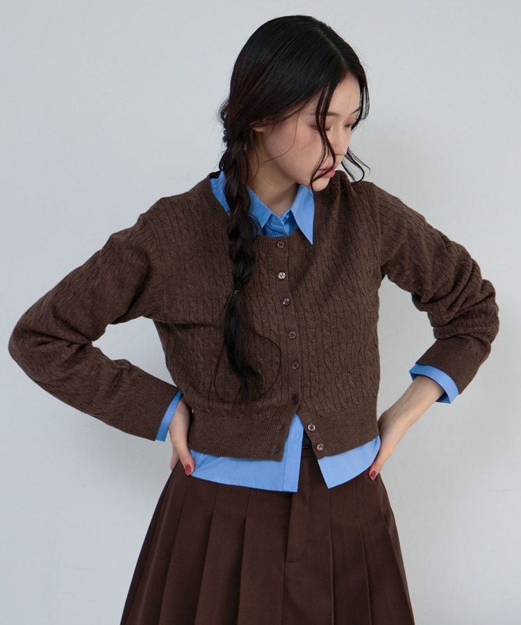 ケーブルニットCD×シャツSET BROWN