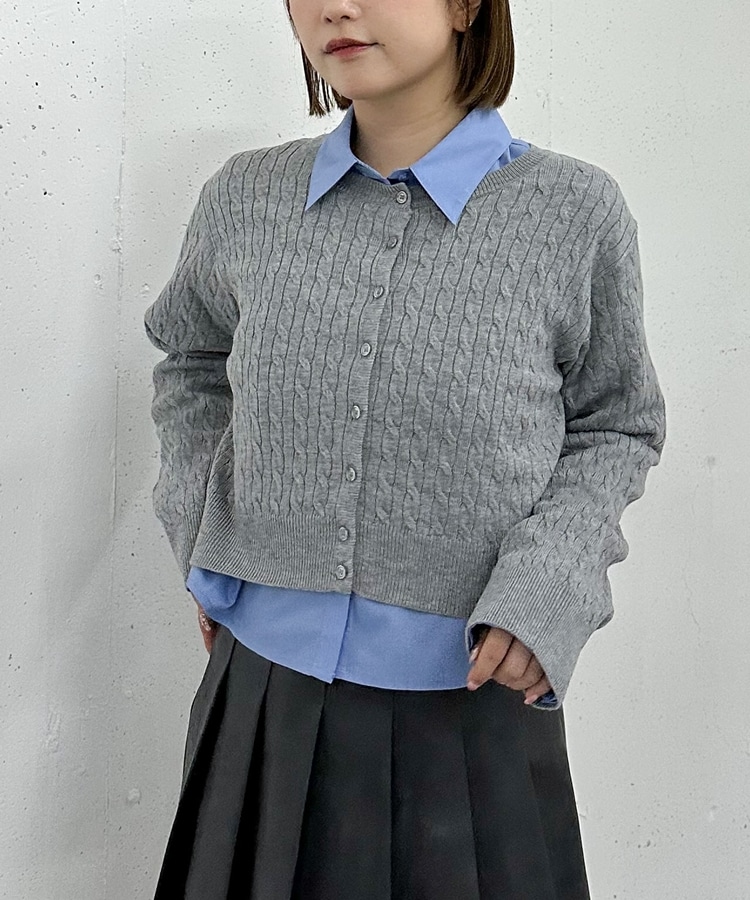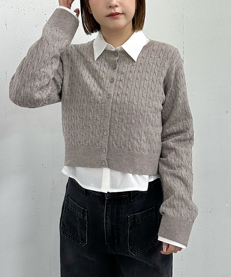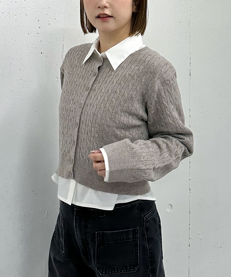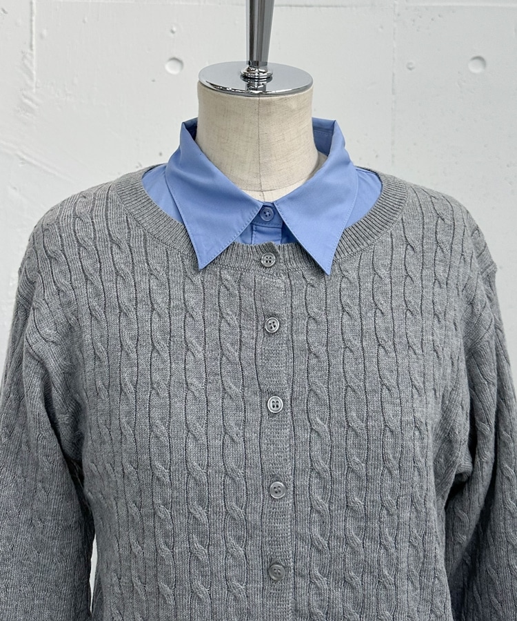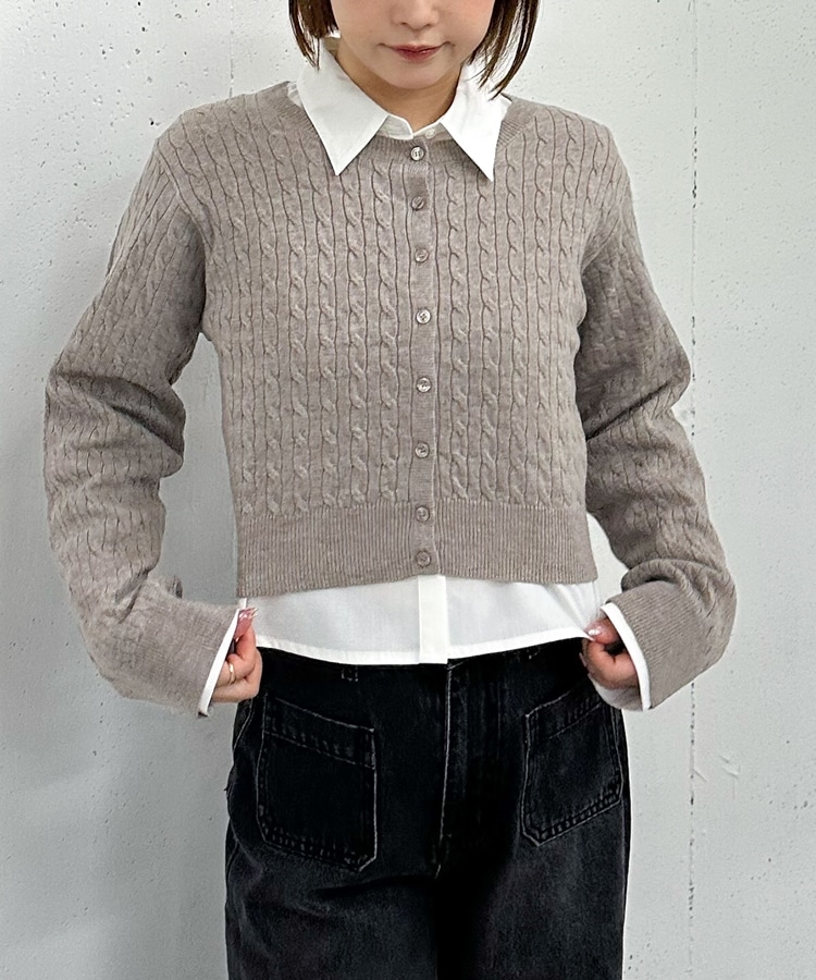 ケーブルニットCD×シャツSET GREIGE