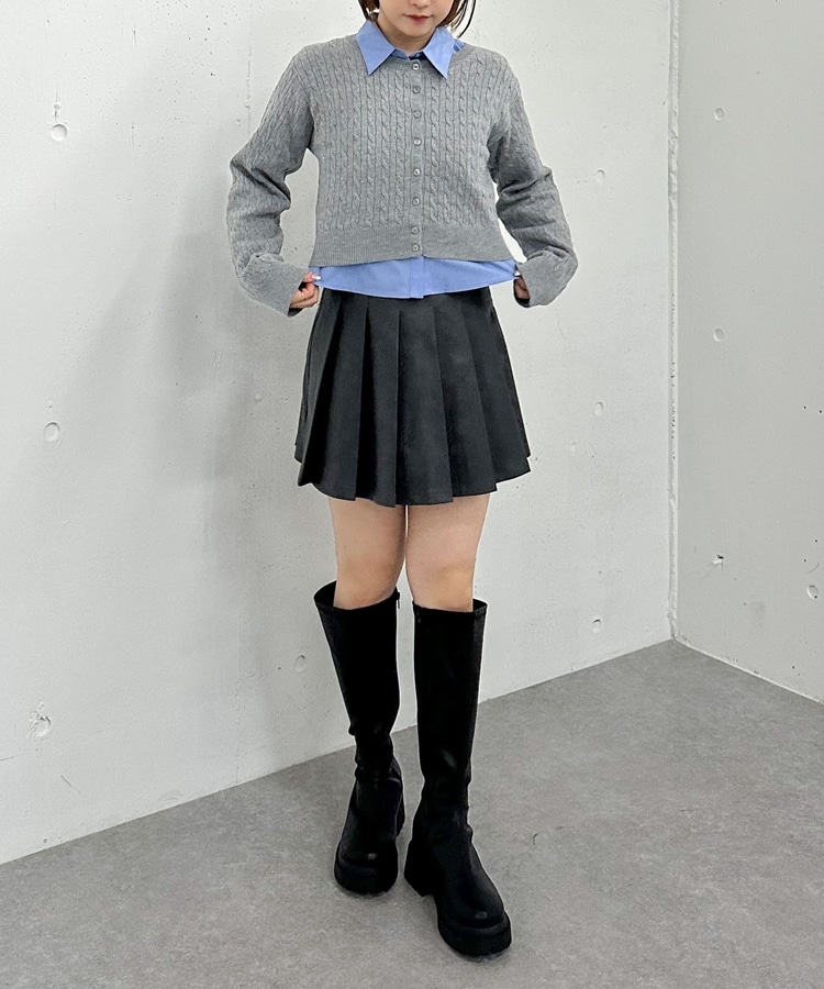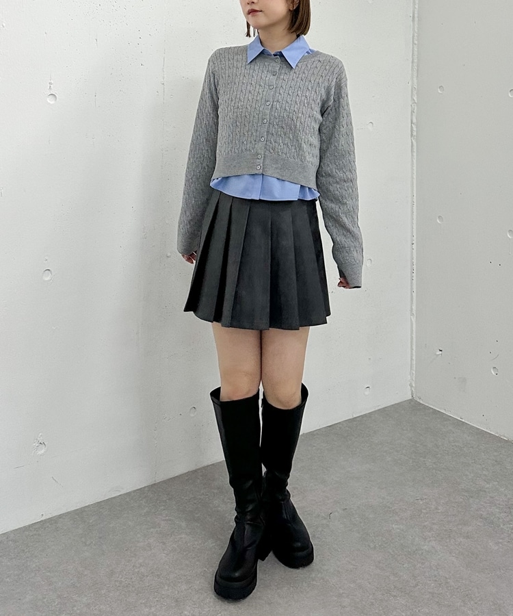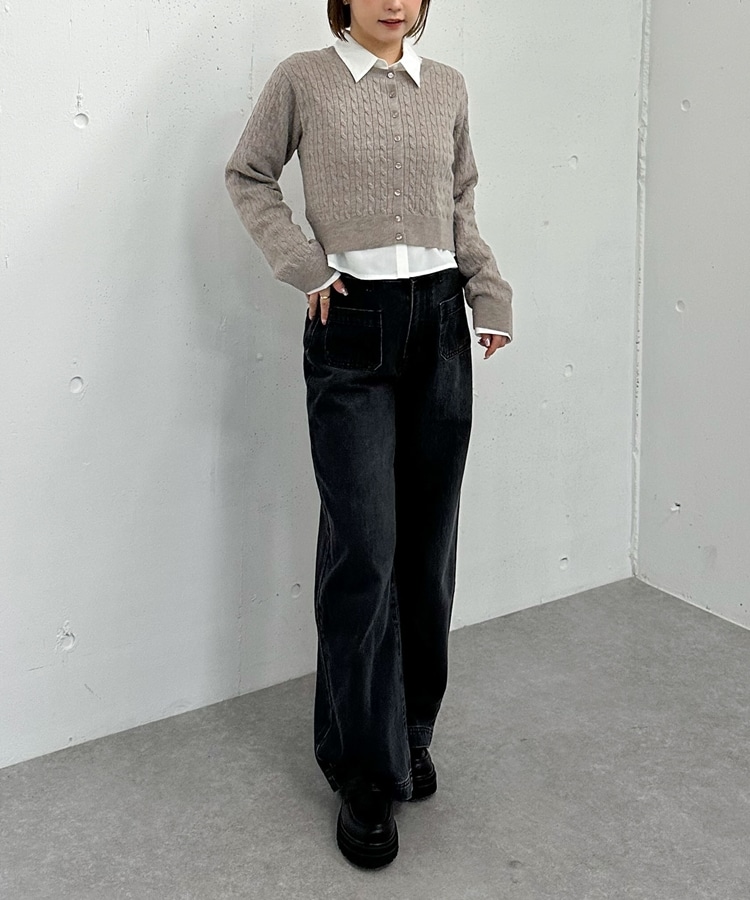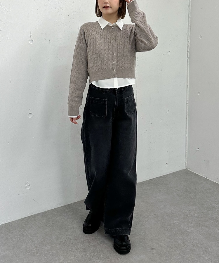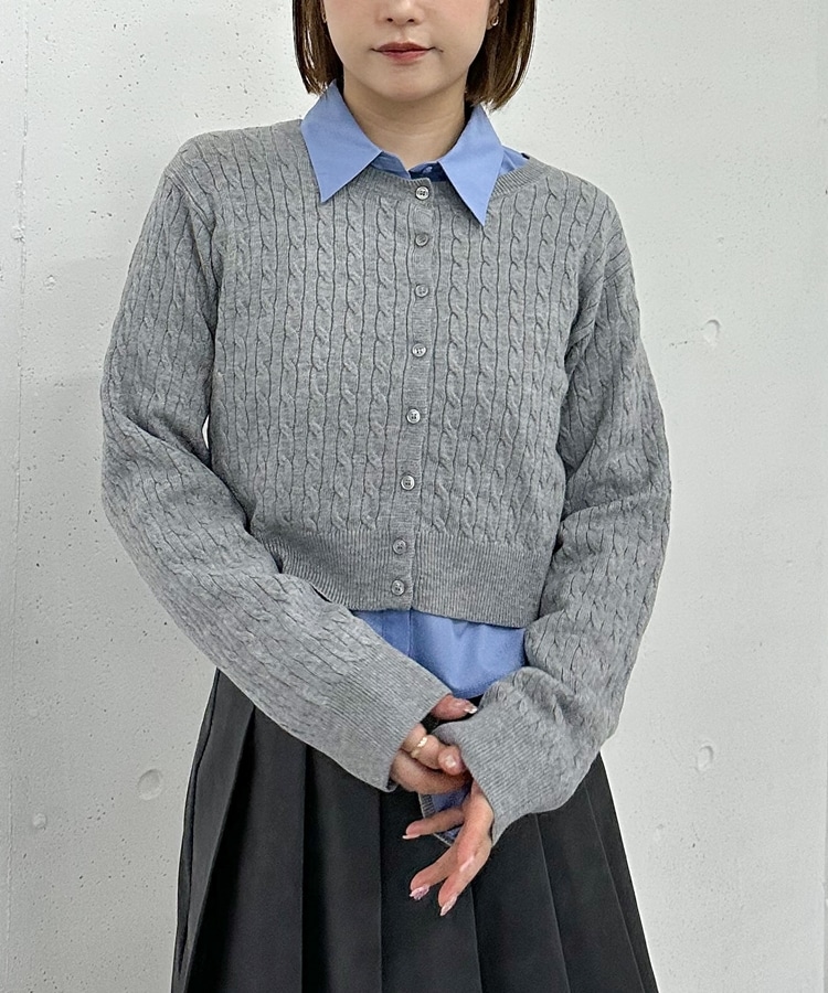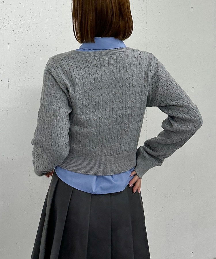 ケーブルニットCD×シャツSET GREIGE