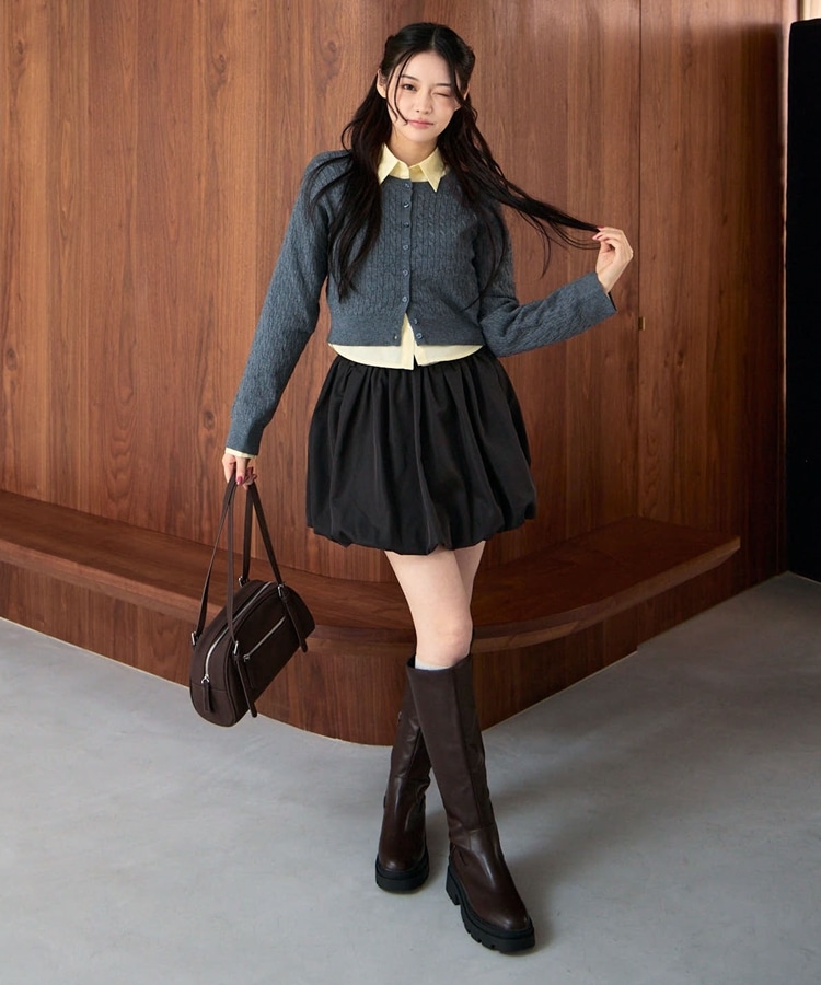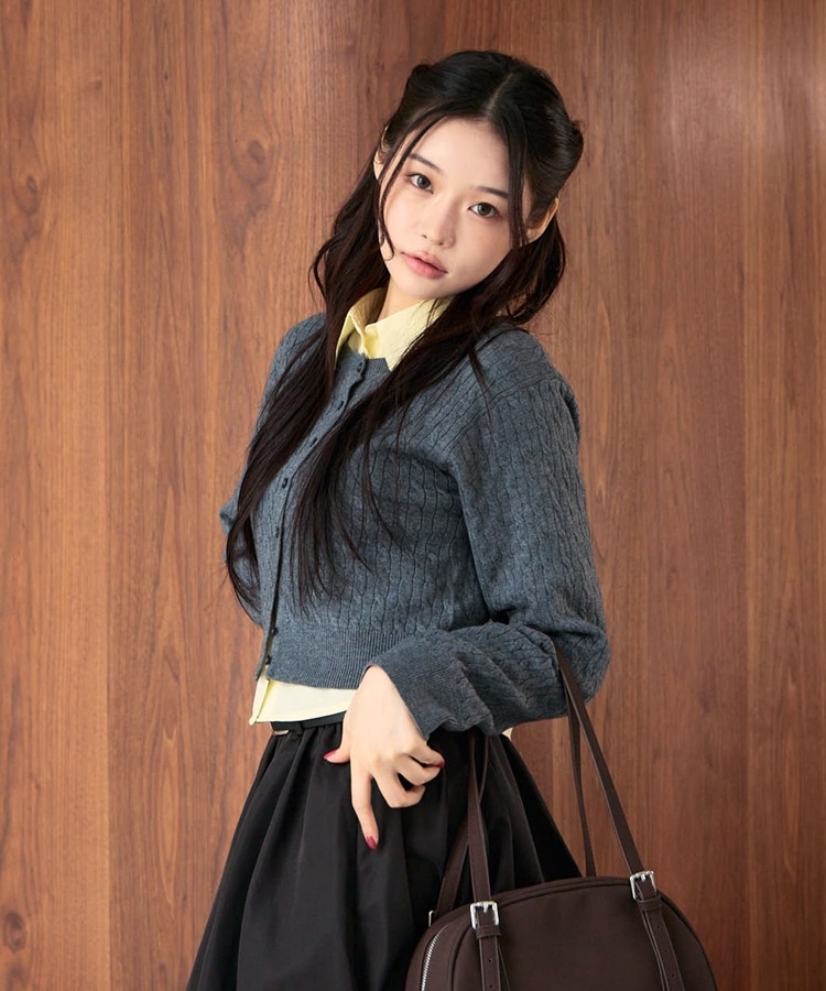 ケーブルニットCD×シャツSET CHARCOAL GRAY