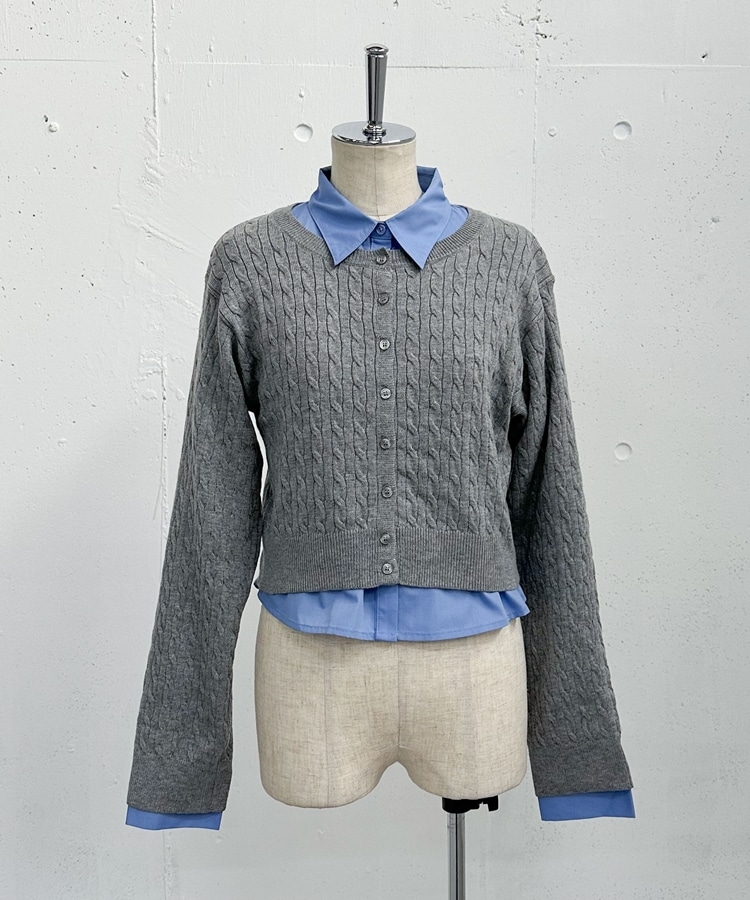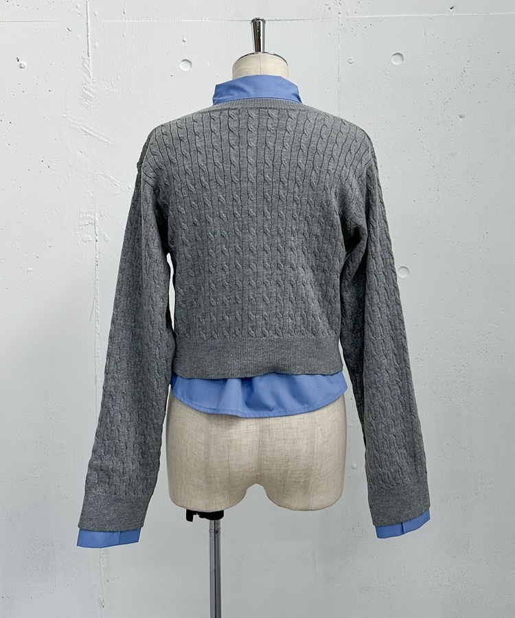 ケーブルニットCD×シャツSET GRAY