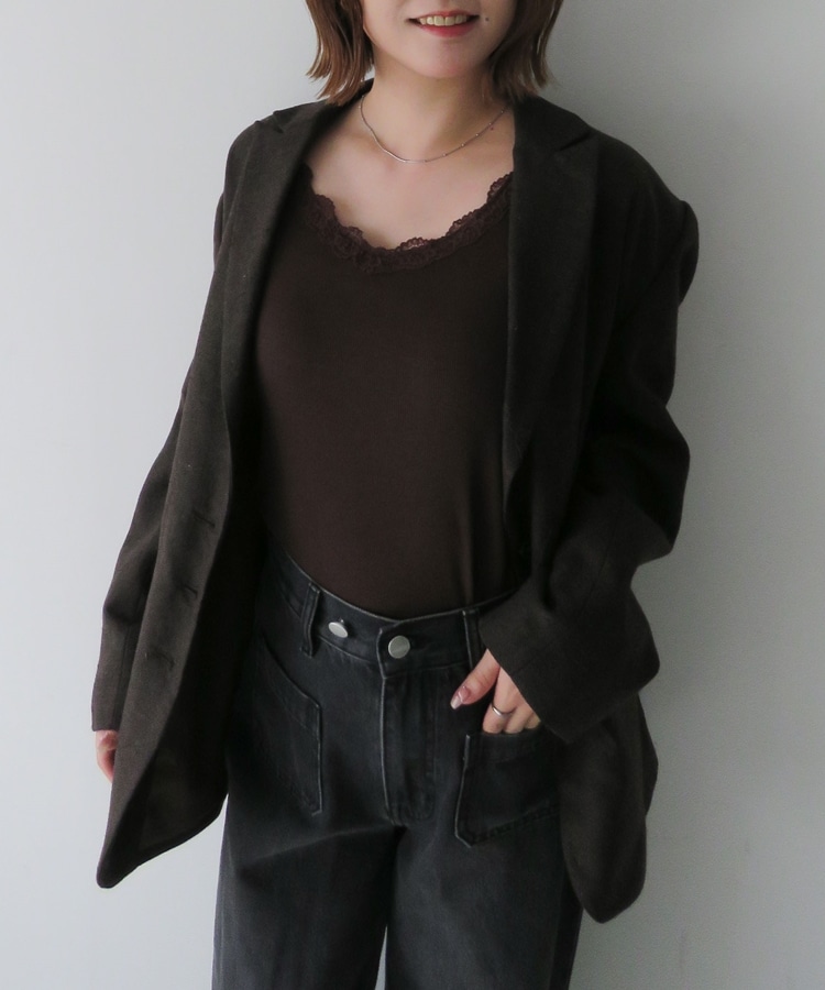■レースがポイント万能タンク■首元と肩のレースがポイントのタンクトップ。すっきりしたリブのサイズ感でどんなトップスの中にも馴染みます。着になるインナーの紐や胸元をカバーしてくれるので、カーデやJKの中にも大活躍◎一枚持っていて間違いなしです。