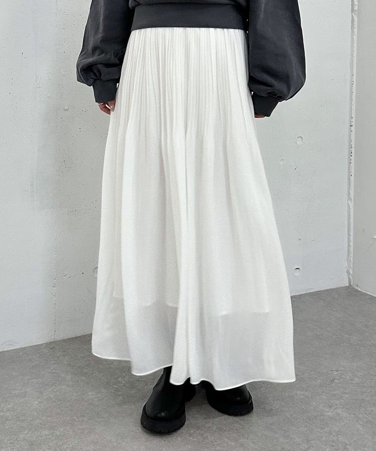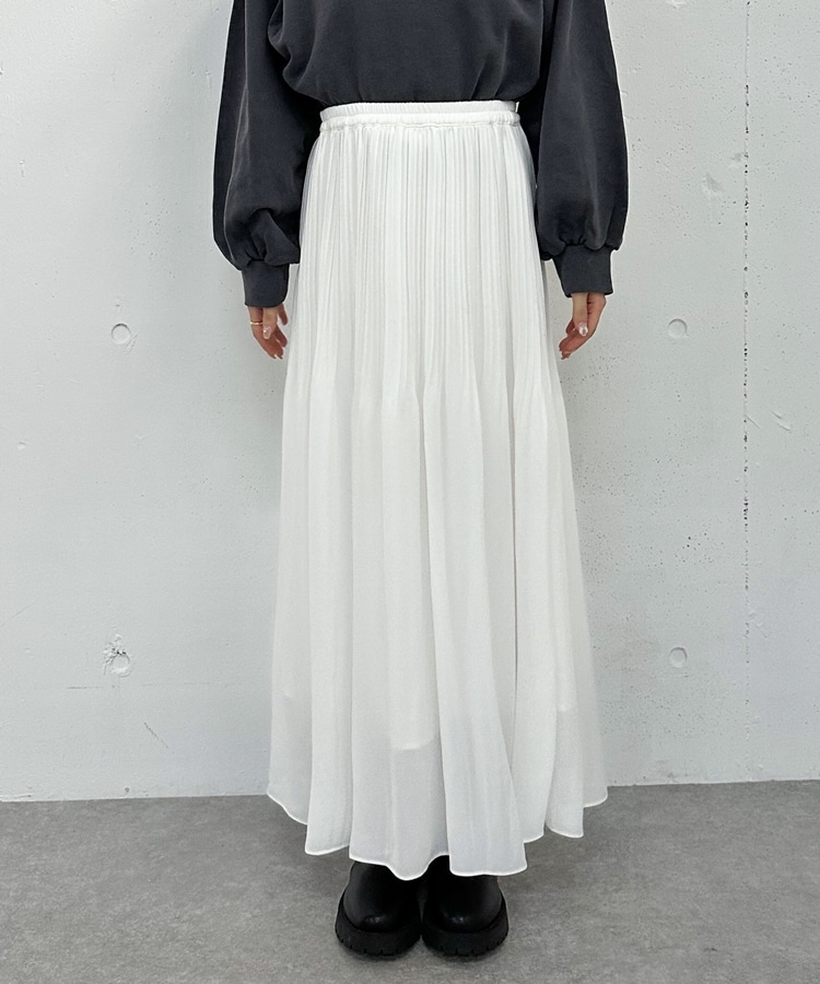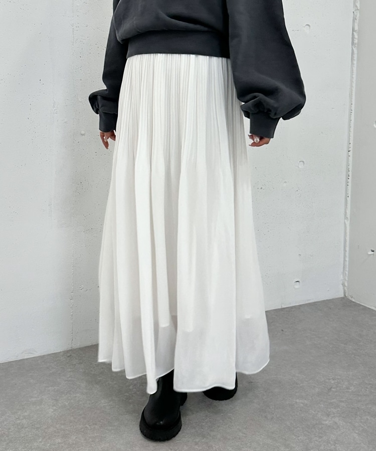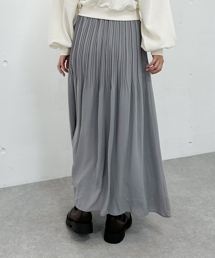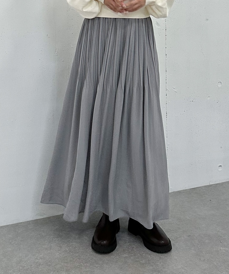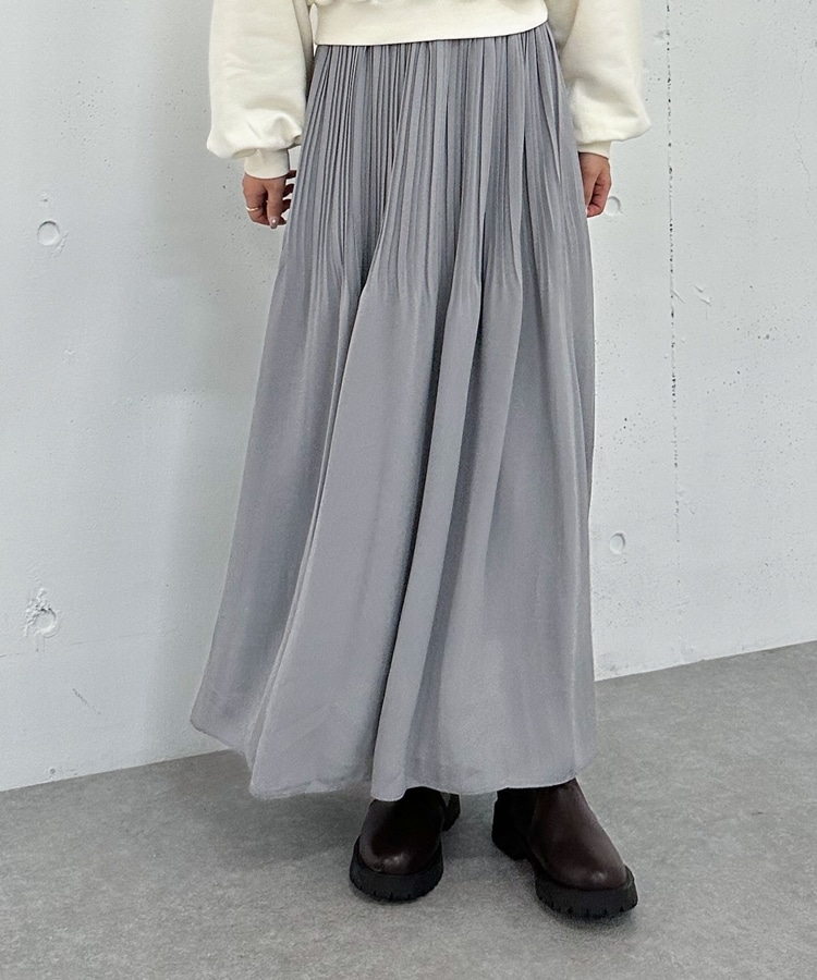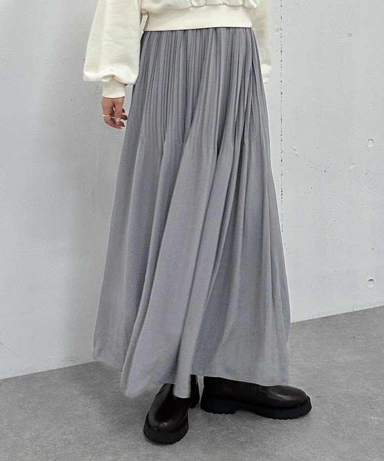 ■ふわっと、すっきりきれい見えスカート■軽い素材感で揺れ感と、ほどよいふわっと感が可愛いスカート。腰回りの細かいプリーツで広がりすぎずにすっきり履けます。秋冬の肉厚な素材感も重たくならずにコーデが決まります♪ウエストはゴム仕様で着心地も抜群。カジュアルにもフェミニンにも使える万能スカート!トレンドのスウェードジャケットとも好相性です◎ーーーーーーーーーーーーーーー透け感:アイボリーややあり裏地:あり伸縮性:ウエストゴム光沢感:なし生地厚さ:普通洗濯方法:洗濯可能※詳しいお手入れ方法は商品についているタグをご覧くださいーーーーーーーーーーーーーーー※ご利用のモニター環境により、実際の色味と多少異なる場合がございます。