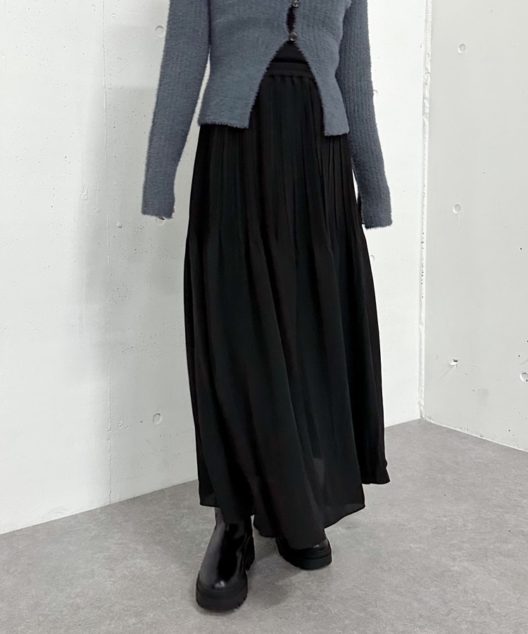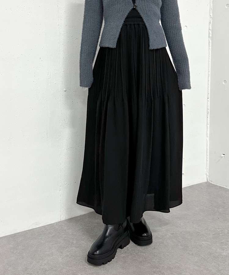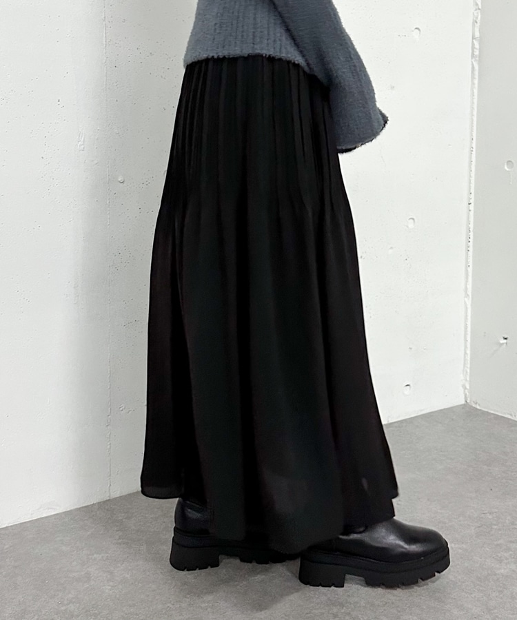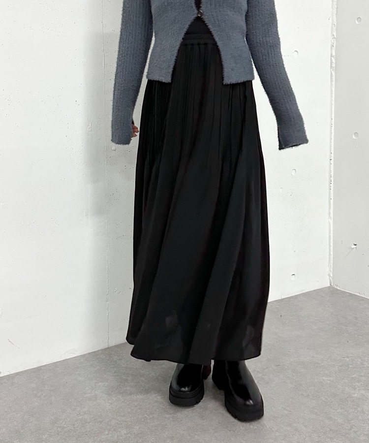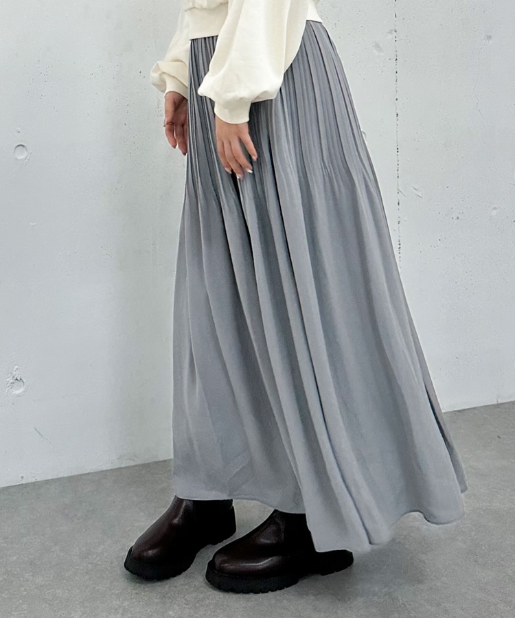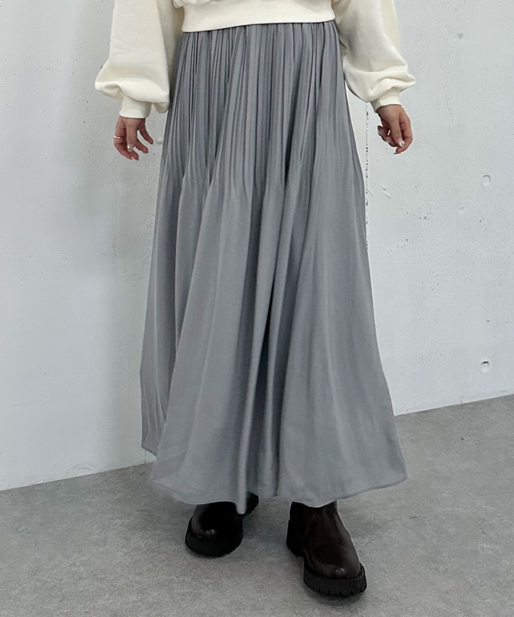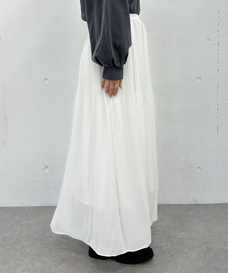 ■ふわっと、すっきりきれい見えスカート■軽い素材感で揺れ感と、ほどよいふわっと感が可愛いスカート。腰回りの細かいプリーツで広がりすぎずにすっきり履けます。秋冬の肉厚な素材感も重たくならずにコーデが決まります♪ウエストはゴム仕様で着心地も抜群。カジュアルにもフェミニンにも使える万能スカート!トレンドのスウェードジャケットとも好相性です◎ーーーーーーーーーーーーーーー透け感:アイボリーややあり裏地:あり伸縮性:ウエストゴム光沢感:なし生地厚さ:普通洗濯方法:洗濯可能※詳しいお手入れ方法は商品についているタグをご覧くださいーーーーーーーーーーーーーーー※ご利用のモニター環境により、実際の色味と多少異なる場合がございます。