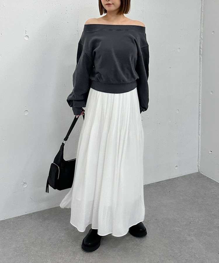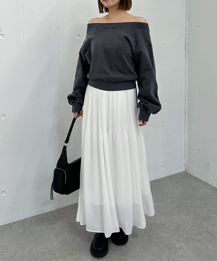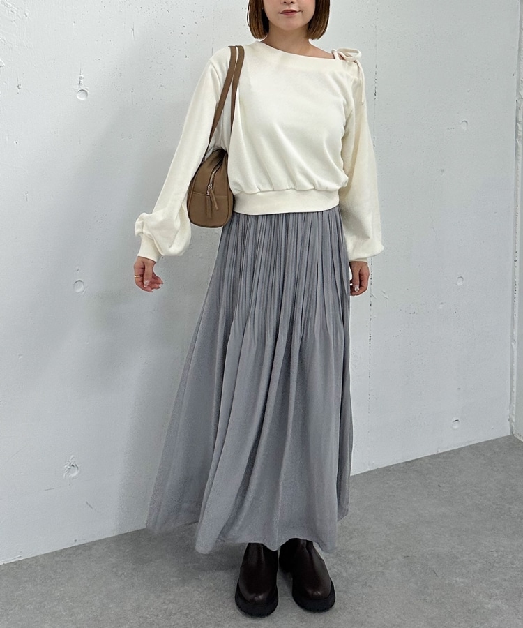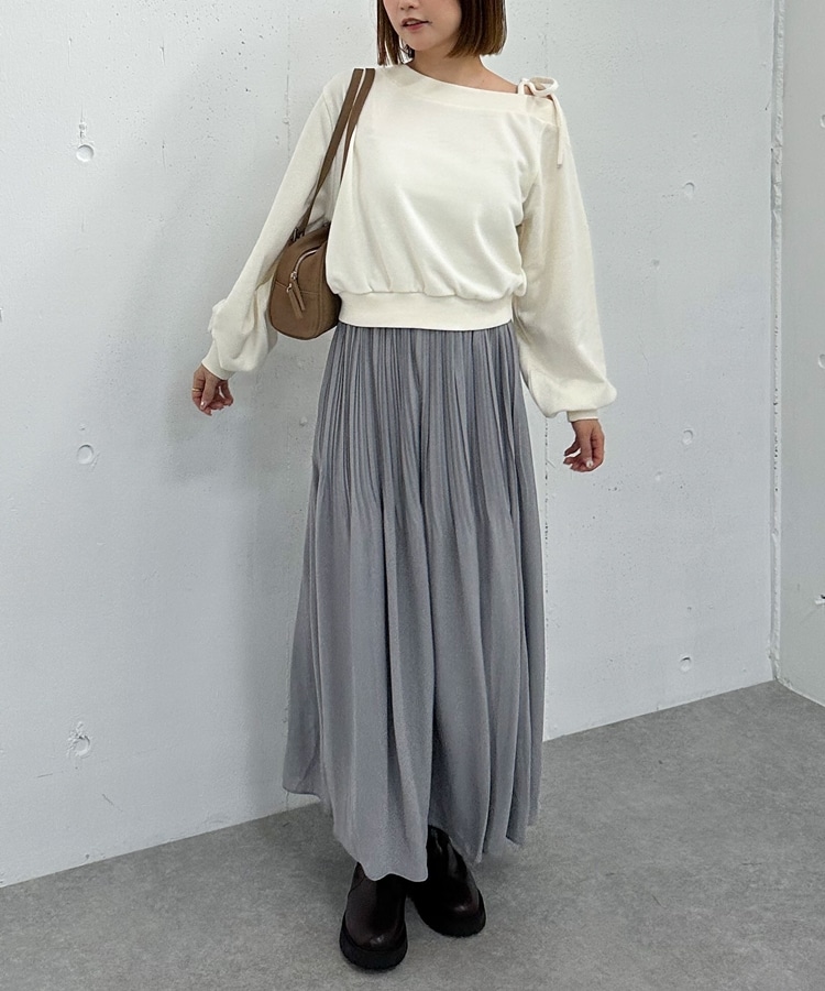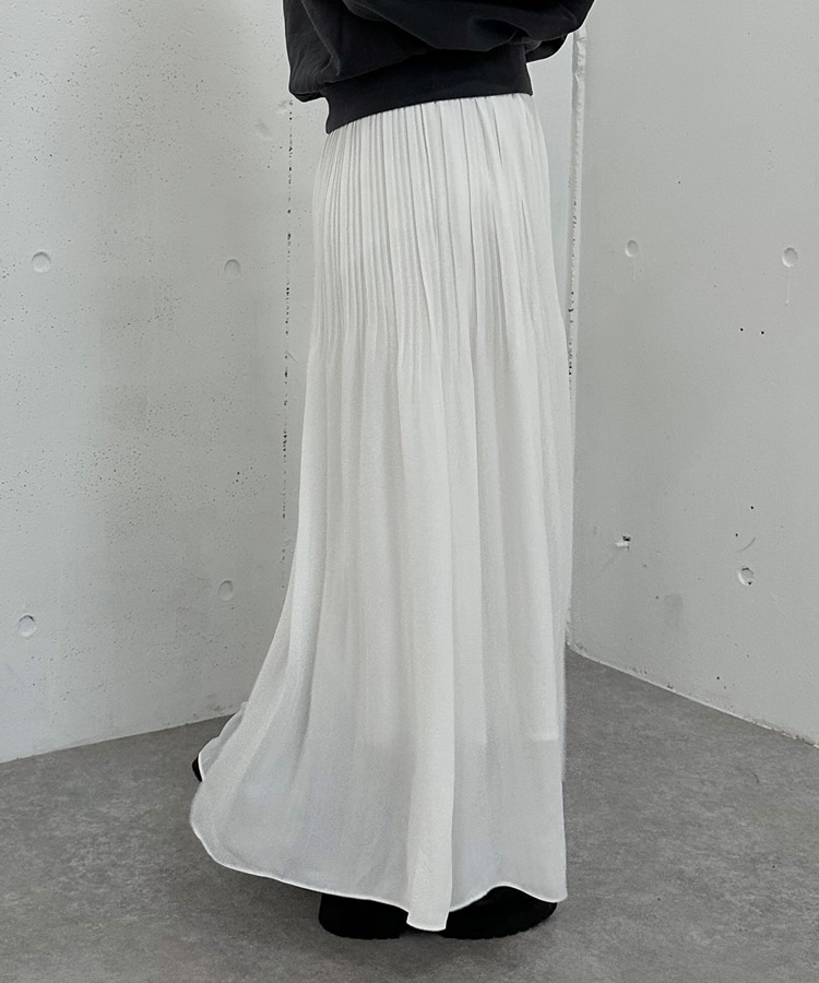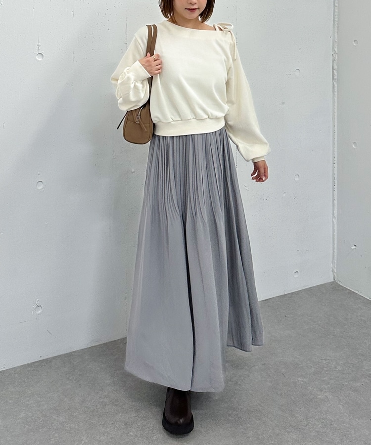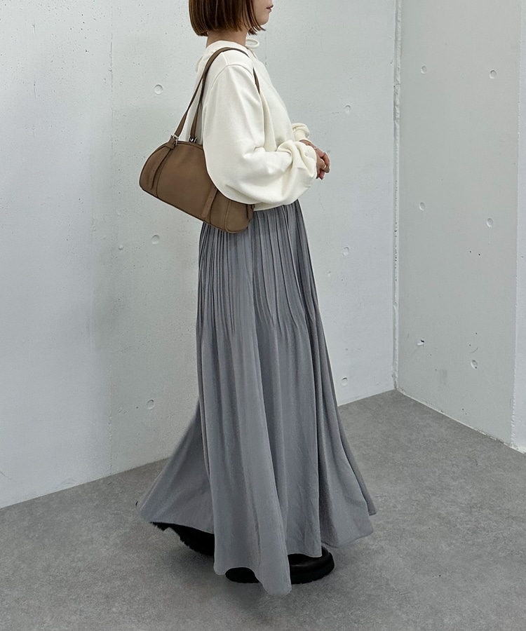■ふわっと、すっきりきれい見えスカート■軽い素材感で揺れ感と、ほどよいふわっと感が可愛いスカート。腰回りの細かいプリーツで広がりすぎずにすっきり履けます。秋冬の肉厚な素材感も重たくならずにコーデが決まります♪ウエストはゴム仕様で着心地も抜群。カジュアルにもフェミニンにも使える万能スカート!トレンドのスウェードジャケットとも好相性です◎ーーーーーーーーーーーーーーー透け感:アイボリーややあり裏地:あり伸縮性:ウエストゴム光沢感:なし生地厚さ:普通洗濯方法:洗濯可能※詳しいお手入れ方法は商品についているタグをご覧くださいーーーーーーーーーーーーーーー※ご利用のモニター環境により、実際の色味と多少異なる場合がございます。