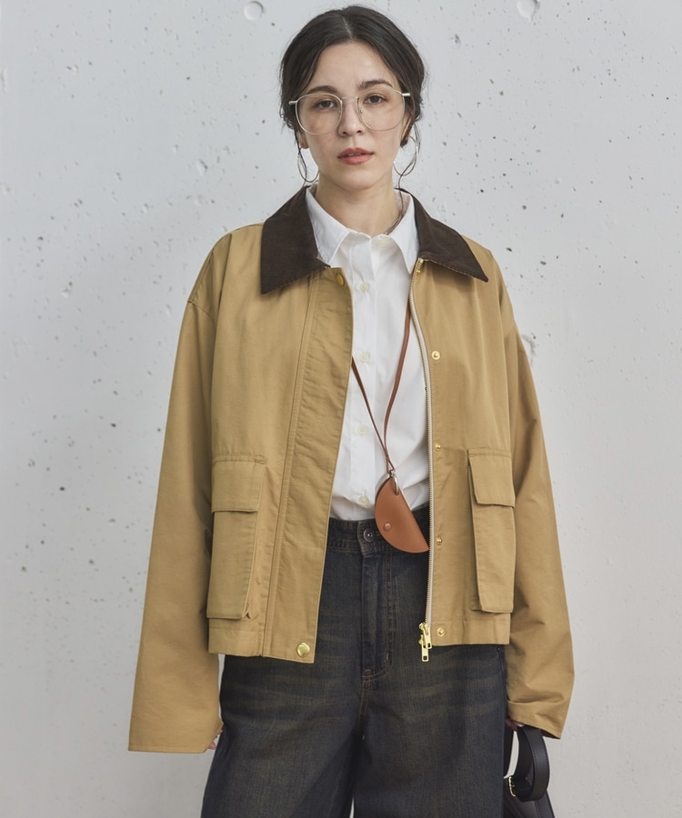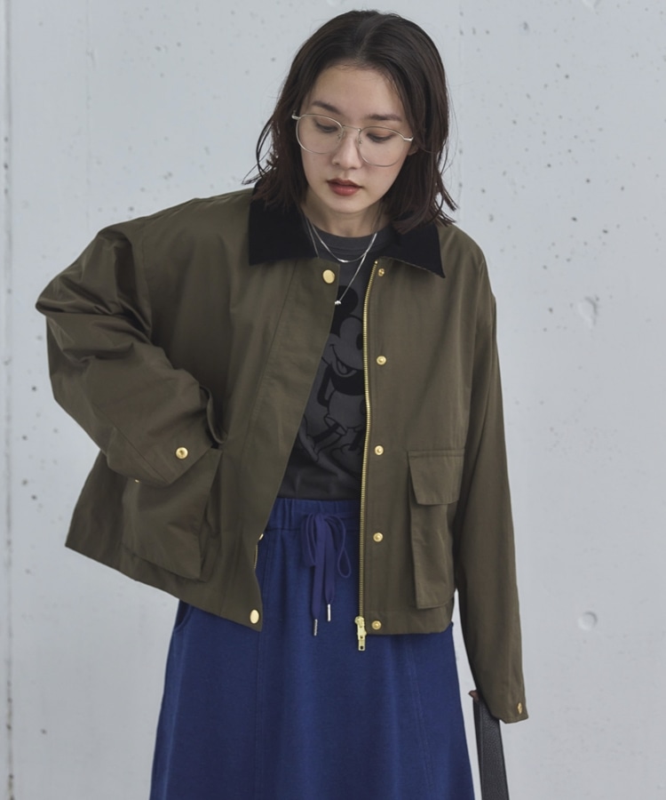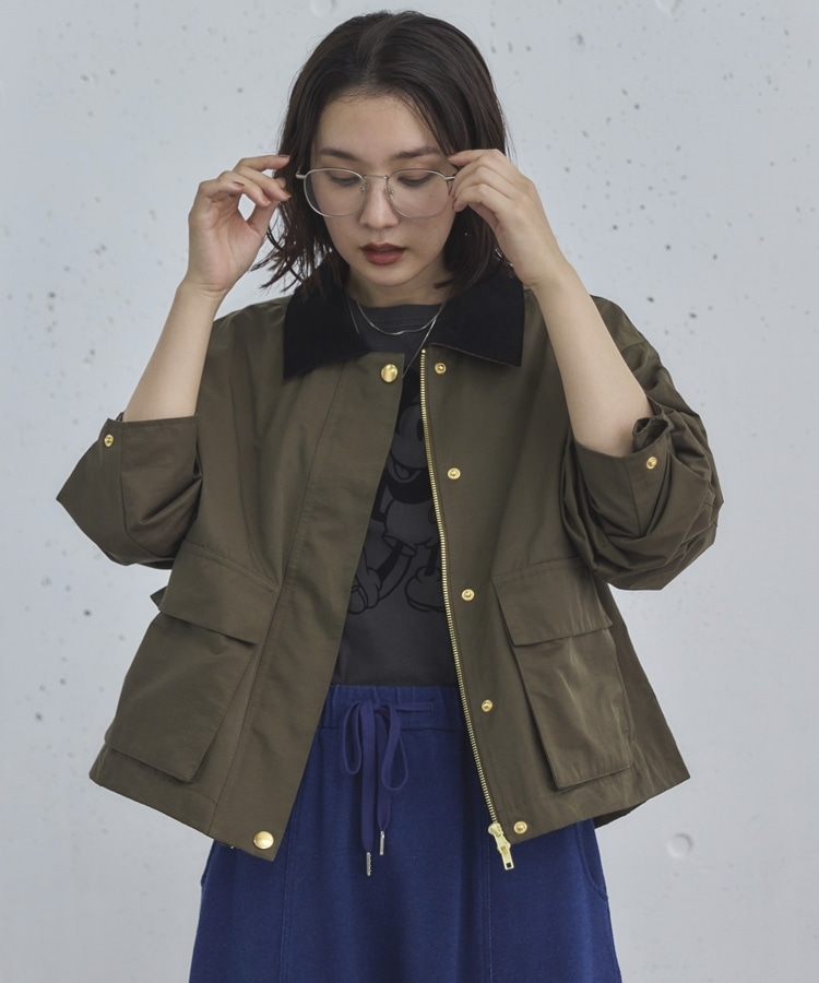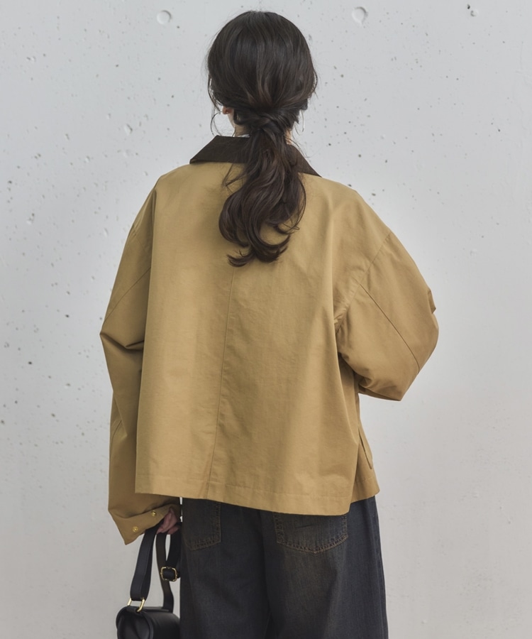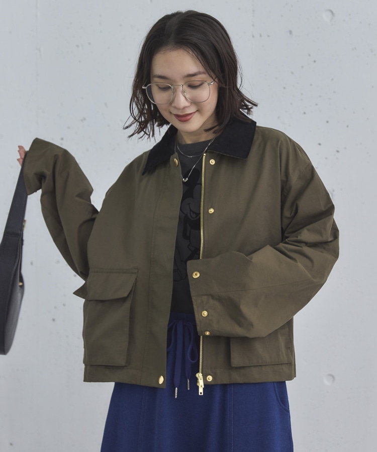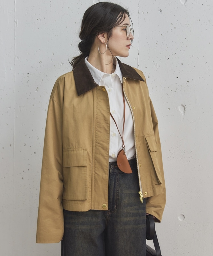 ・コーデュロイ素材の襟とアウトポケットのデザインがカジュアルな雰囲気に