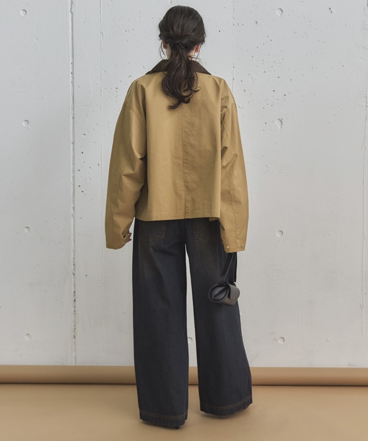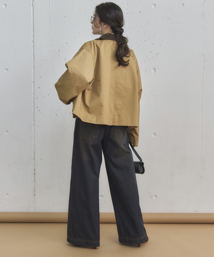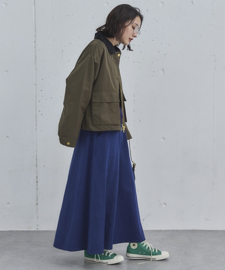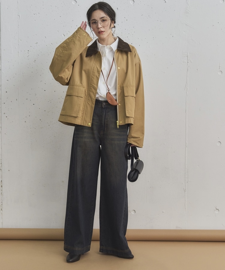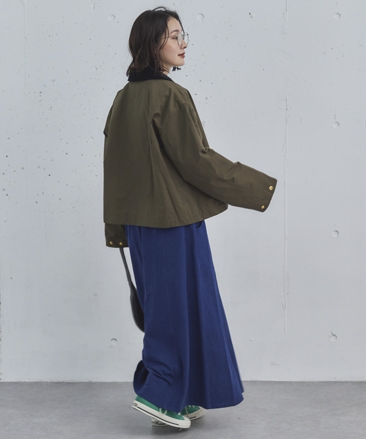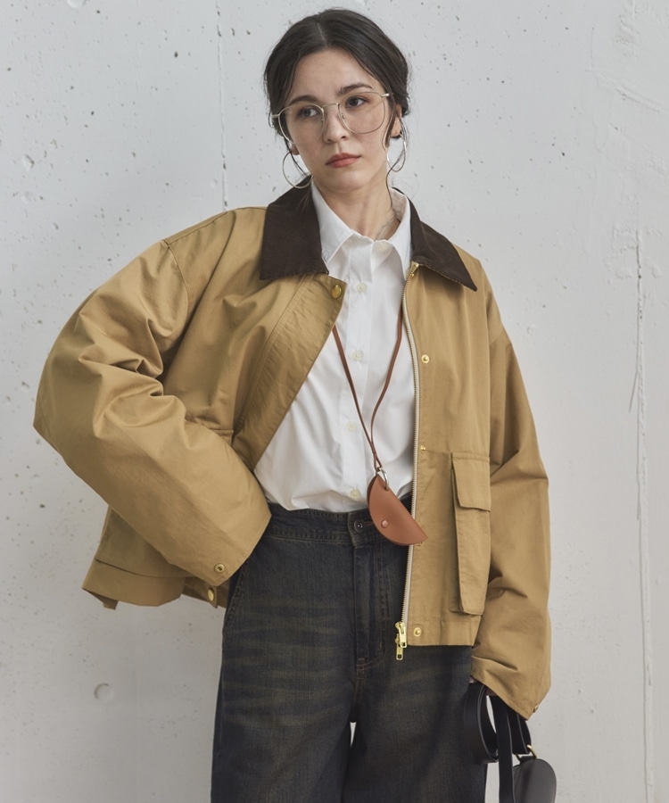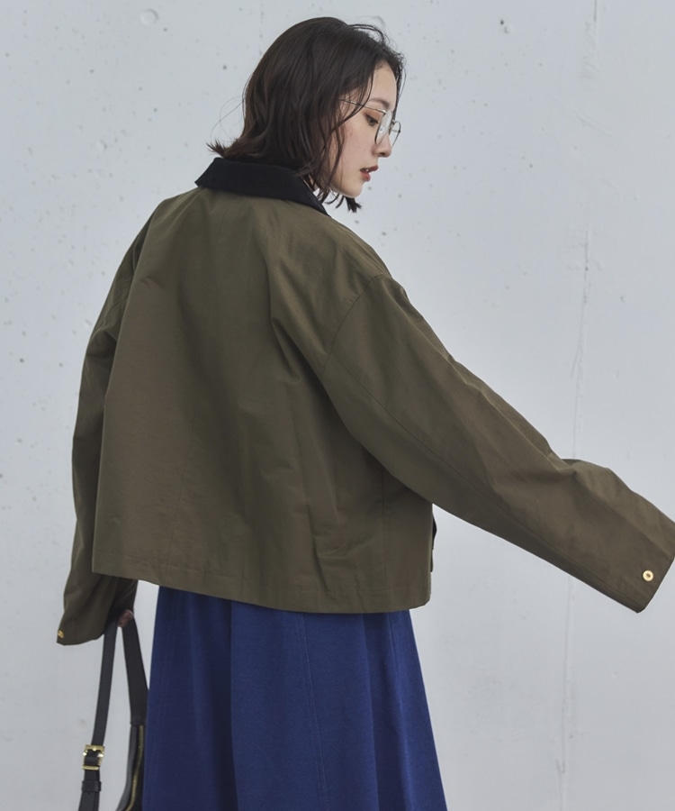 ・コーデュロイ素材の襟とアウトポケットのデザインがカジュアルな雰囲気に