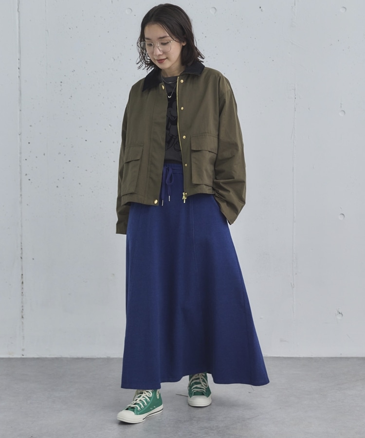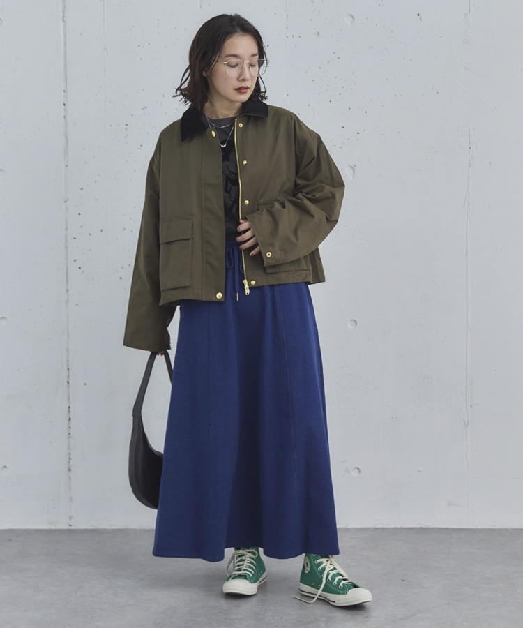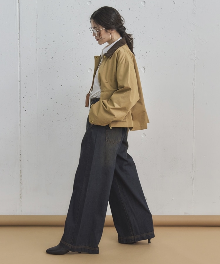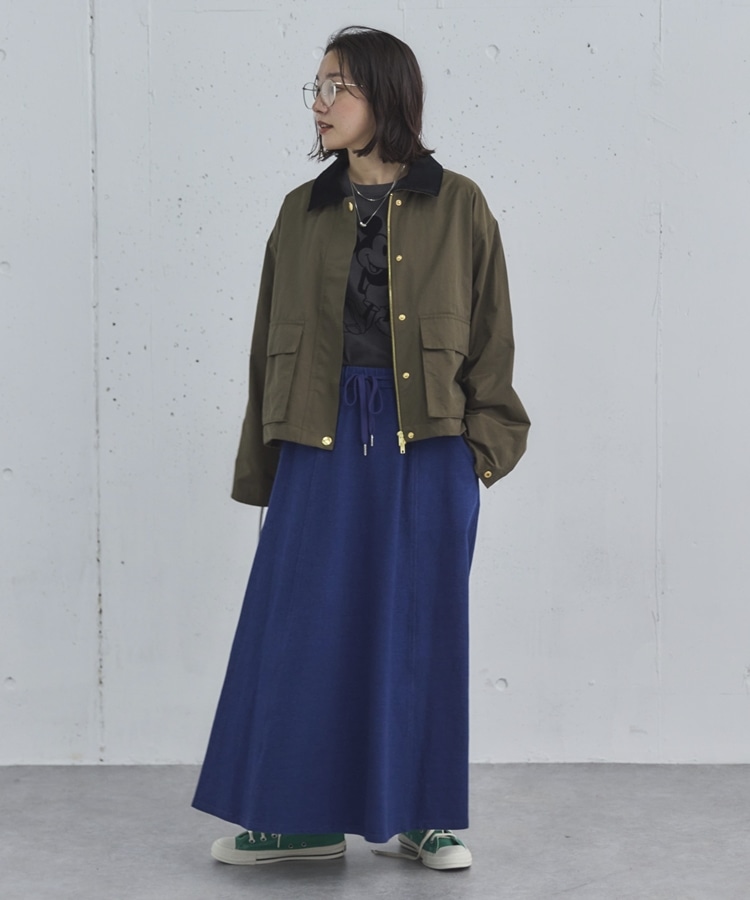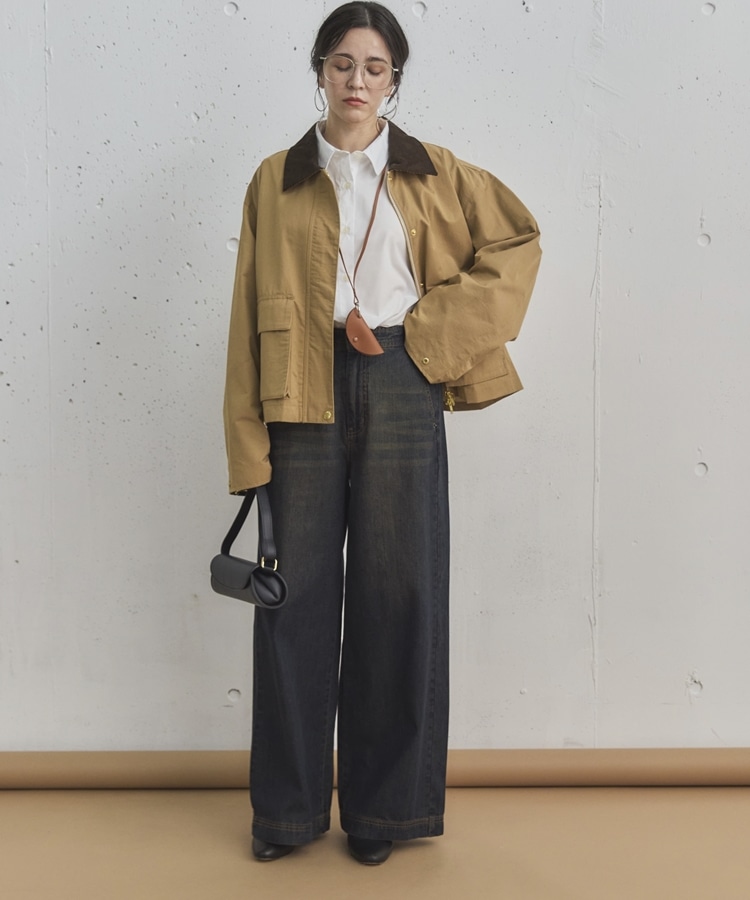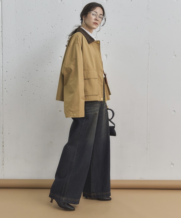 ・コーデュロイ素材の襟とアウトポケットのデザインがカジュアルな雰囲気に