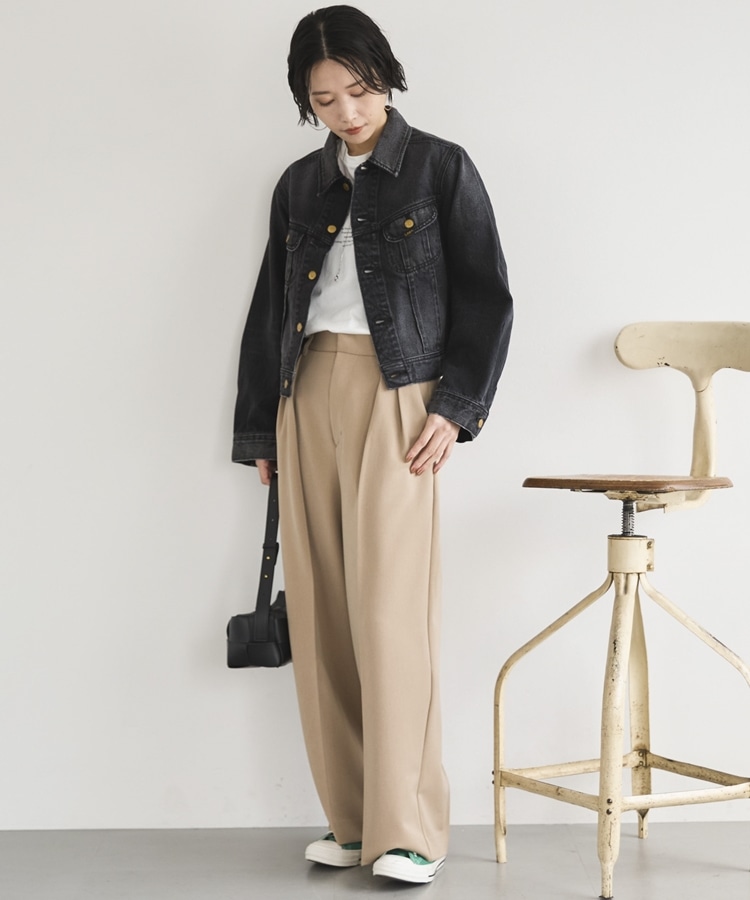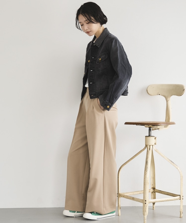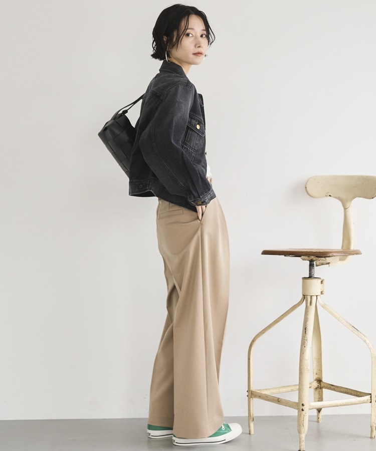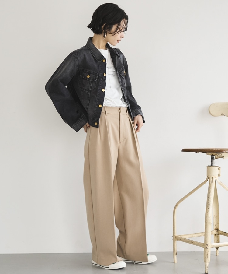 オンオフ兼用で様々な着こなしが楽しめるワイドパンツ