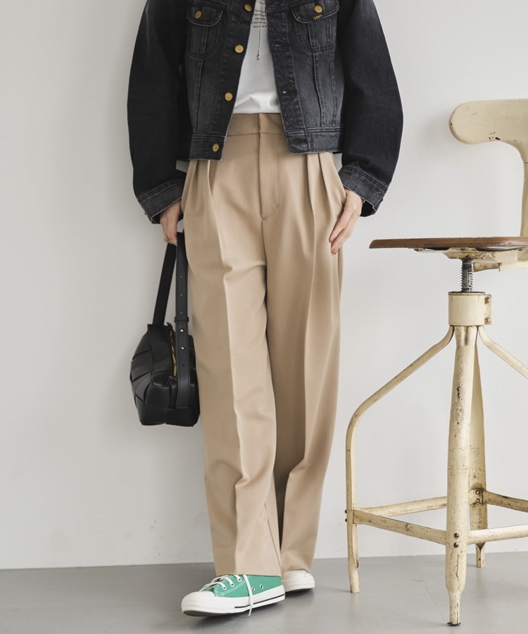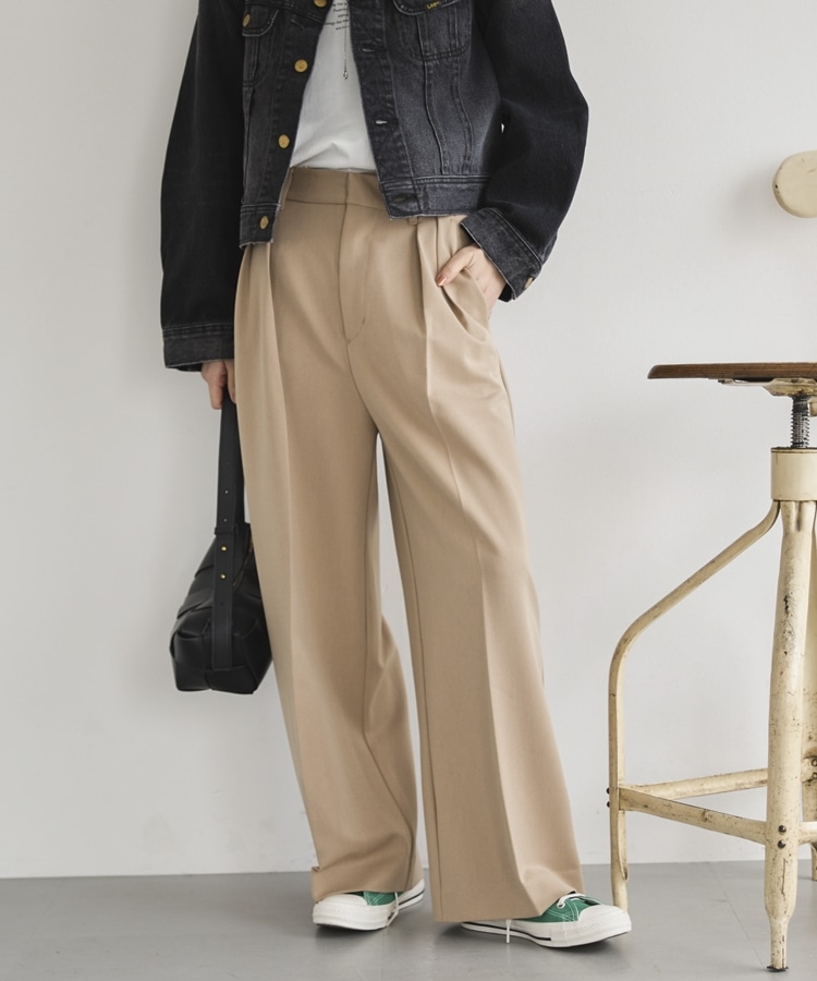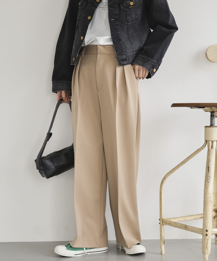 2タックワイドパンツ BEIGE