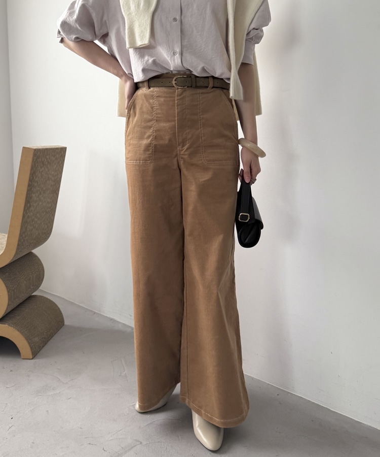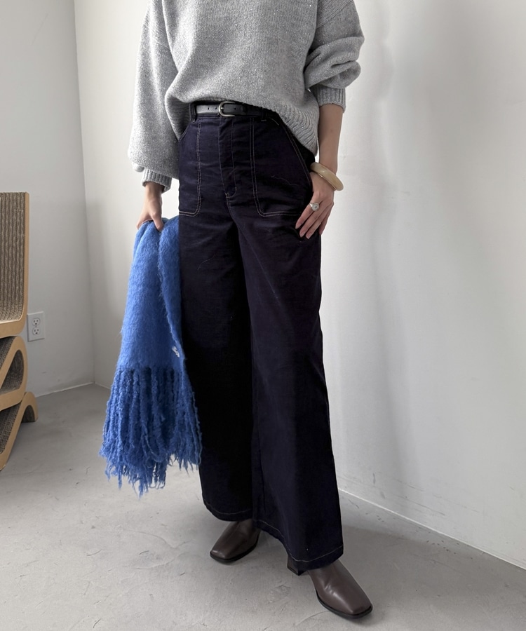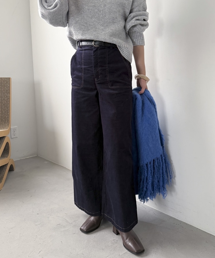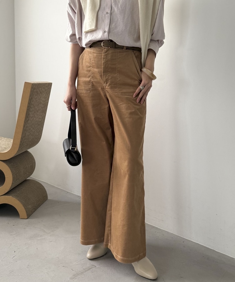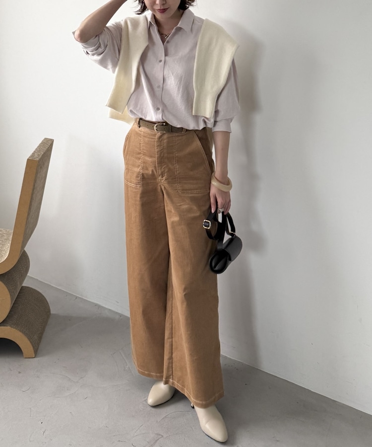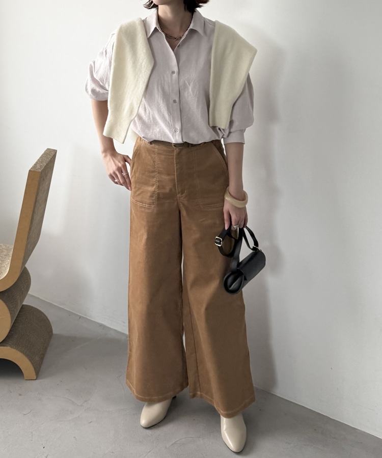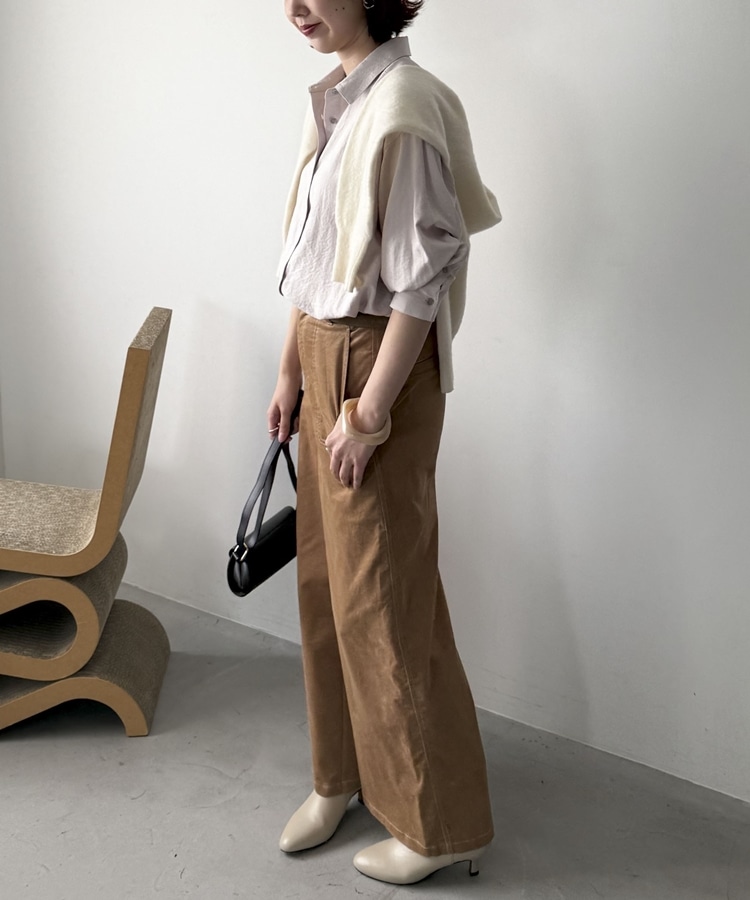 ・カジュアルなデニムベイカーデザインを別珍素材で仕上げ柔らかい秋冬らしい雰囲気に