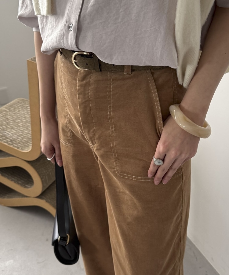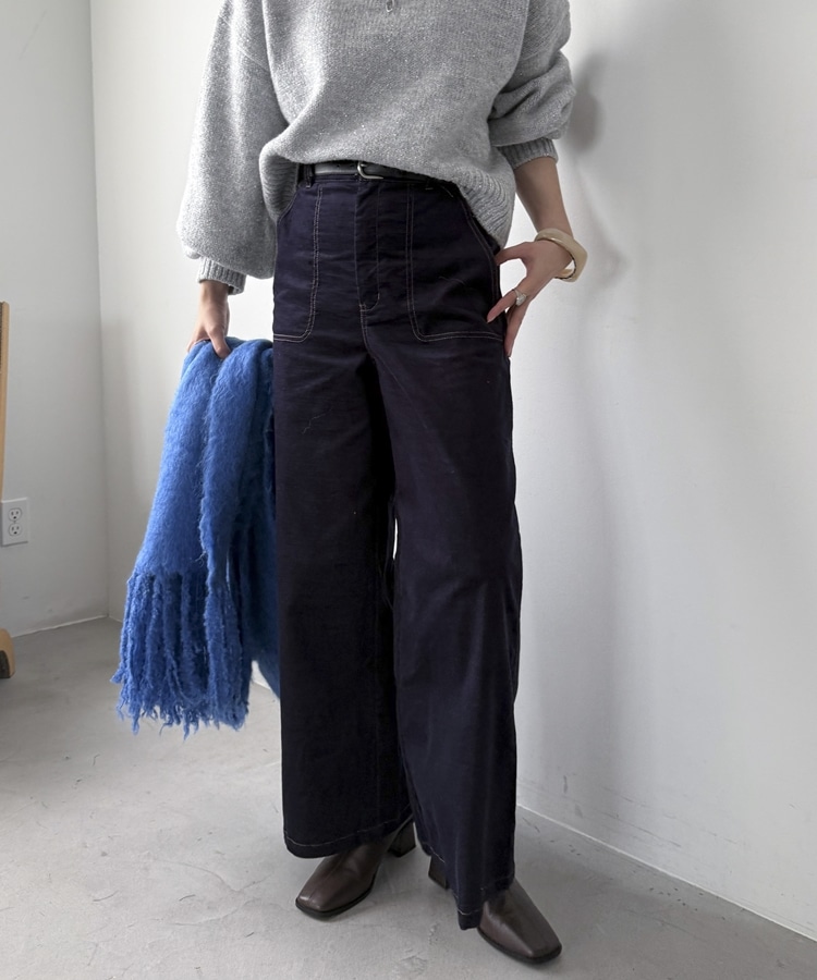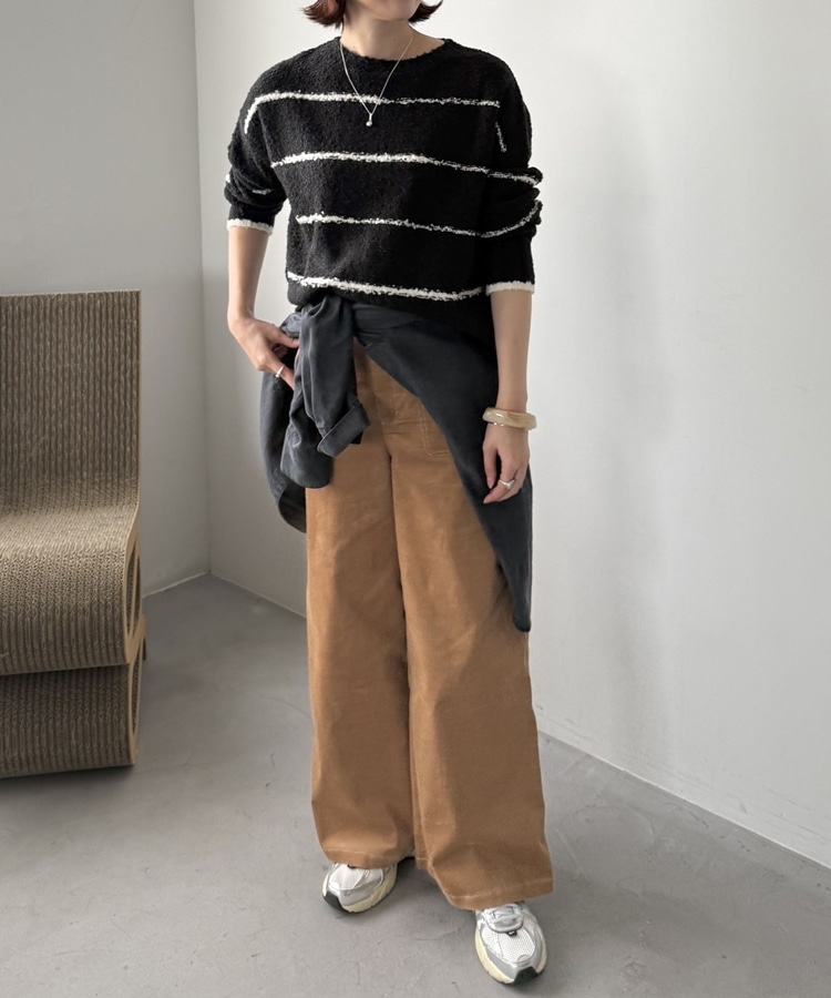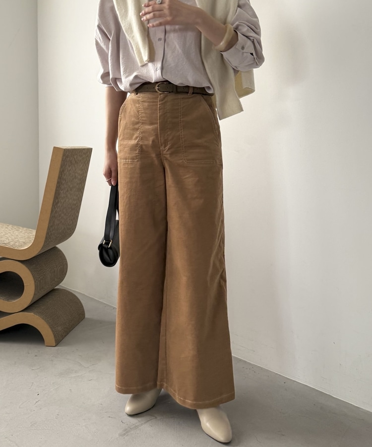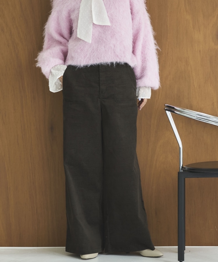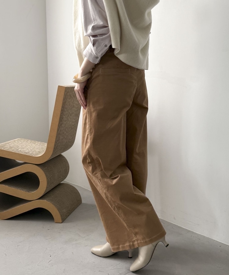 ・カジュアルなデニムベイカーデザインを別珍素材で仕上げ柔らかい秋冬らしい雰囲気に
