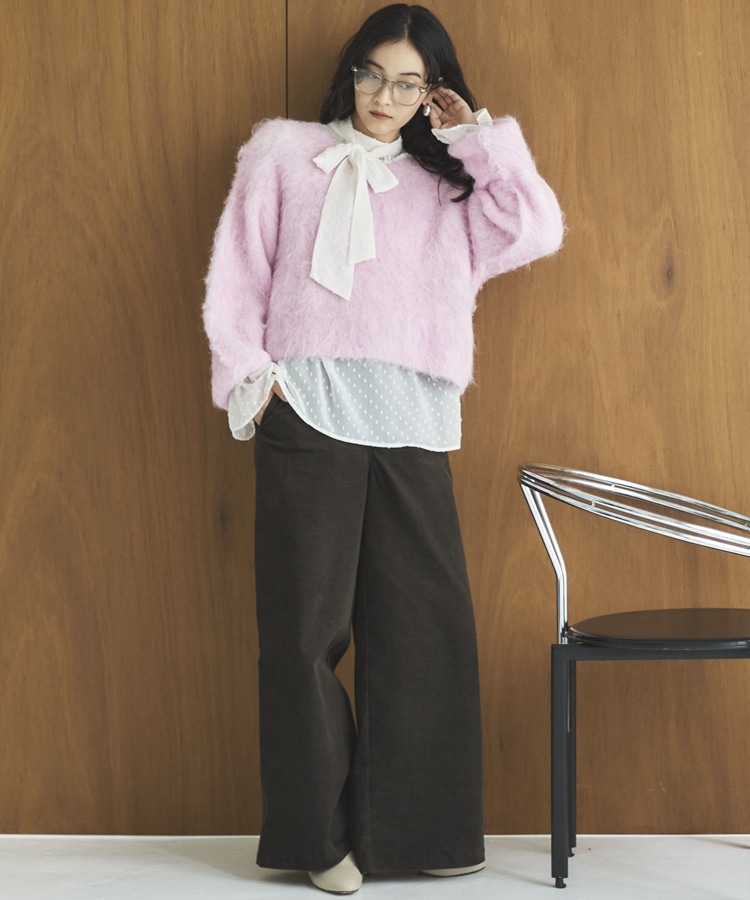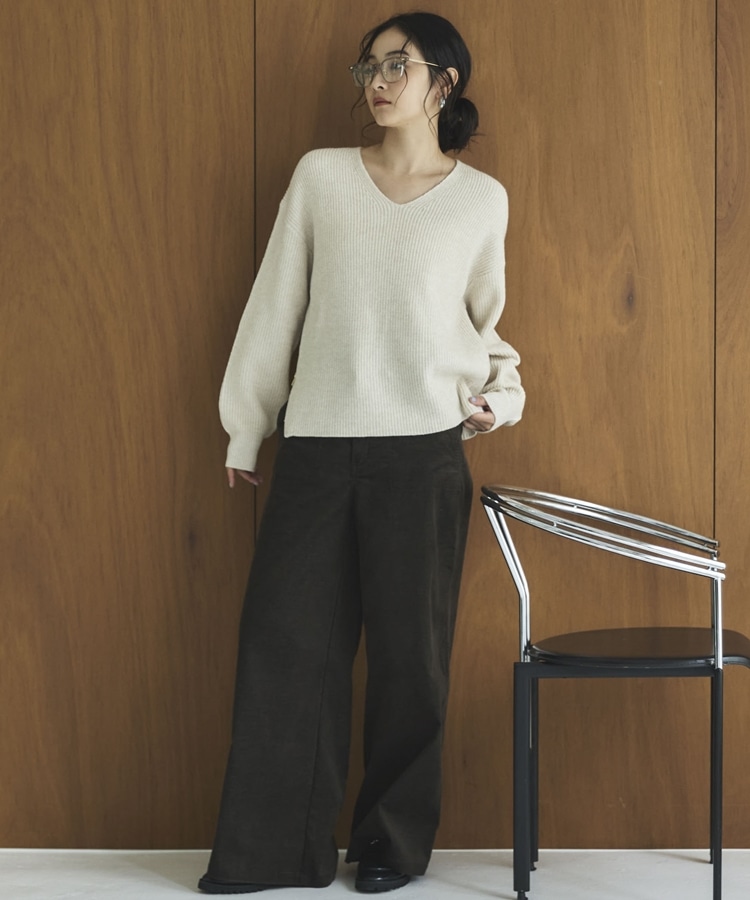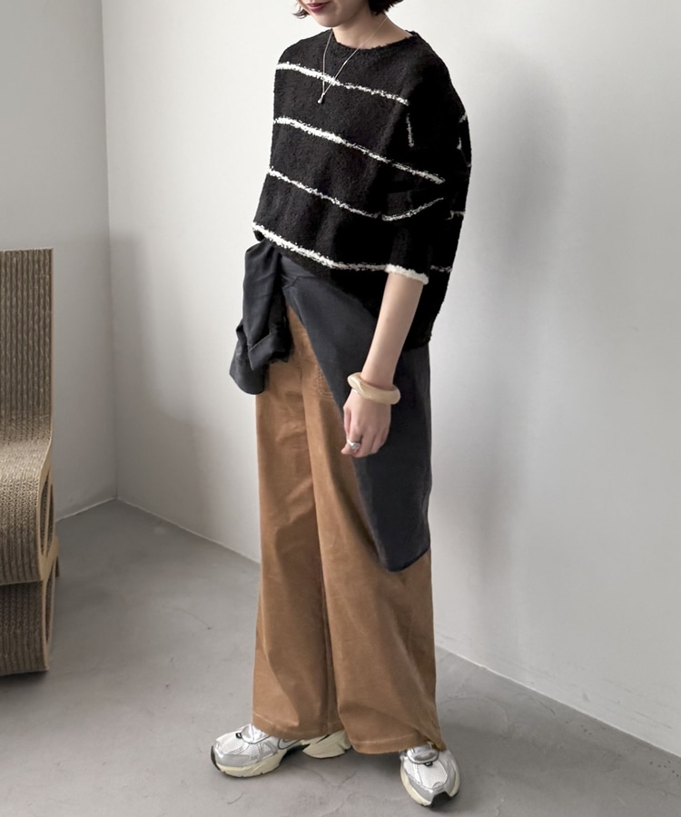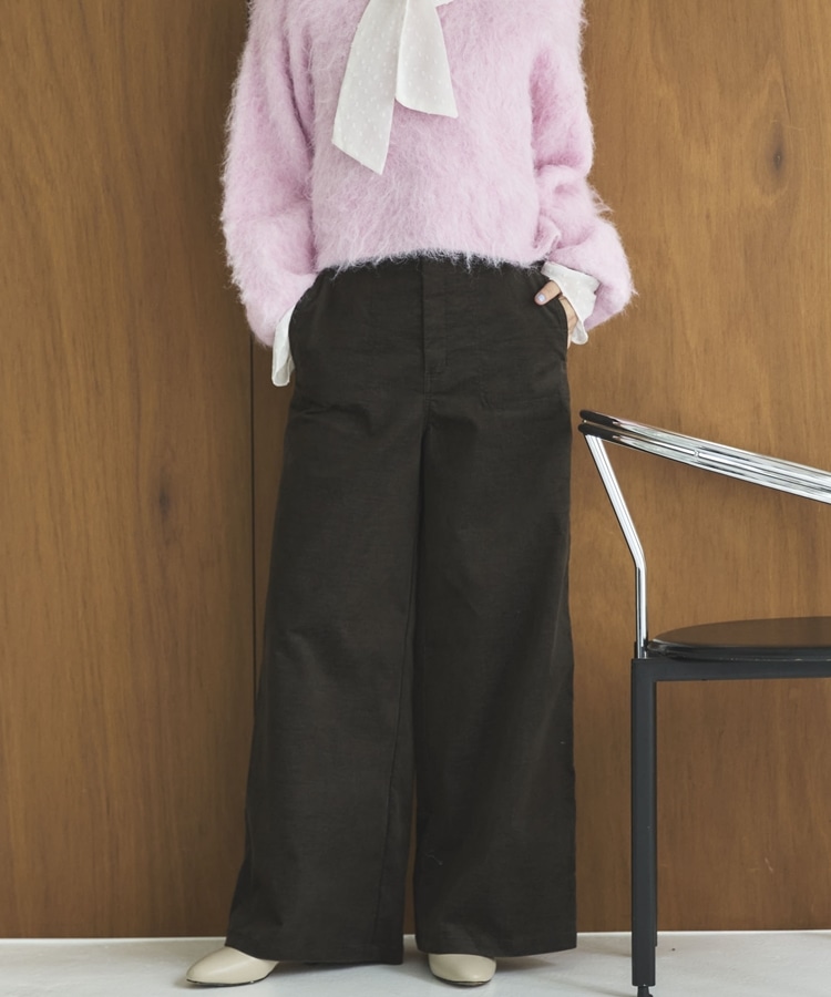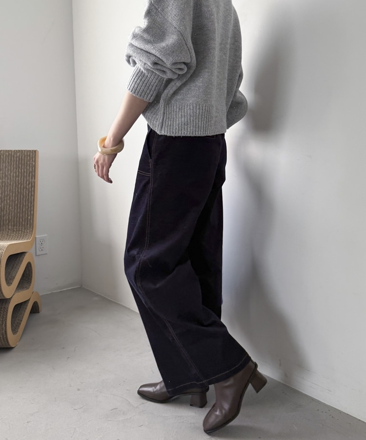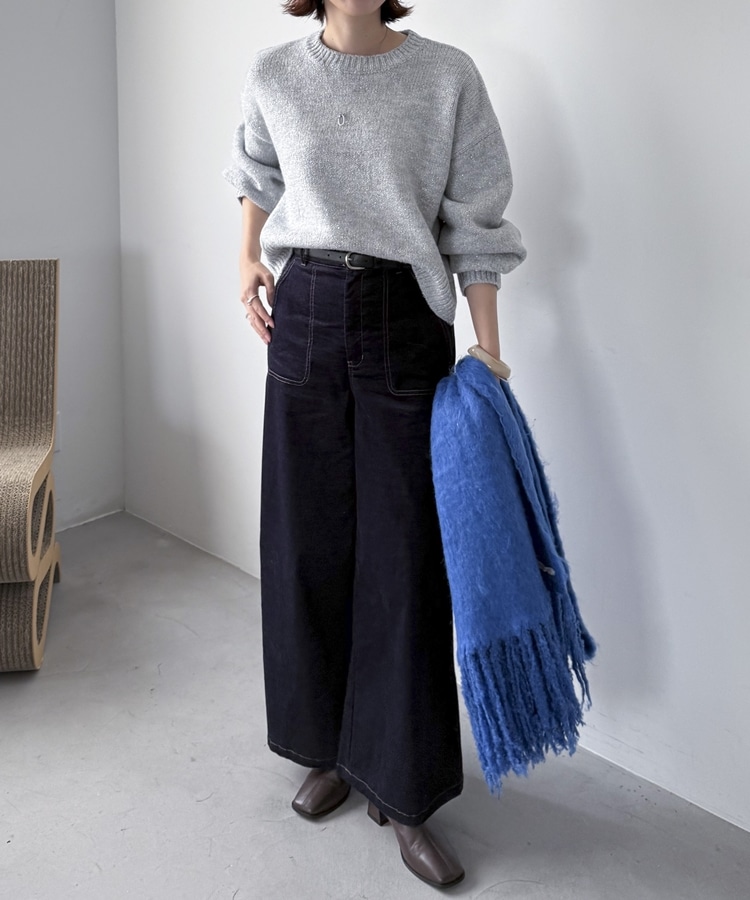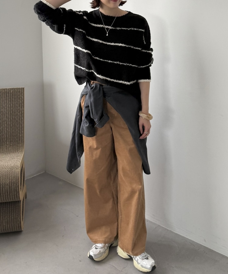 ・カジュアルなデニムベイカーデザインを別珍素材で仕上げ柔らかい秋冬らしい雰囲気に