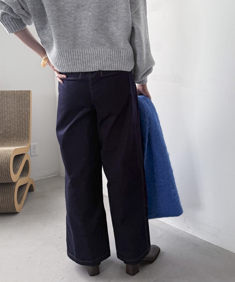 別珍素材のカジュアルすぎないデニムベイカーパンツ
