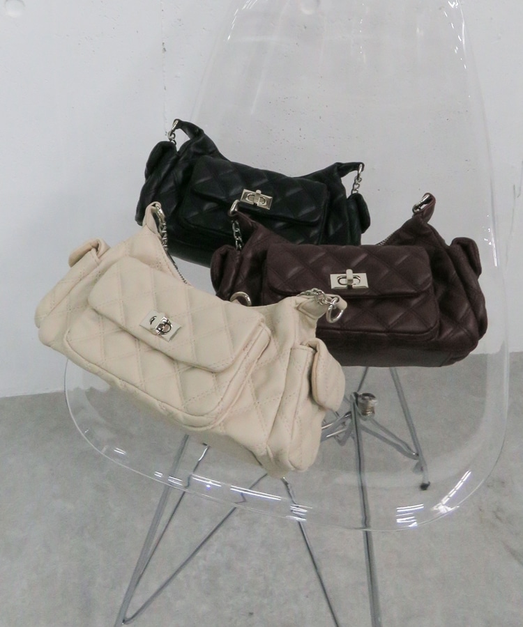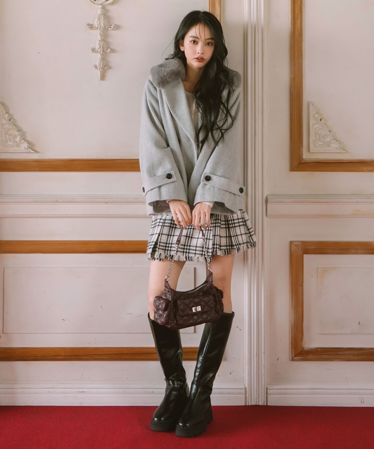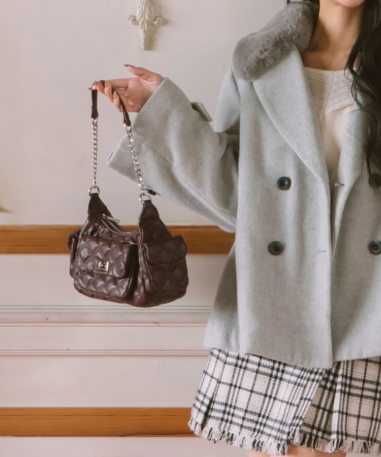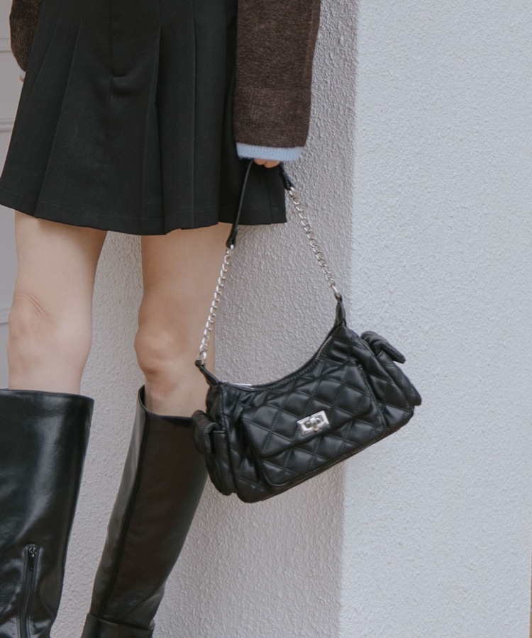 大人っぽいキルティングバッグはクリスマスのお出かけにもぴったり。