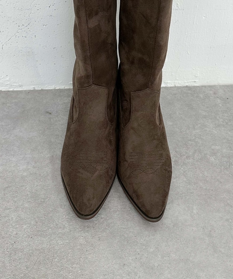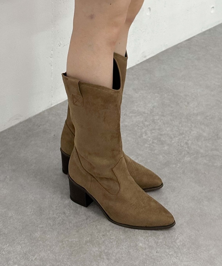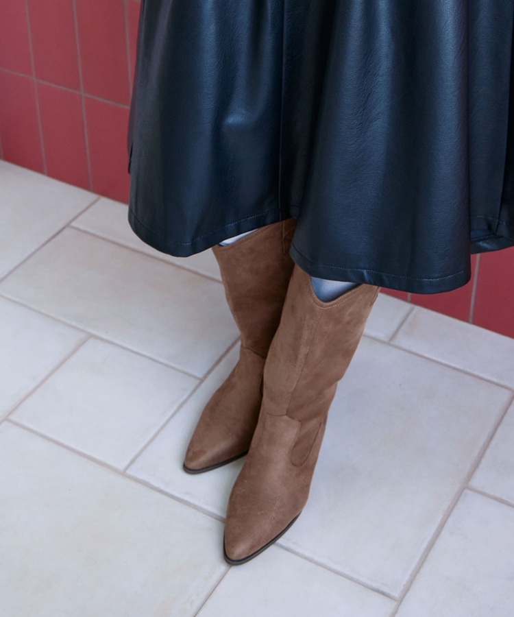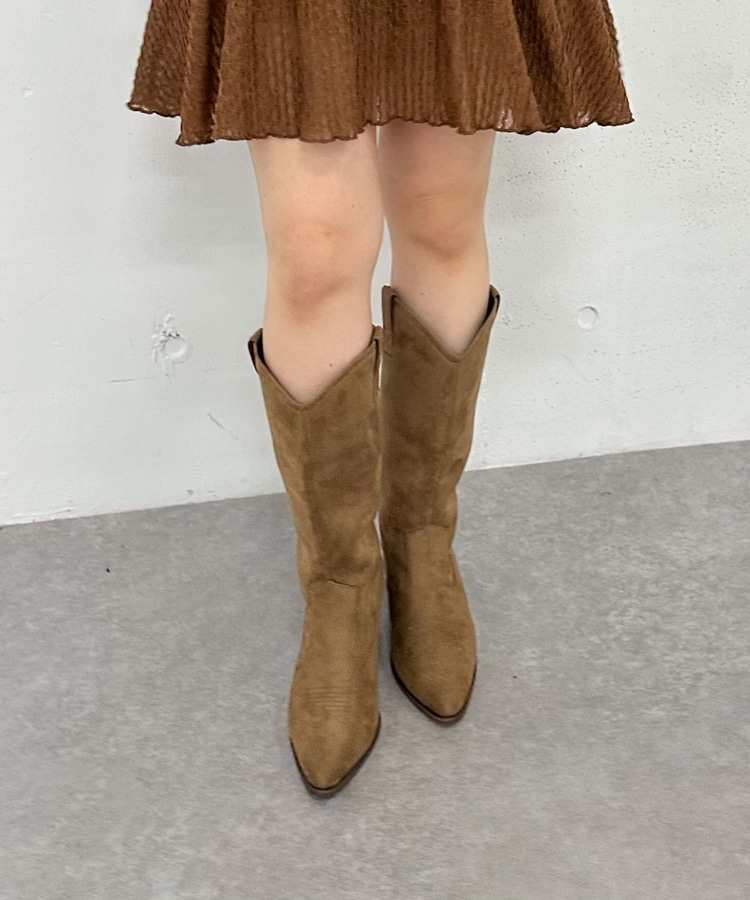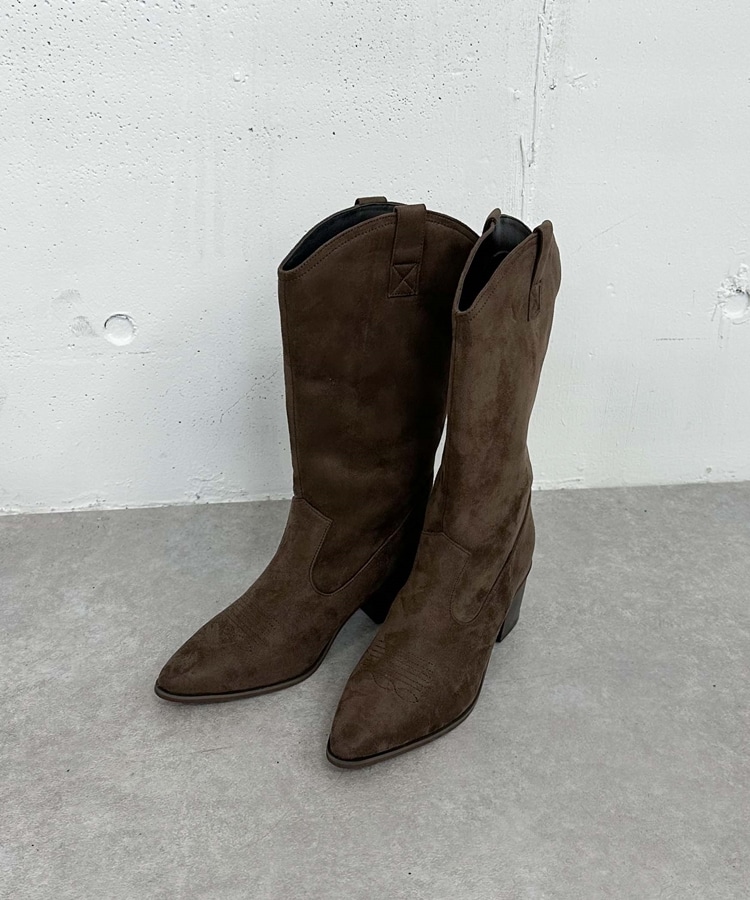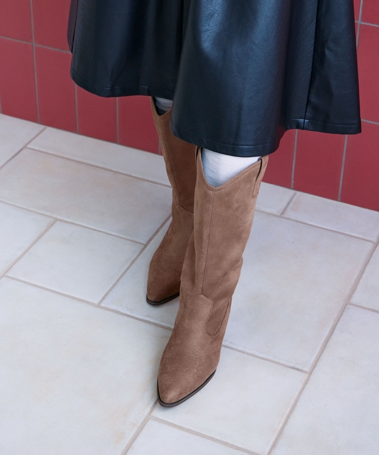 ■トレンドスタイルが好きならコレ■今年トレンドのウエスタンブーツ。一点投入するだけで今年らしくスタイリング出来ます。秋らしいスウェード素材。ウエスタンブーツで特徴的な刺繍もワンポイント。足首部分の切り替えがスタイルアップに。ミドル丈なのでソックスをのぞかせたりとアレンジして履くのがおススメです!ーーーーーーーーーーーーーーー【size】・Msize...23~23.5cm・Lsize...24~24.5cmーーーーーーーーーーーーーーー※ご利用のモニター環境により、実際の色味と多少異なる場合がございます。